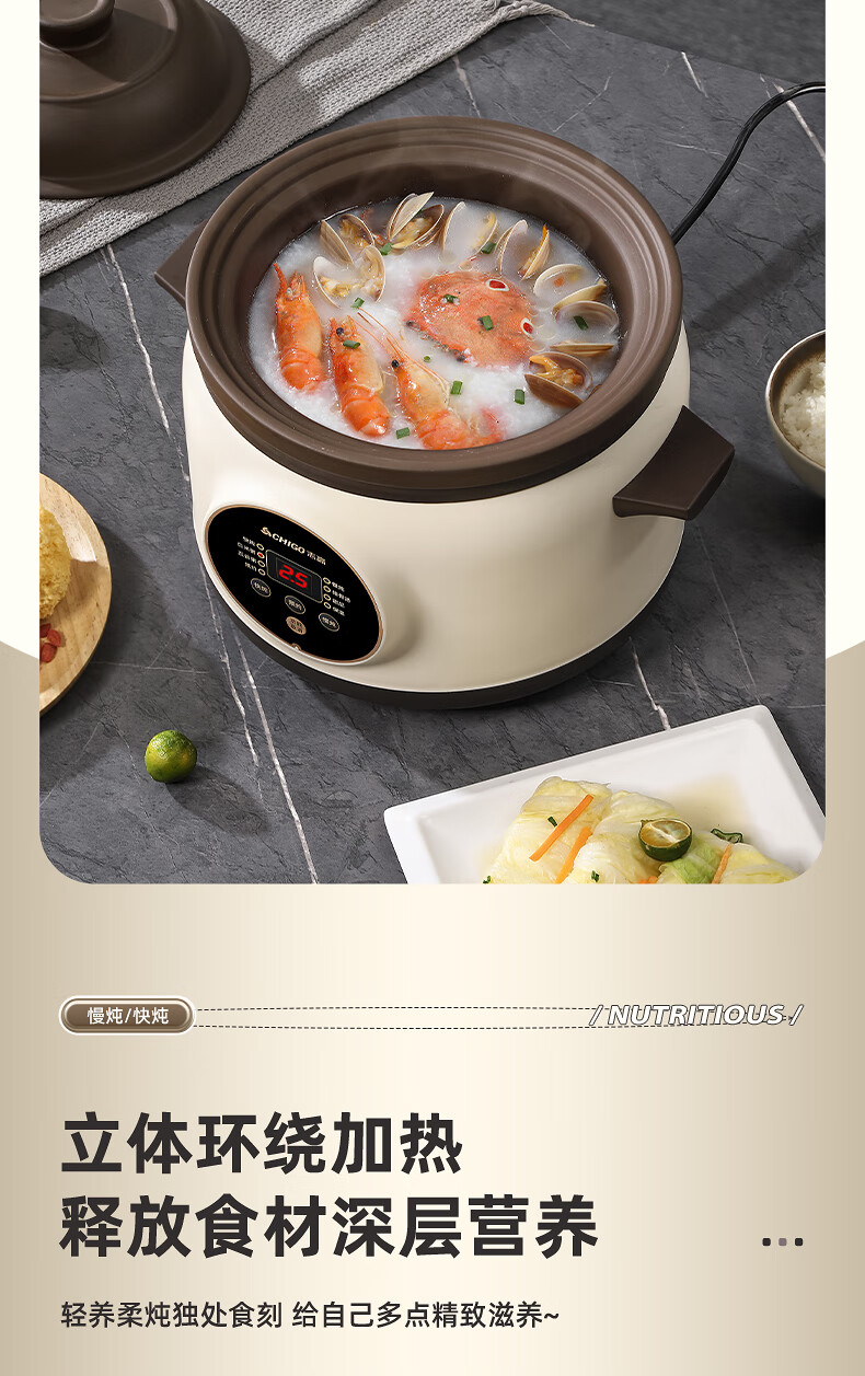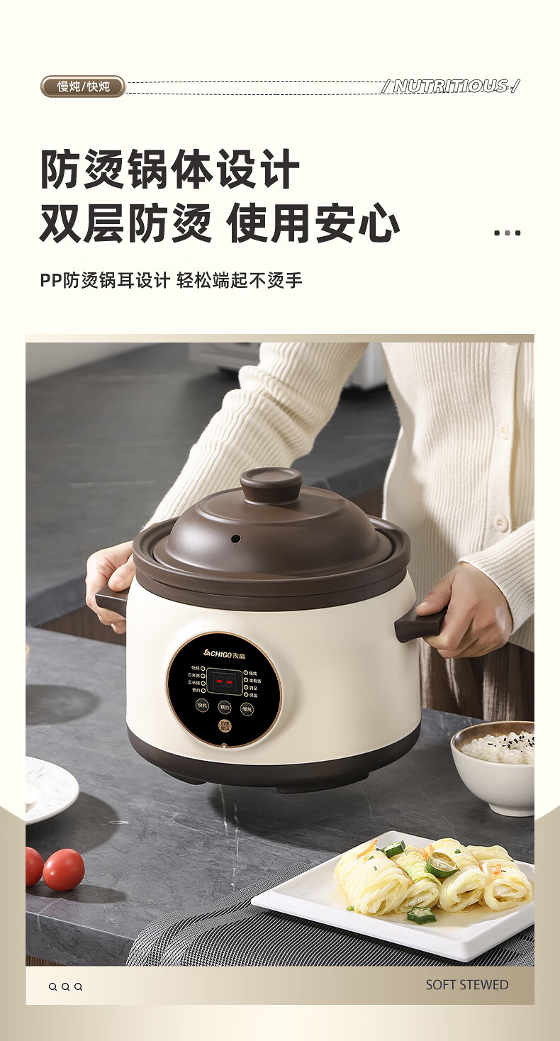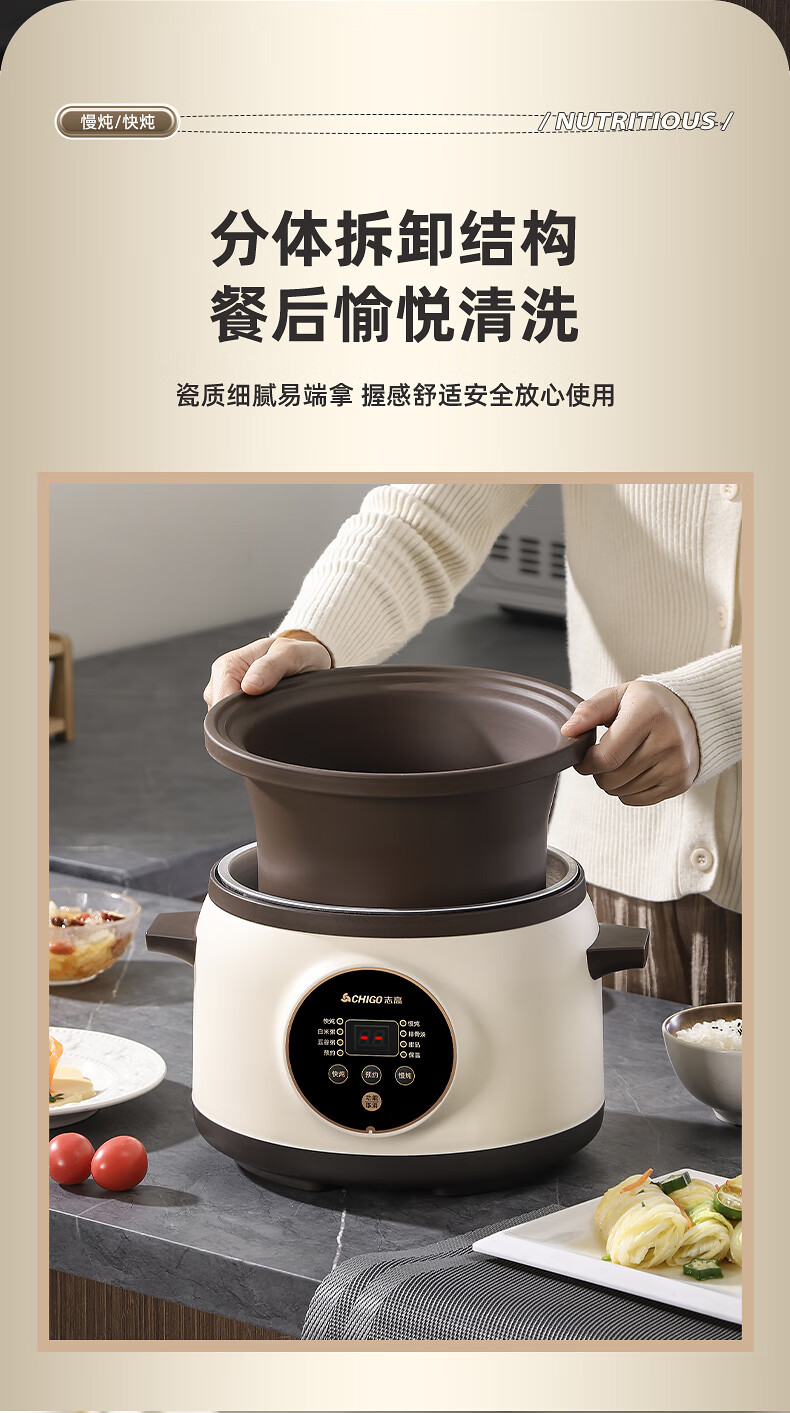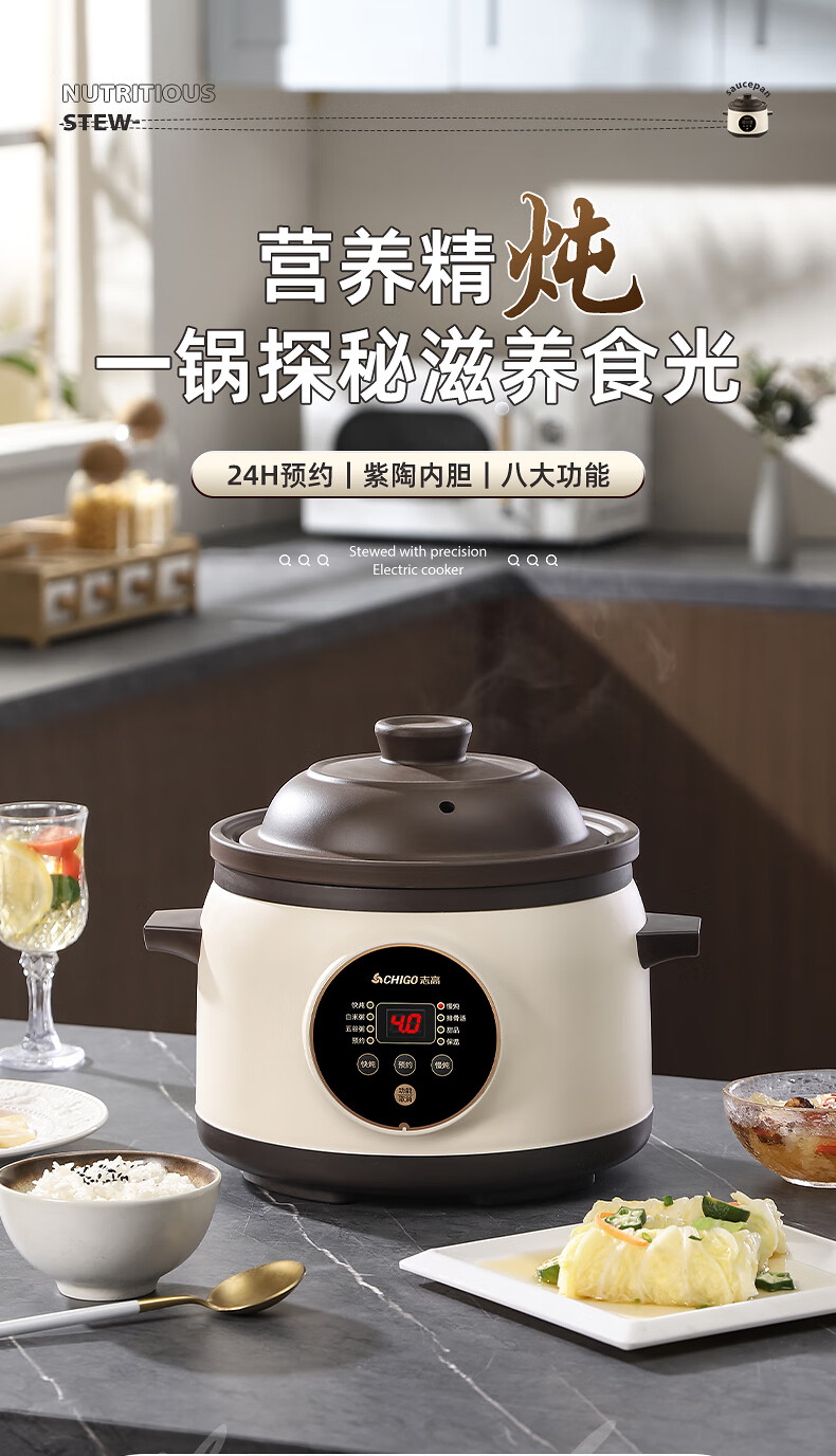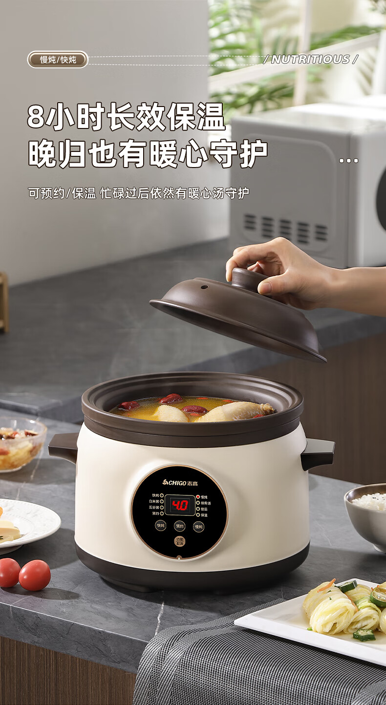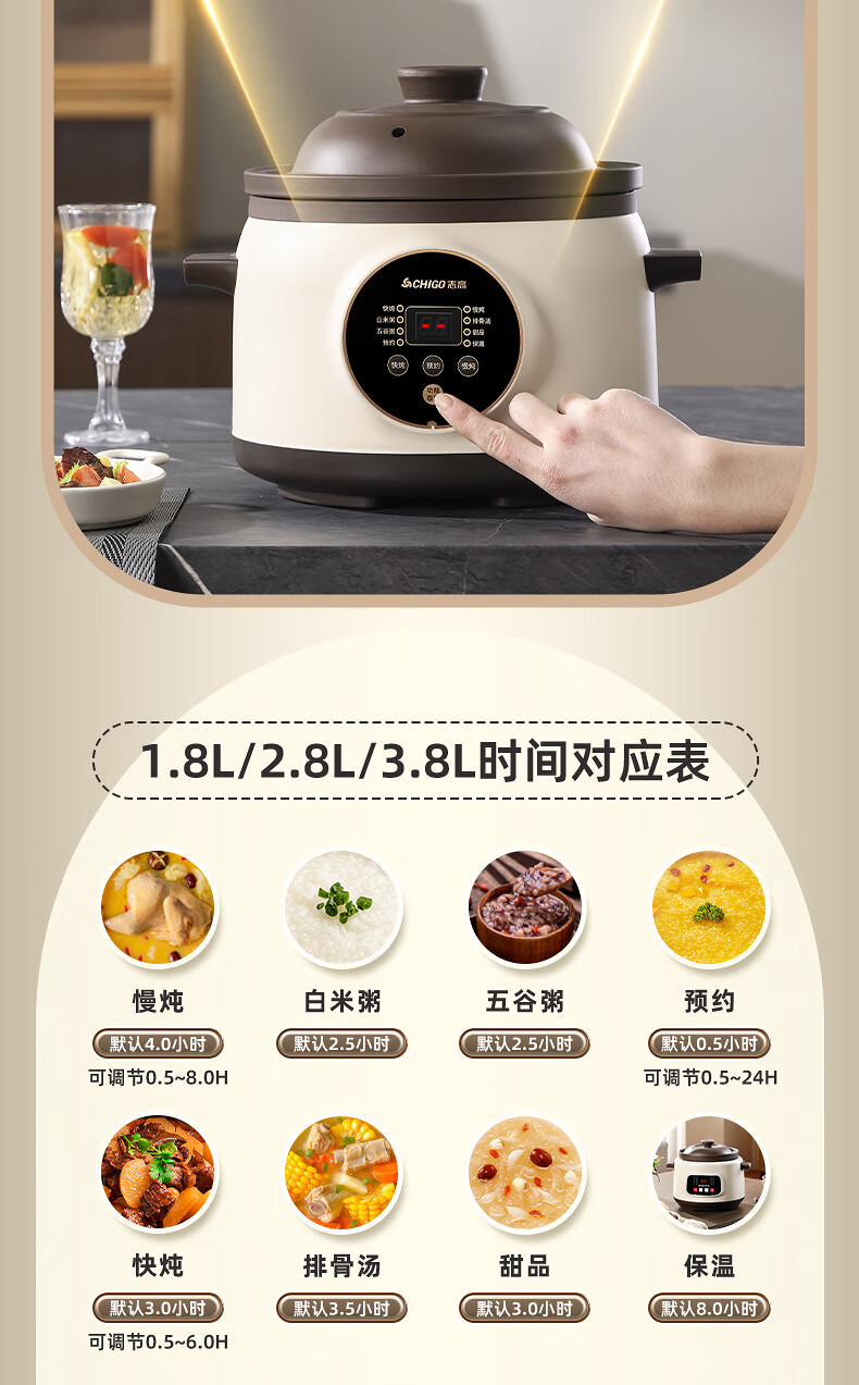 Chigo electric stew pot, steamer, electric cooking pot, stew pot, stew pot, casserole, stew and steaming, all-in-one food supplement pot, stew pot, electric stew pot, electric casserole pot, stew pot, stew water-proof porridge, black porcelain - scheduled appointment, suitable for 3-4 people - 3.8L