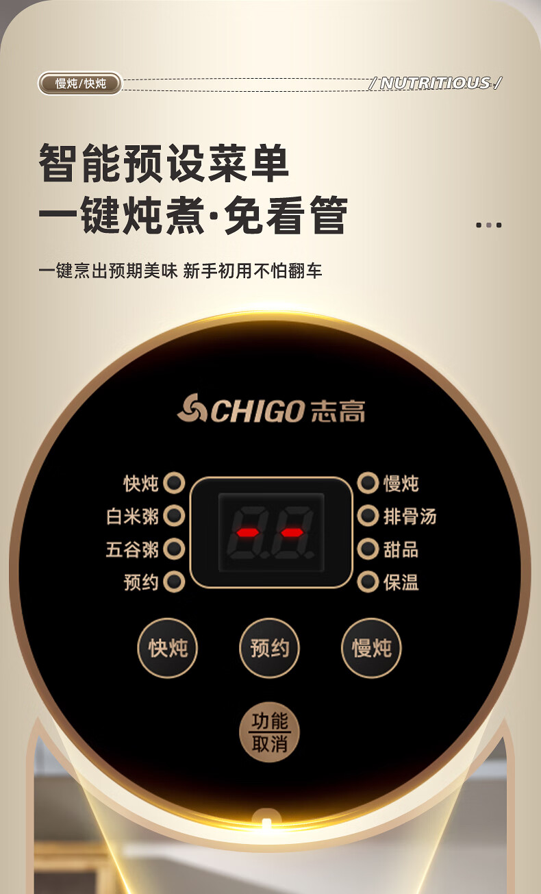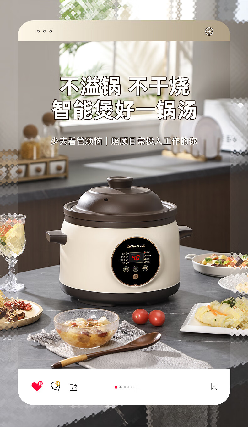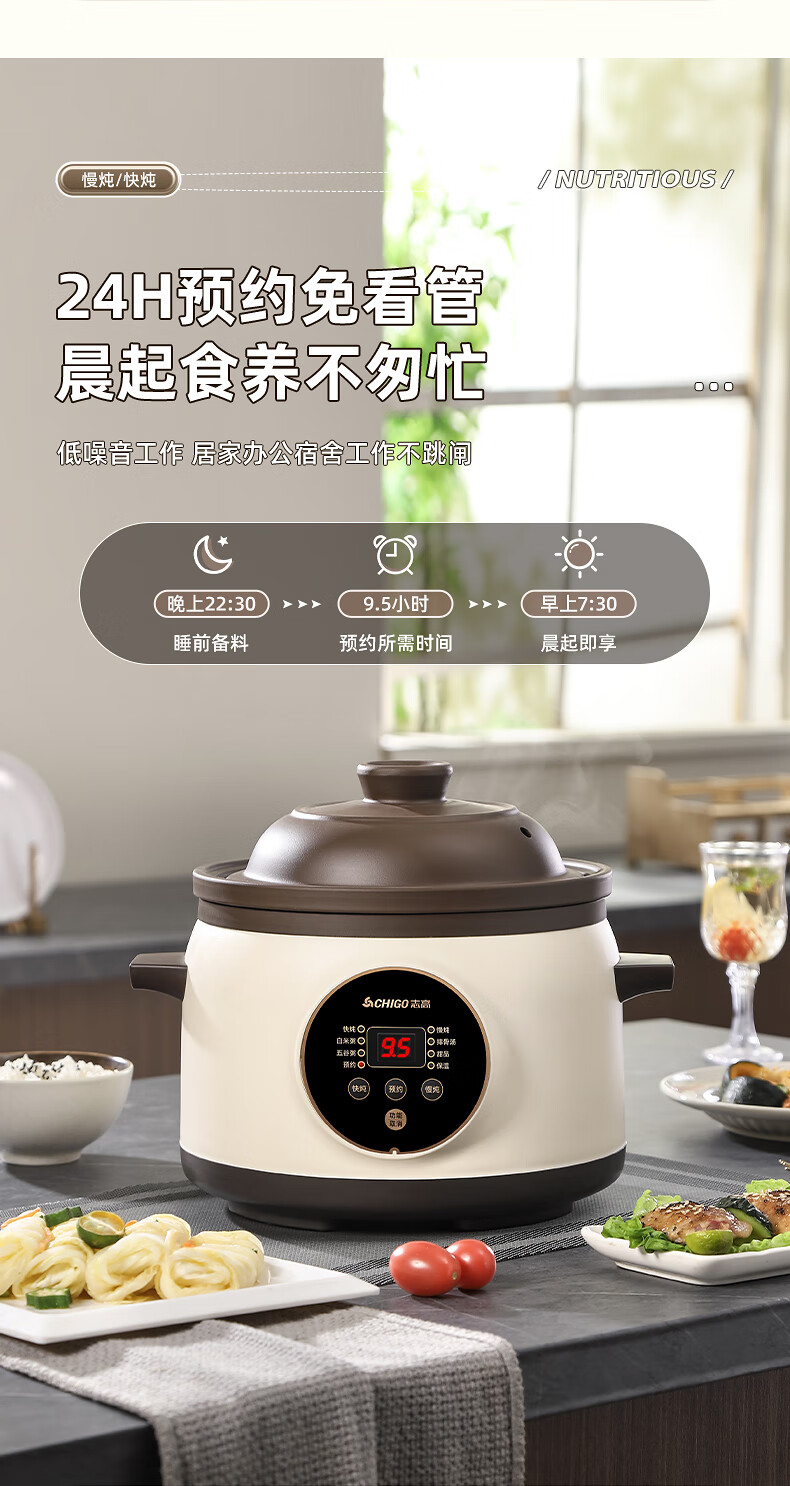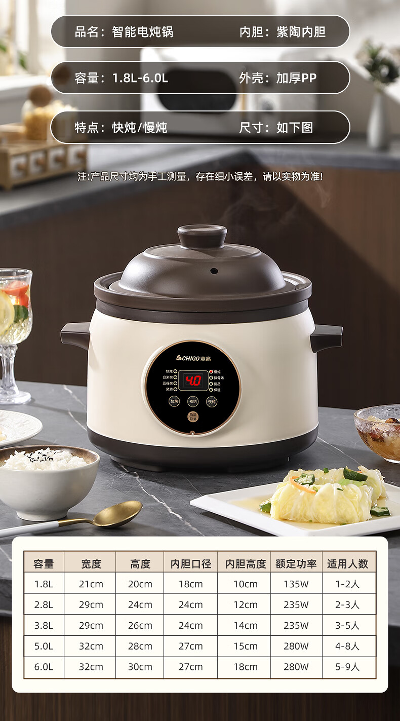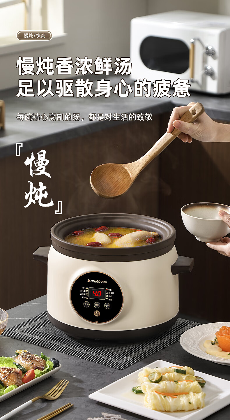 Chigo electric stew pot, steamer, electric cooking pot, stew pot, stew pot, casserole, stew and steaming, all-in-one food supplement pot, stew pot, electric stew pot, electric casserole pot, stew pot, stew water-proof porridge, black porcelain - scheduled appointment, suitable for 3-4 people - 3.8L
