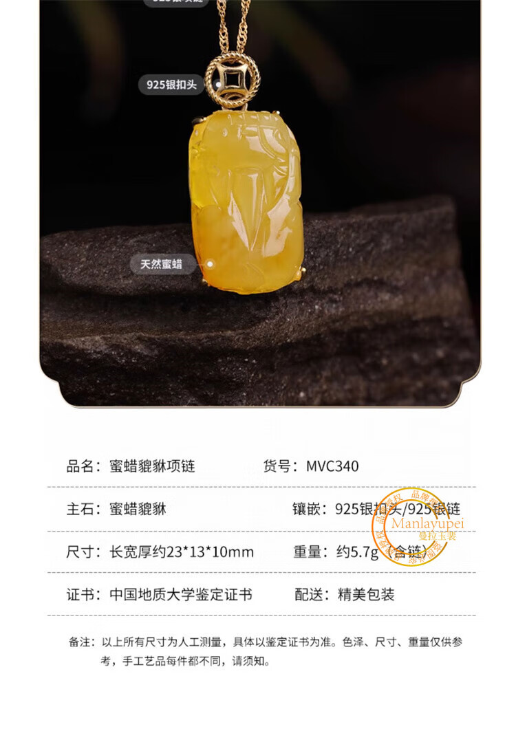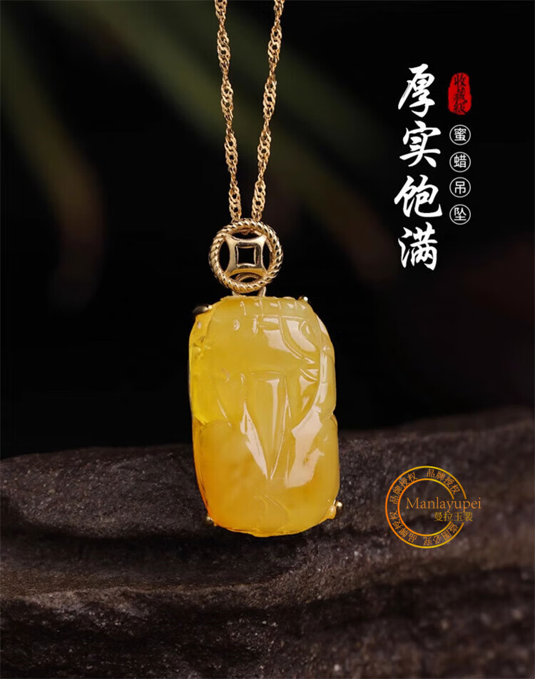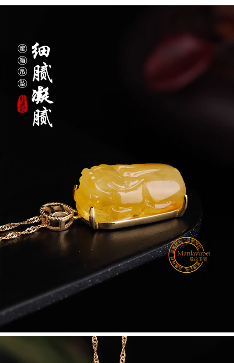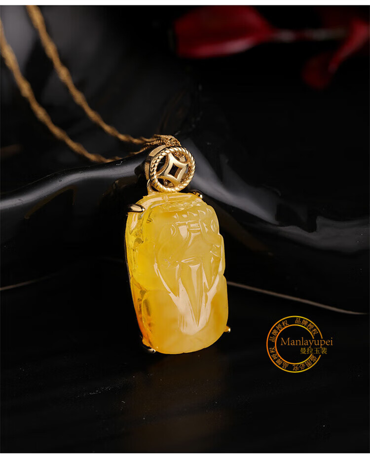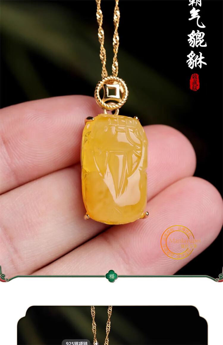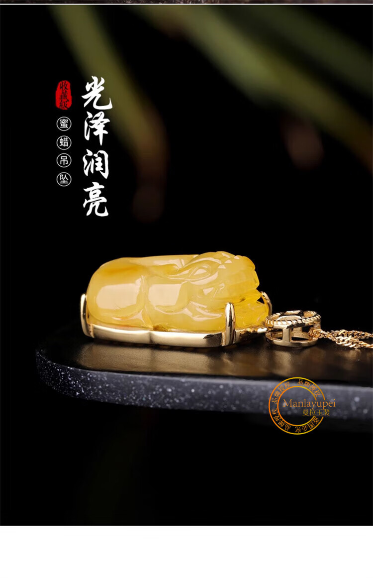 Manla Jade Pei Domineering Pixiu Natural Beeswax Pendant Pixiu Pendant Baltic Amber Silver Inlaid Jade Pendant Silver Inlaid Beeswax Free 925 Silver Chain