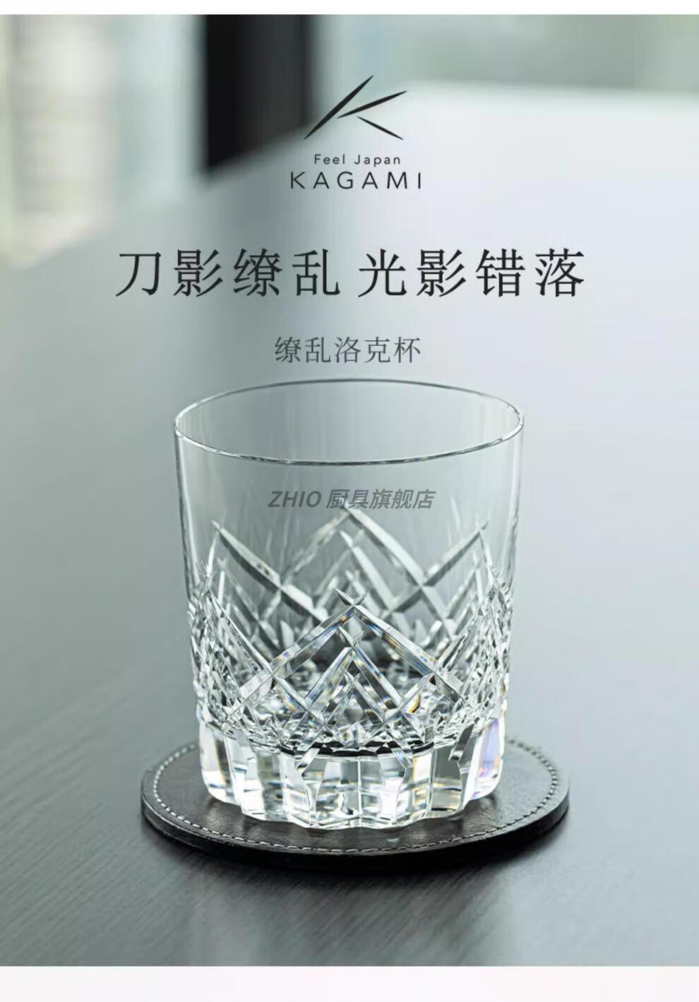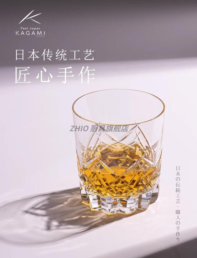 ZHIO Japan imported Edo Kiriko foreign wine glass whiskey cup crystal glass twill cup foreign wine glass Locke glass wine glass sharp Locke cup 370/m/l original gift box