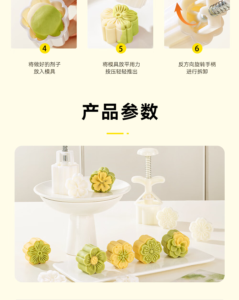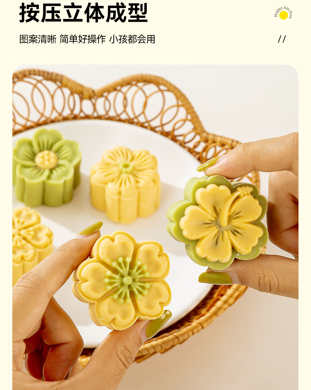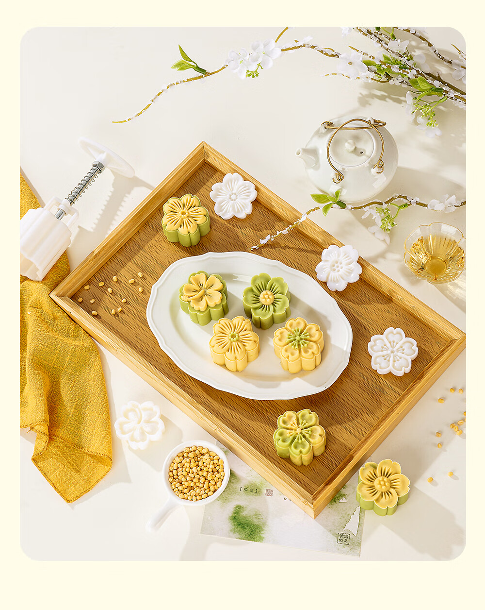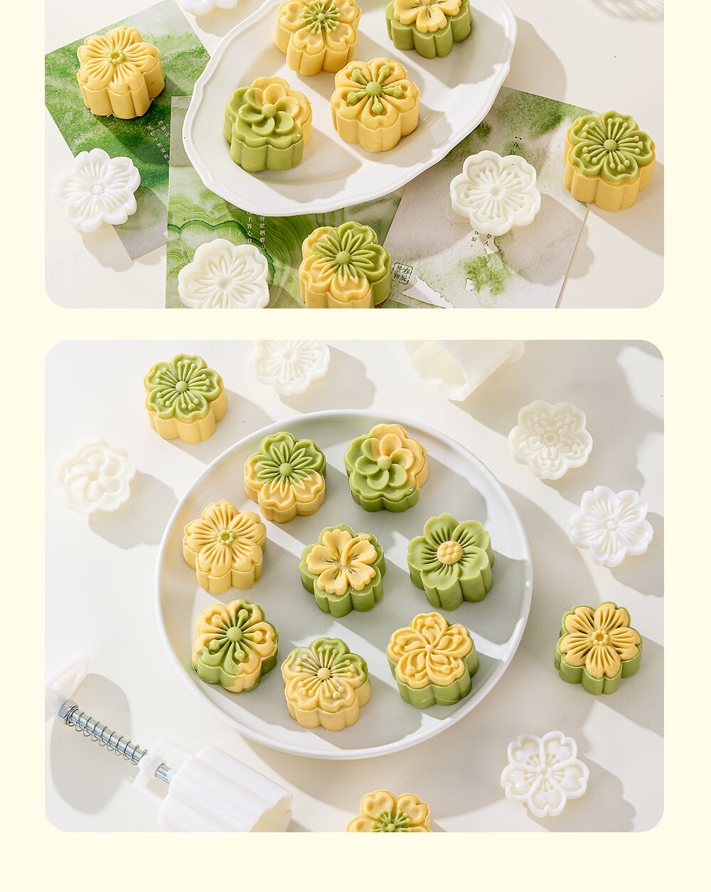 Snow skin mooncake mold mung bean cake press Mid-Autumn Festival hand-pressed mold food supplement tool mooncake mold 30g 4 pieces flower/three-dimensional flower shape