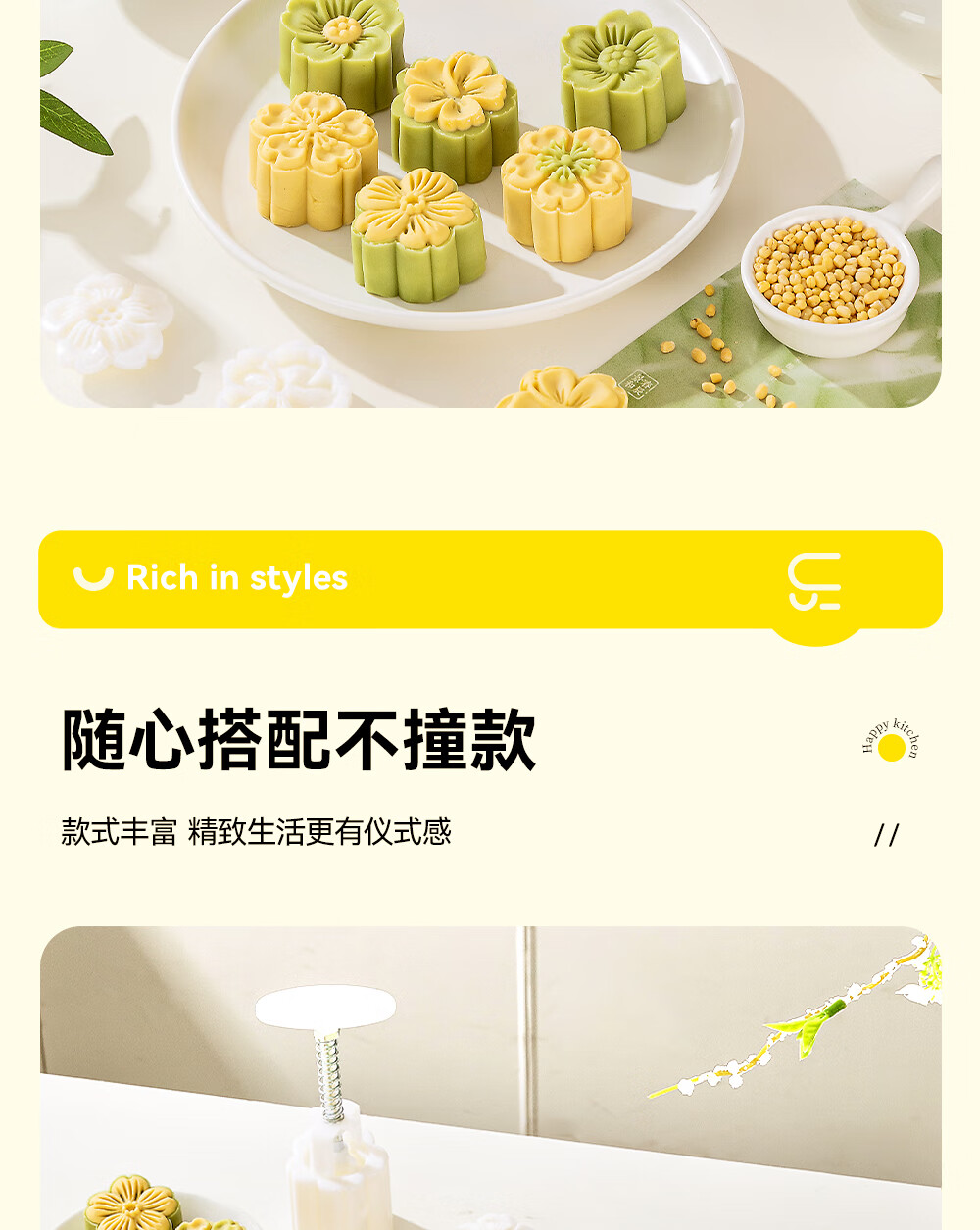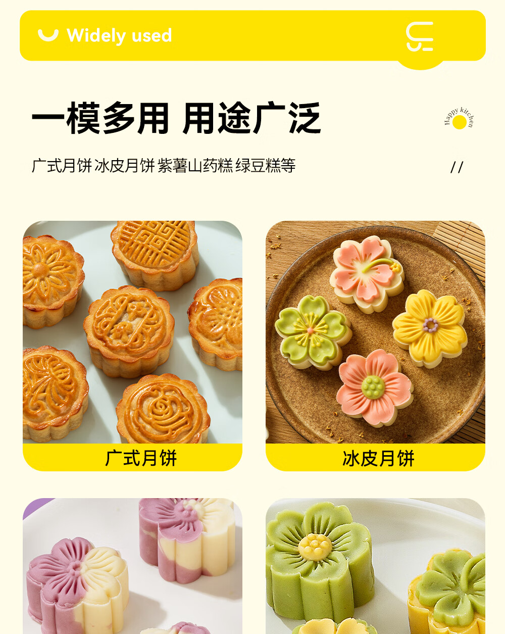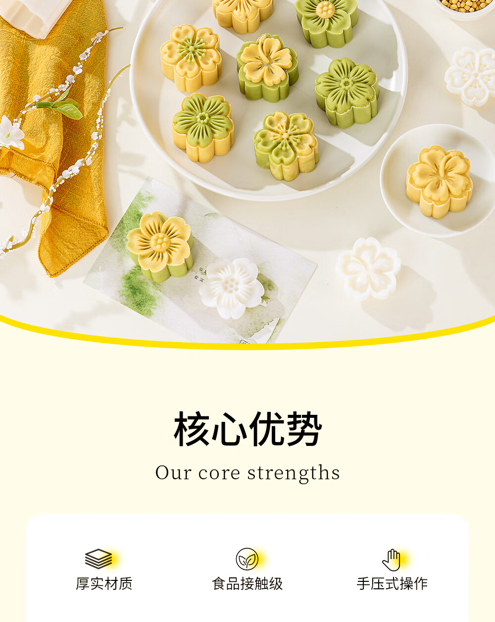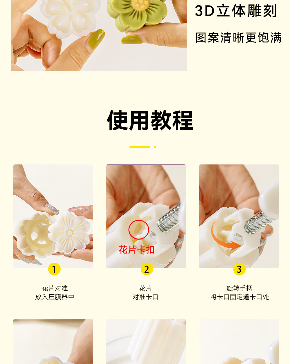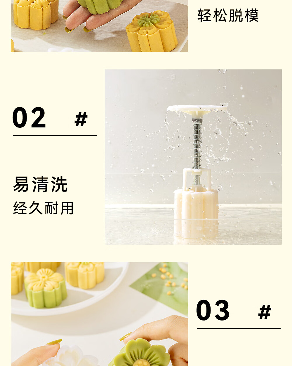 Snow skin mooncake mold mung bean cake press Mid-Autumn Festival hand-pressed mold food supplement tool mooncake mold 30g 4 pieces flower/three-dimensional flower shape