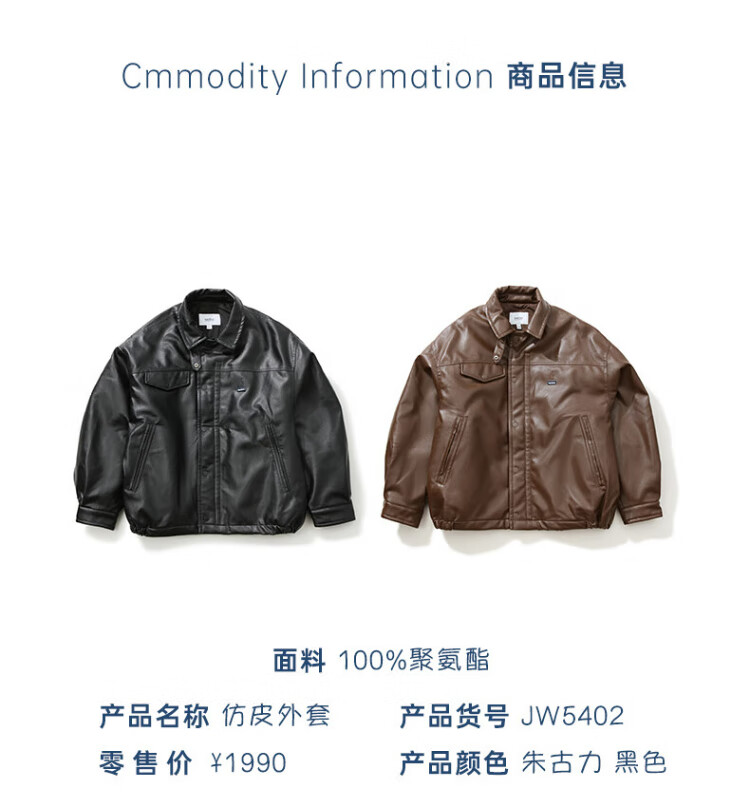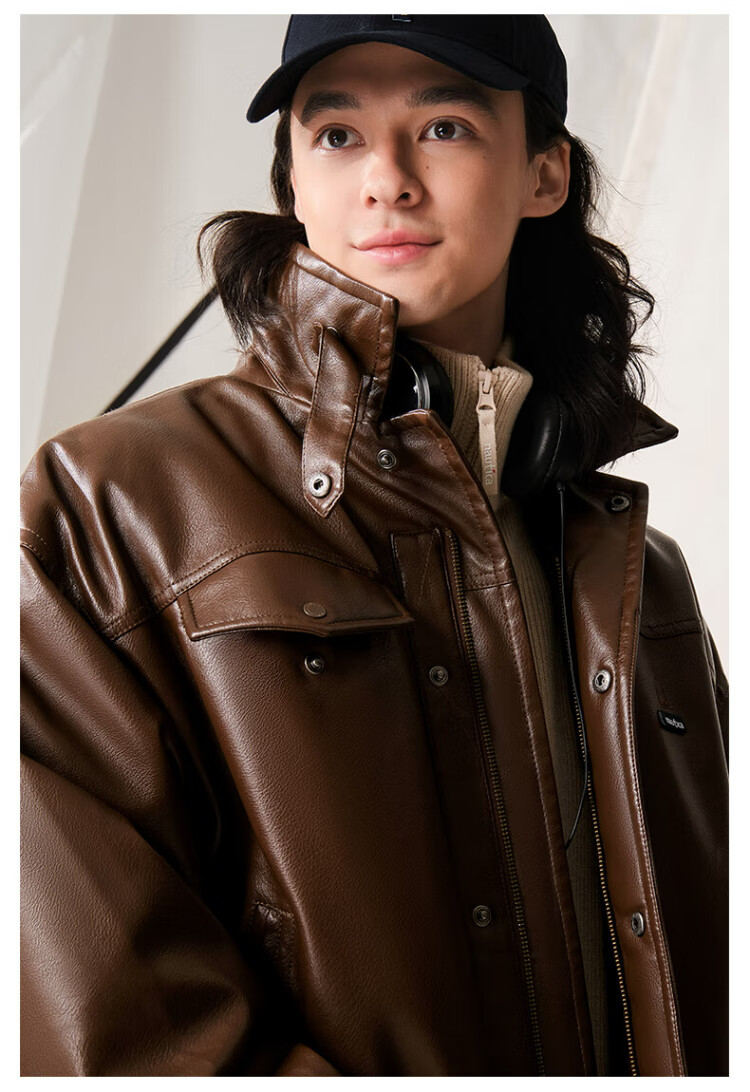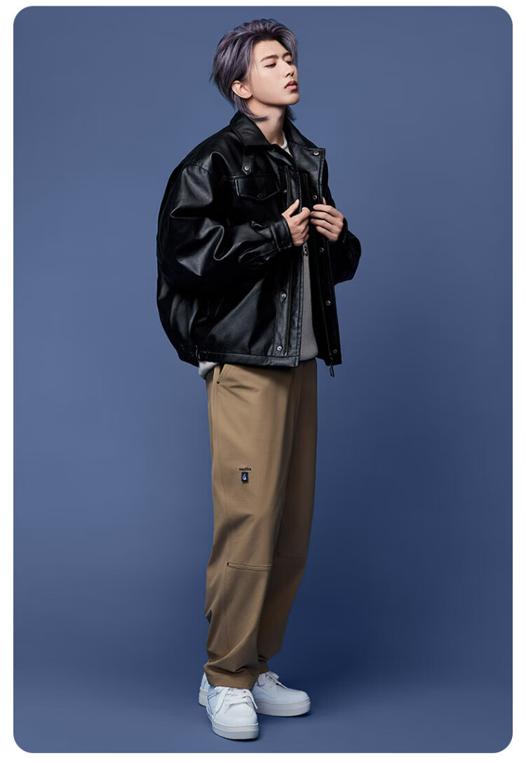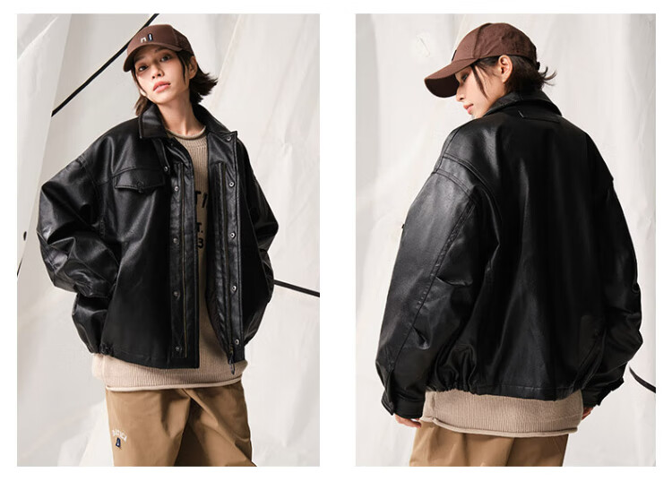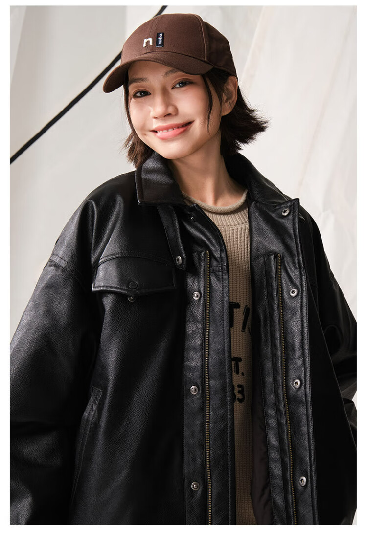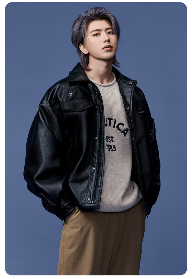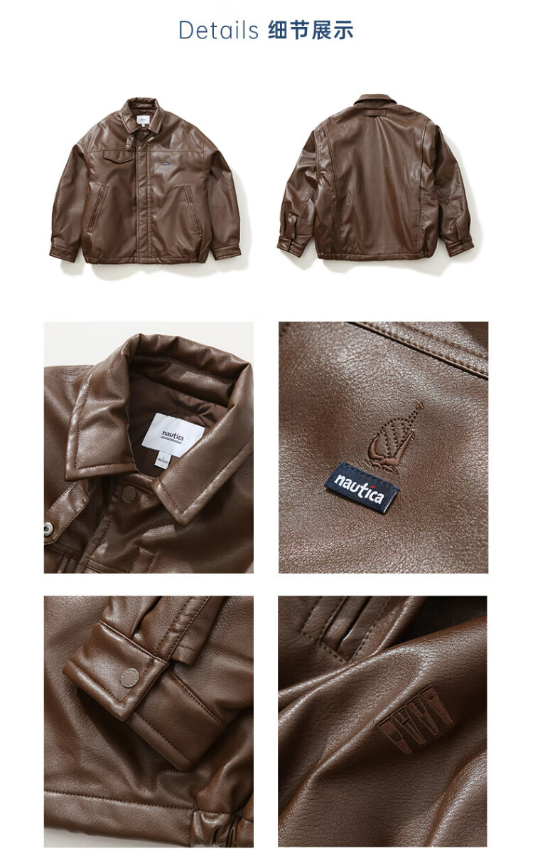 Nautica white sail star same style white sail CityBoy unisex Japanese loose O-type retro imitation leather jacket JW5402 black 0TB S