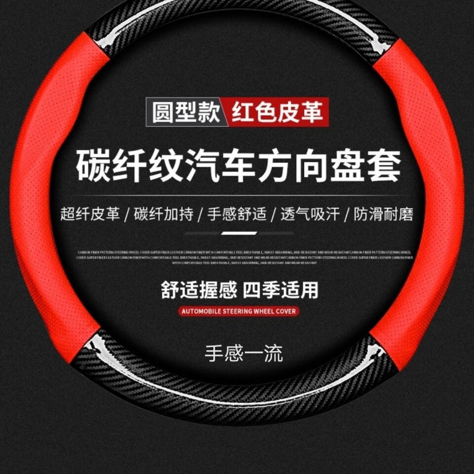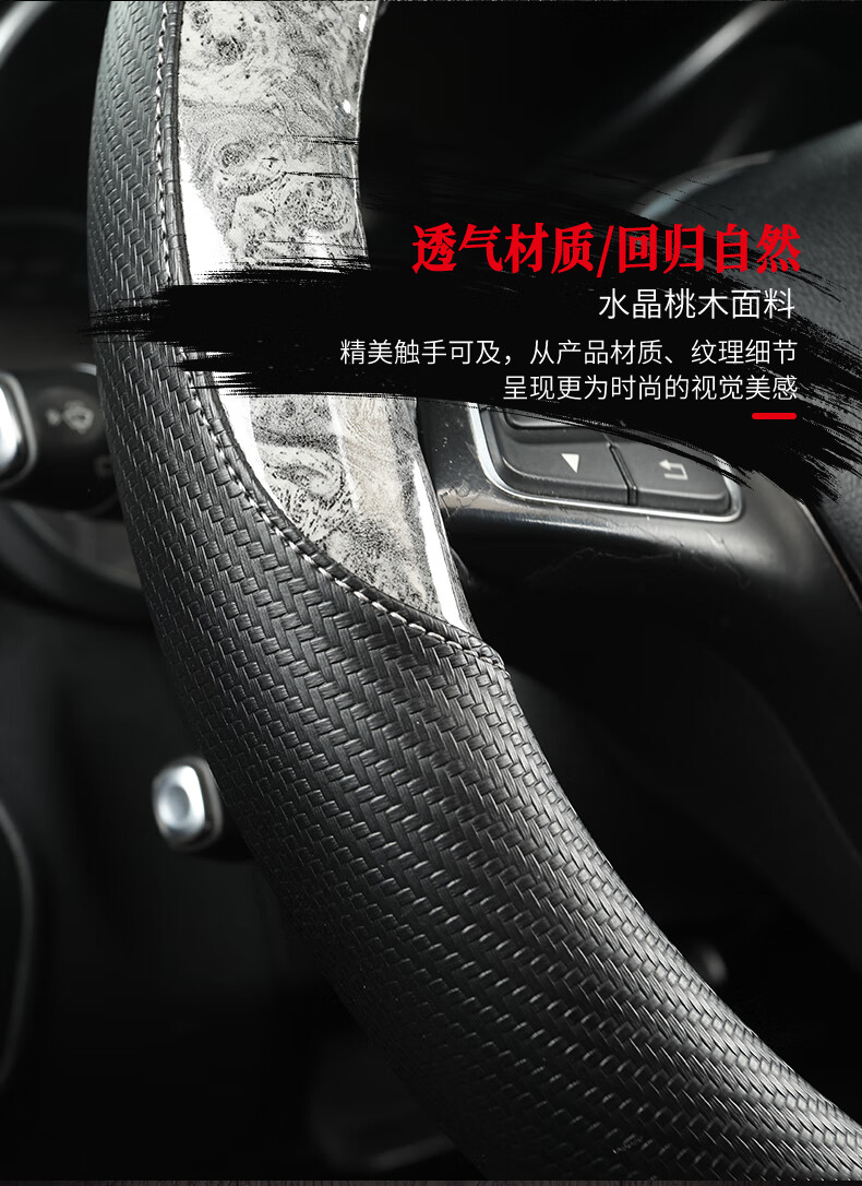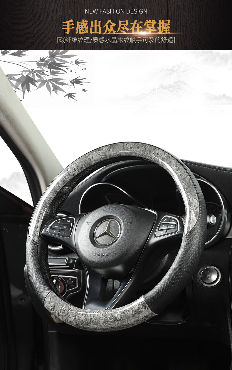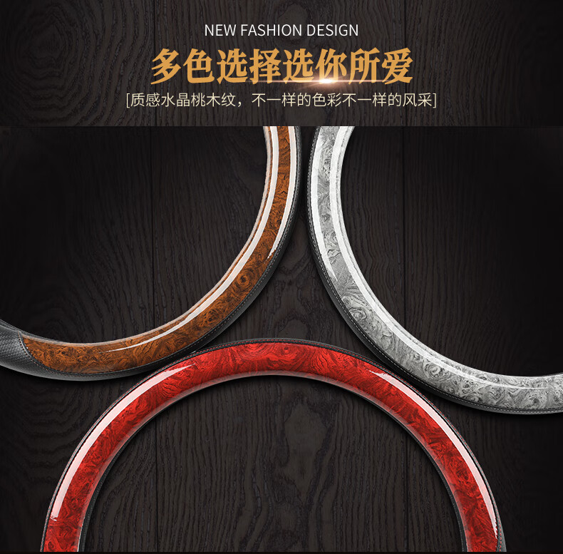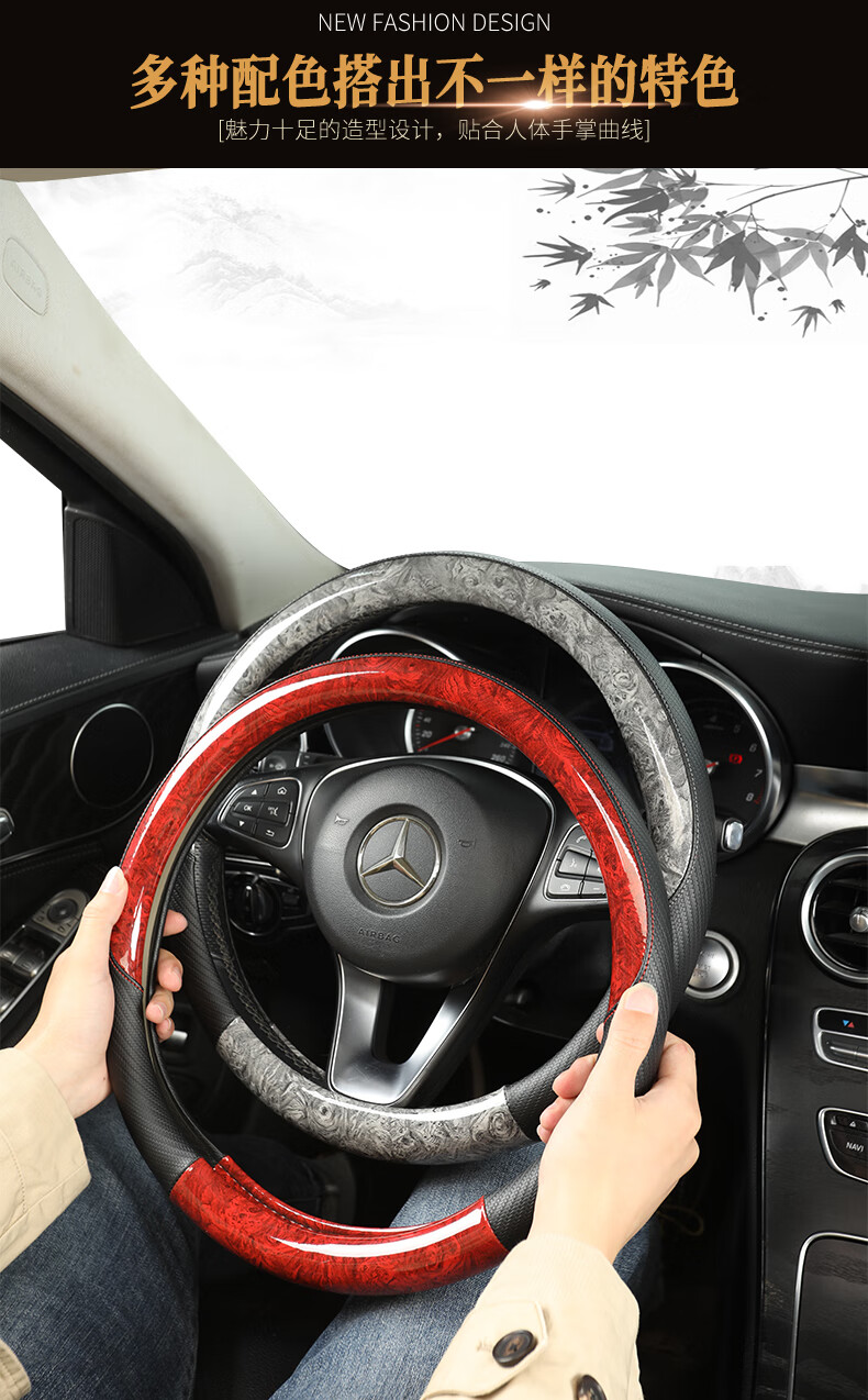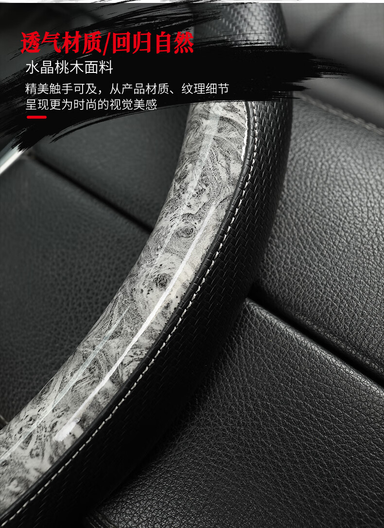 Select peach wood grain steering wheel cover for all seasons, carbon fiber grain car handle cover accessories, non-slip and sweat-absorbent car interior decoration, peach wood grain carbon fiber grain, peach wood grain type 0