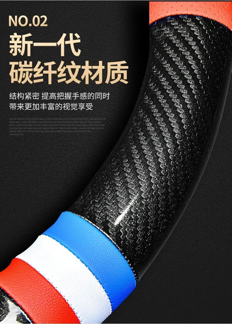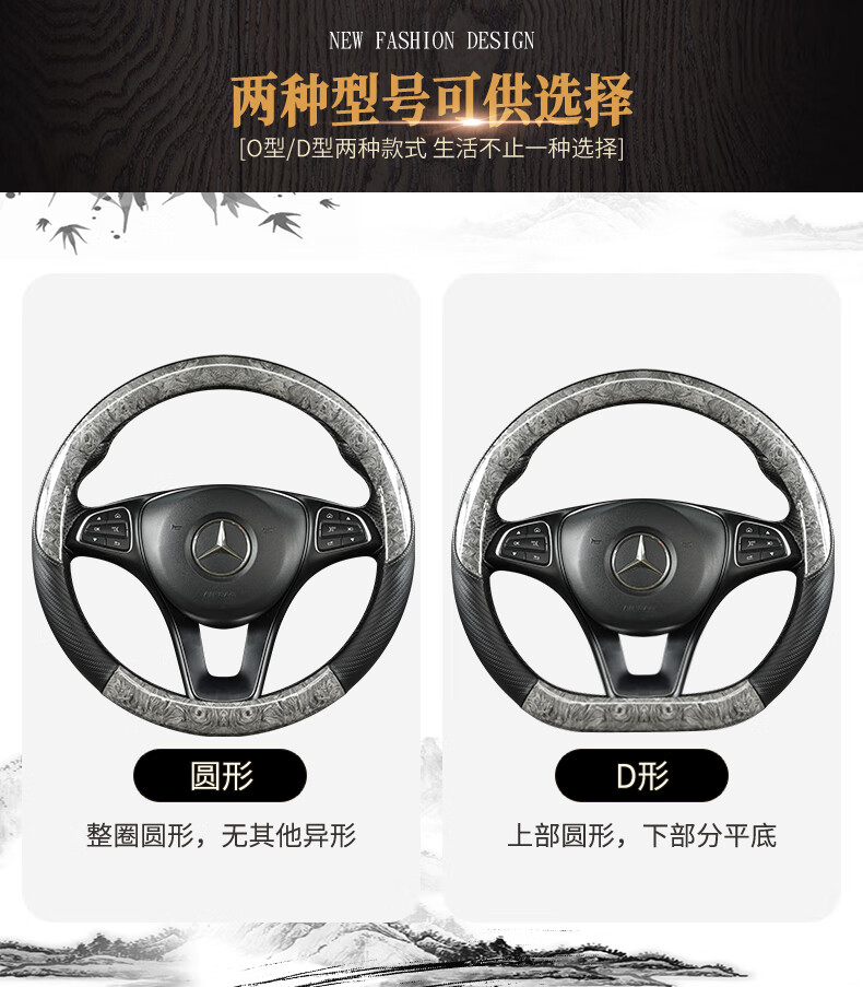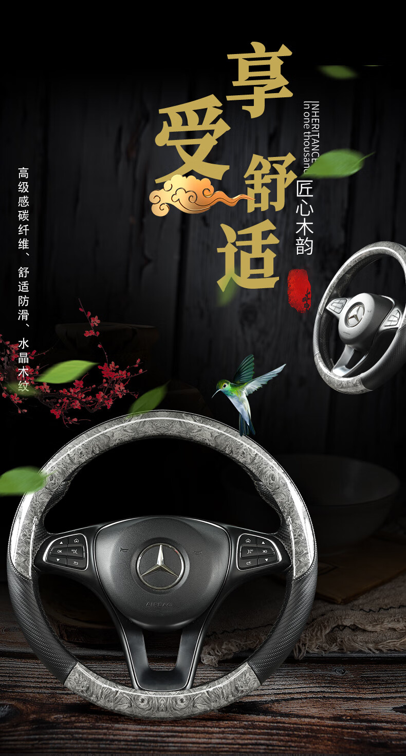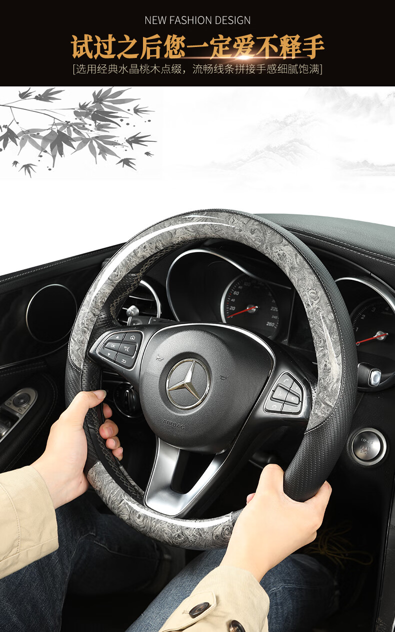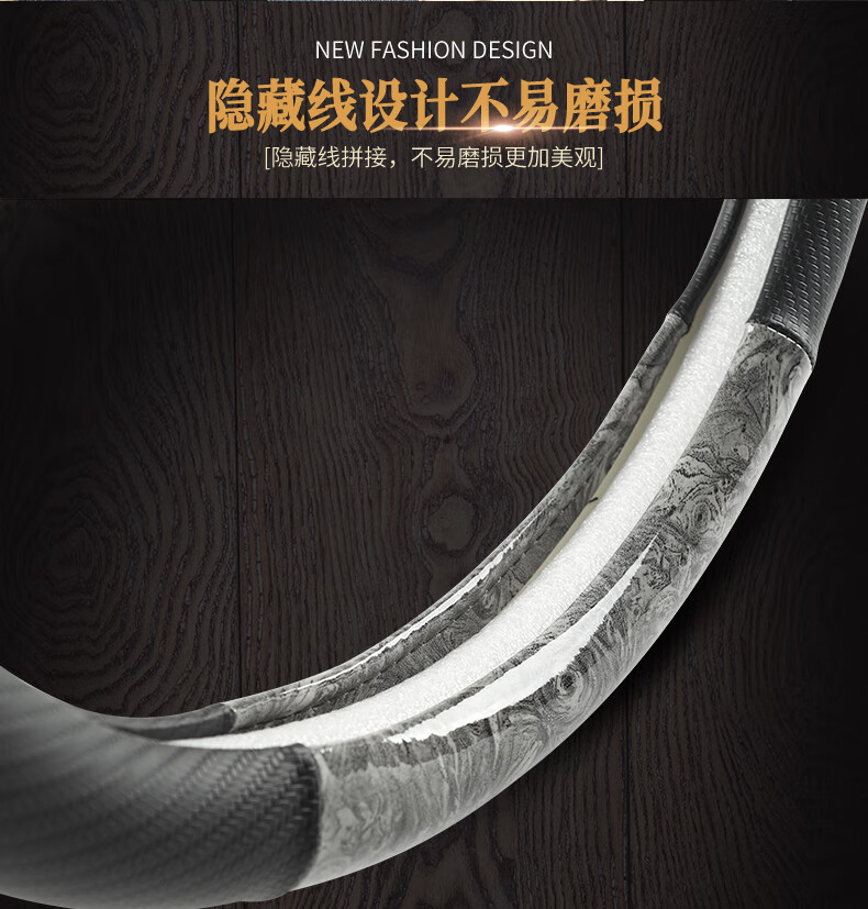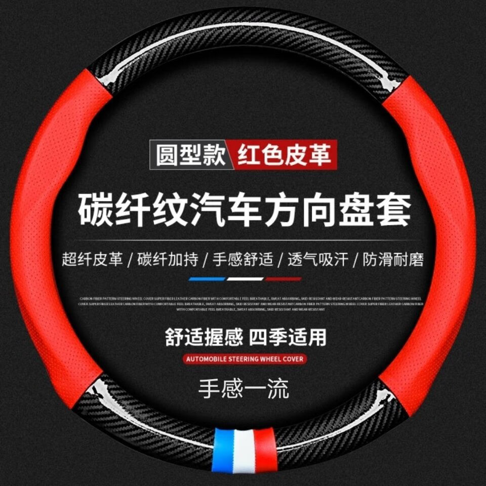 Select peach wood grain steering wheel cover for all seasons, carbon fiber grain car handle cover accessories, non-slip and sweat-absorbent car interior decoration, peach wood grain carbon fiber grain, peach wood grain type 0