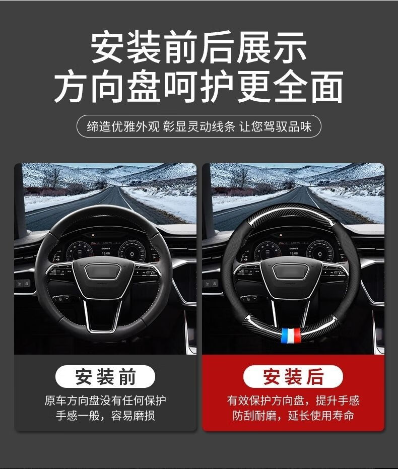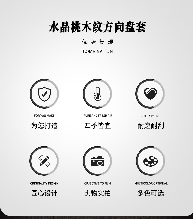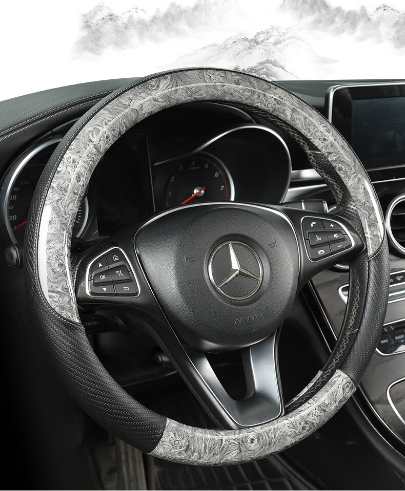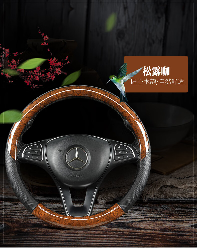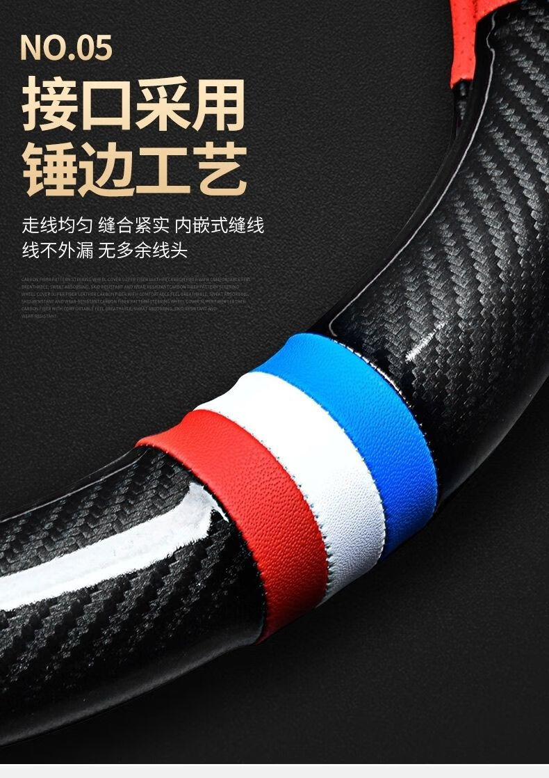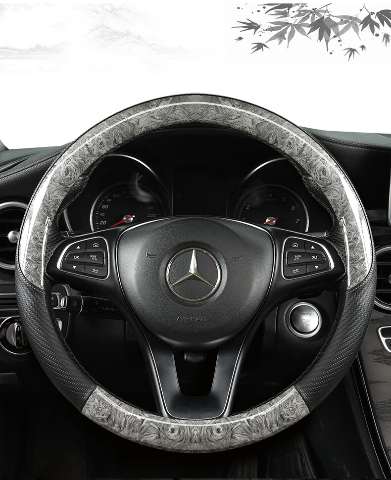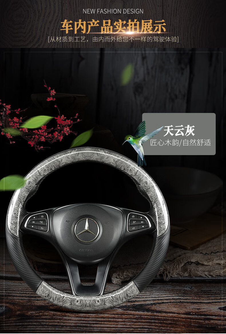 Select peach wood grain steering wheel cover for all seasons, carbon fiber grain car handle cover accessories, non-slip and sweat-absorbent car interior decoration, peach wood grain carbon fiber grain, peach wood grain type 0