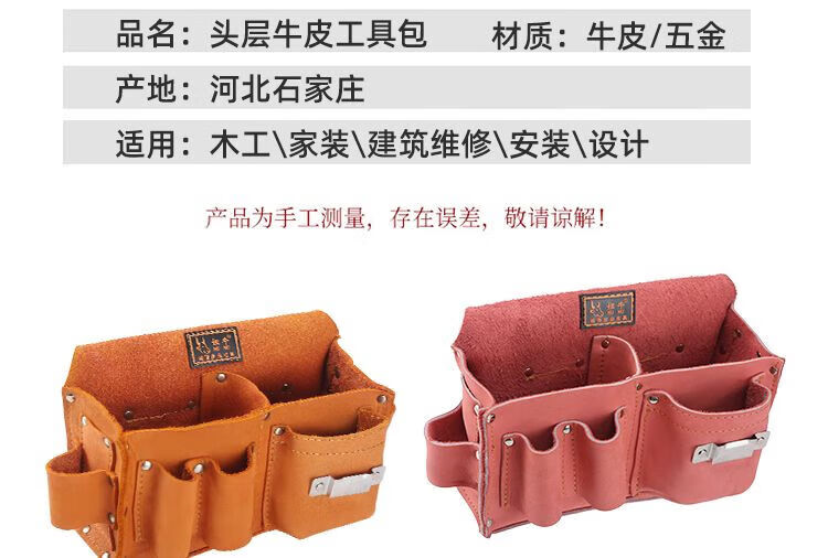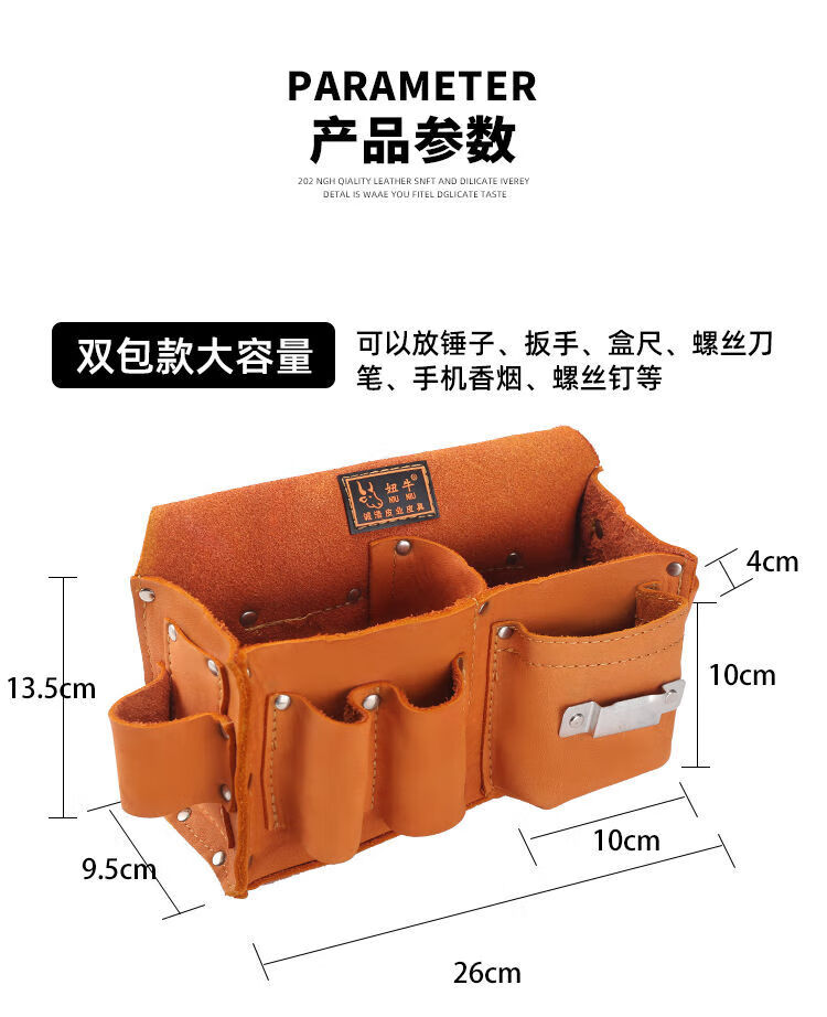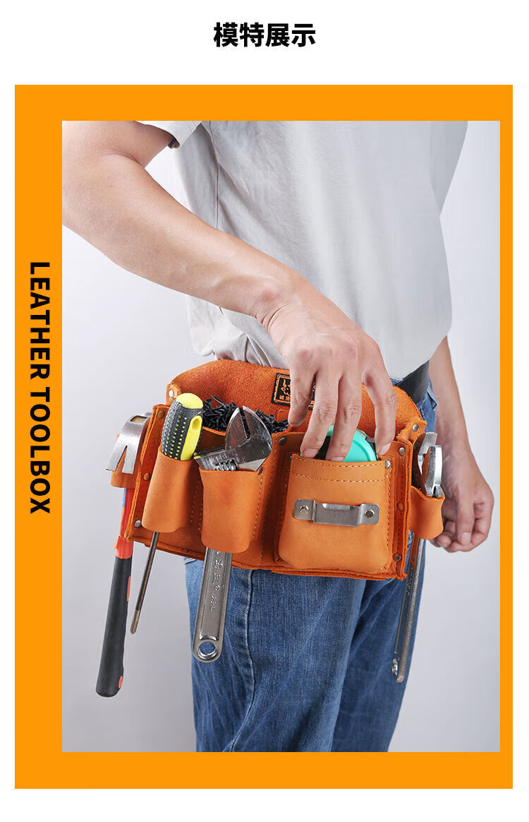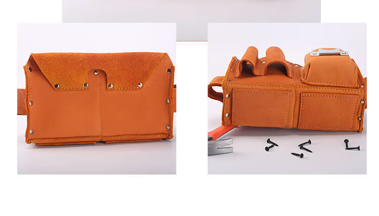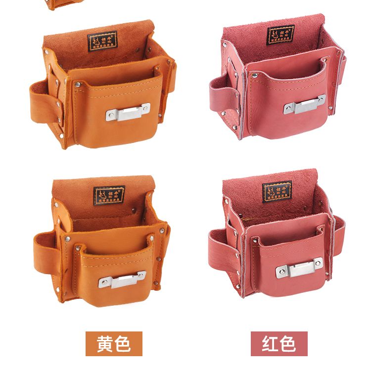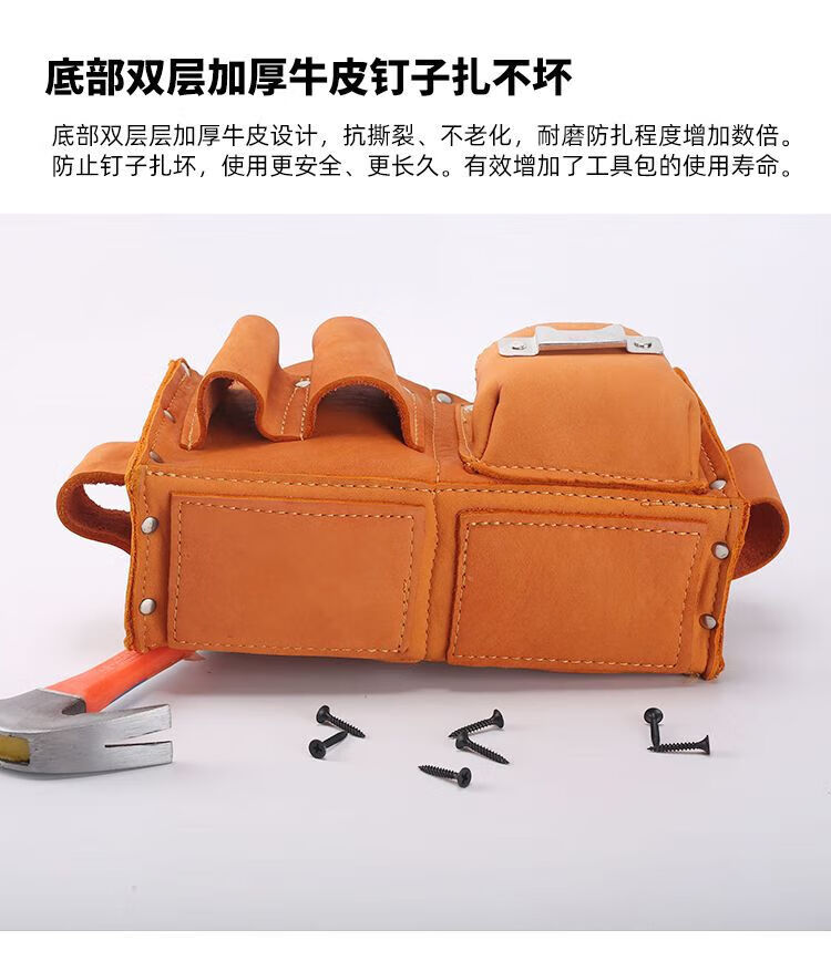Xian'ang carpentry nail waist pocket nail pocket construction site special nail bag first layer cowhide wear-resistant thickened men's multifunctional waist bag free double pocket model A0112 with yellow first layer cowhide