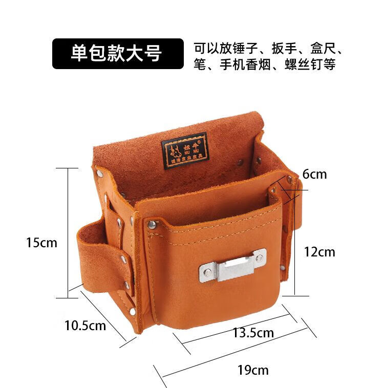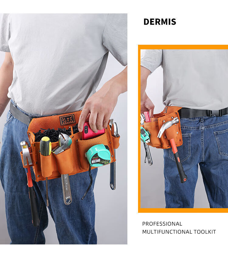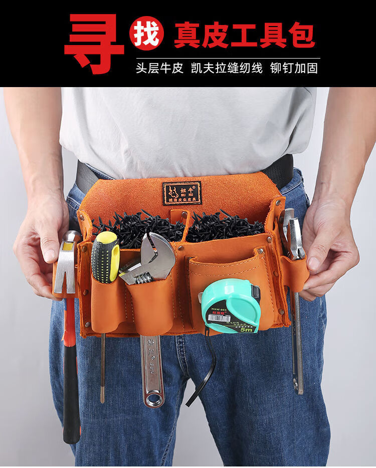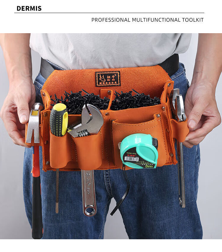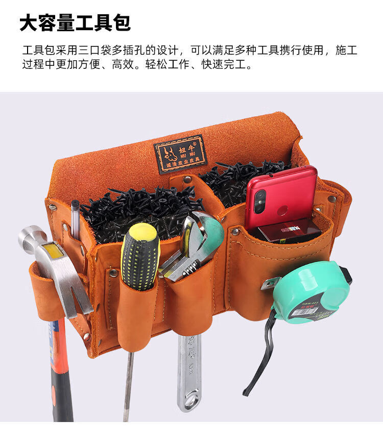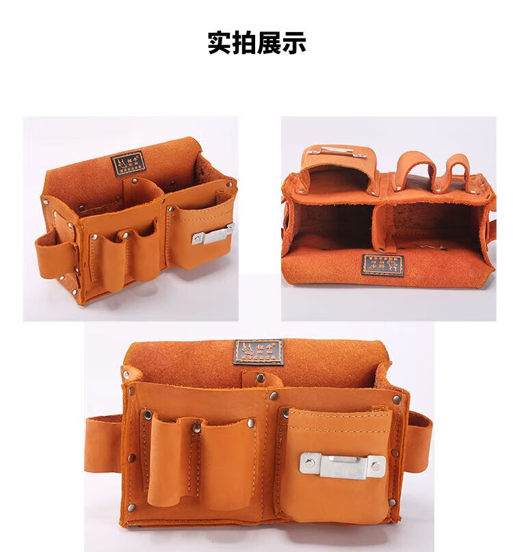 Xian'ang carpentry nail waist pocket nail pocket construction site special nail bag first layer cowhide wear-resistant thickened men's multifunctional waist bag free double pocket model A0112 with yellow first layer cowhide