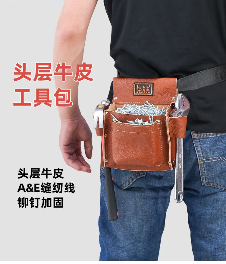 Xianang pure cowhide tool bag woodworking nail pocket first layer cowhide nail pocket large capacity nail bag multi-functional wear-resistant and durable free double pockets with red