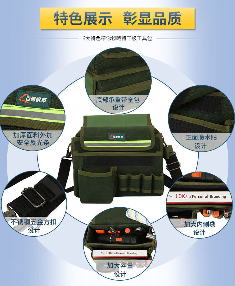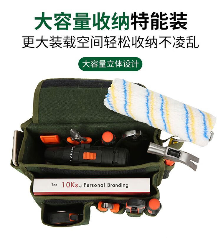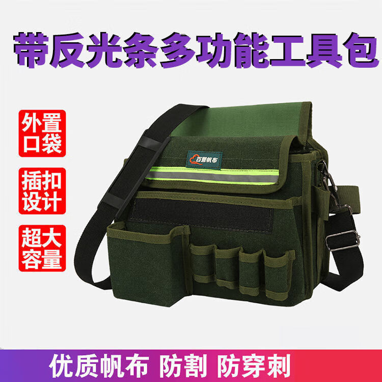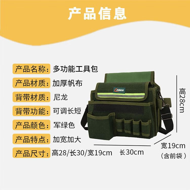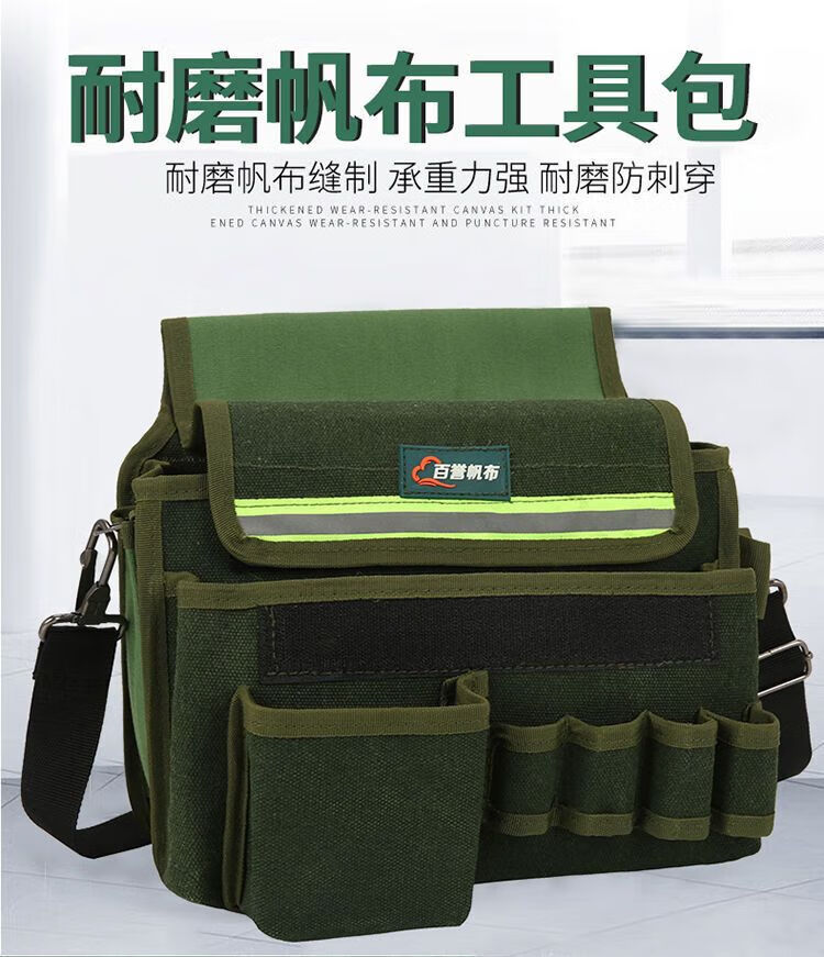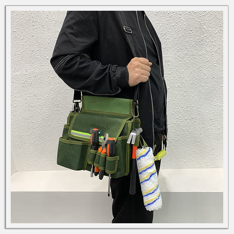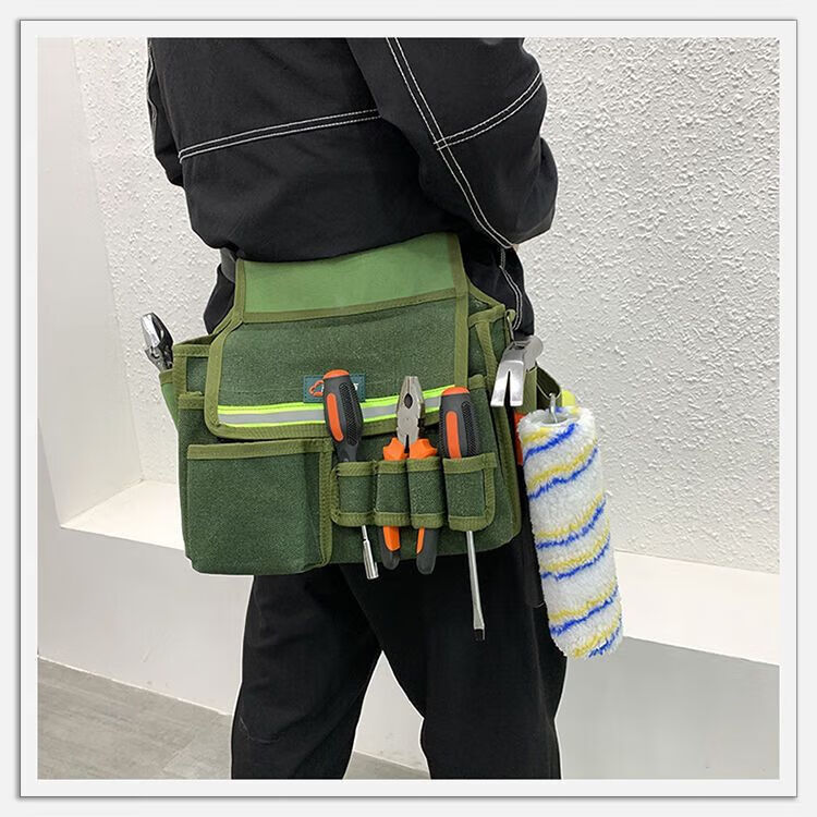 Xianang multi-functional extra large electrician carpentry cross-body tool bag waist bag canvas anti-fading nail bag wallpaper sticker tool bag comes with multi-functional double-layer nail bag length 30*width 19*height 28