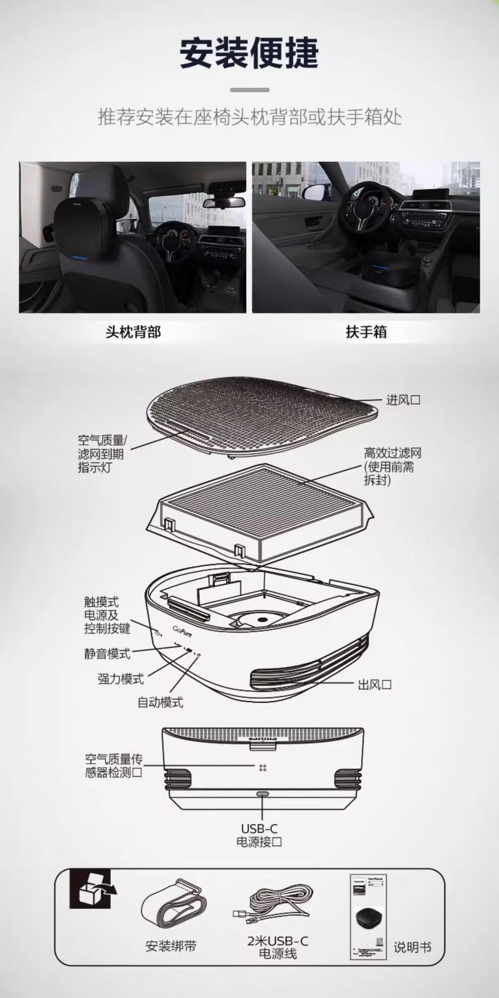 Philips car air purifier car deodorization car interior formaldehyde odor smoke removal GP5301 GP5301 comes standard with filter + 1 filter