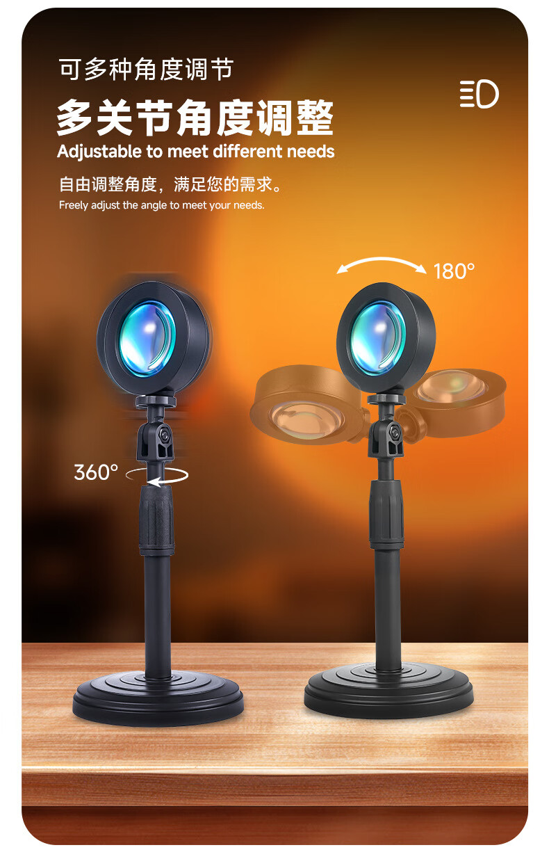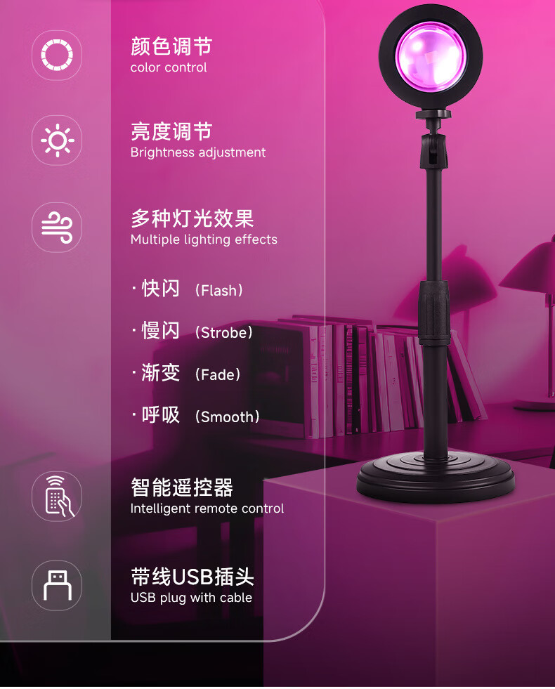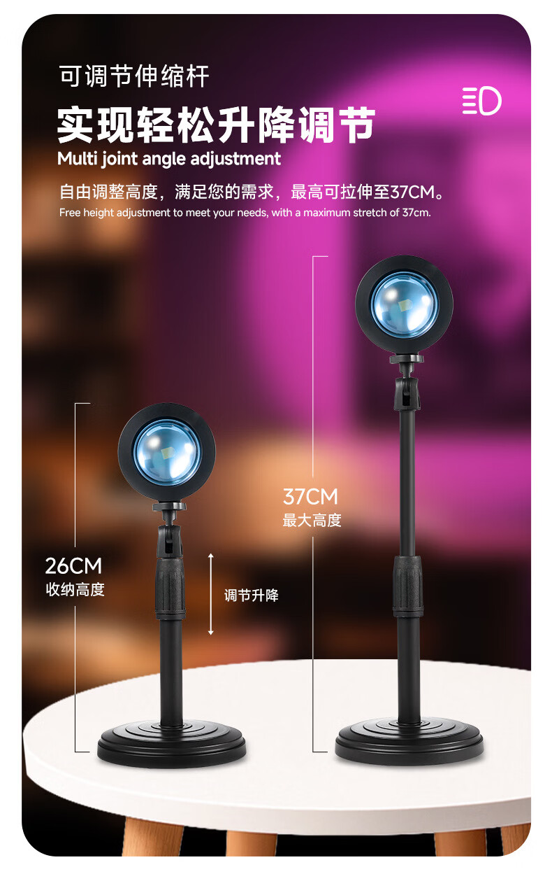 QZGY sunset atmosphere lamp portrait photography photography sunset lamp fill light multi-color light source Internet celebrity ins style mini small table lamp projection intelligent dimming dusk sunset lamp auxiliary props telescopic adjustment 27CM high - 24 button square remote control sunset atmosphere lamp RGB16 color black