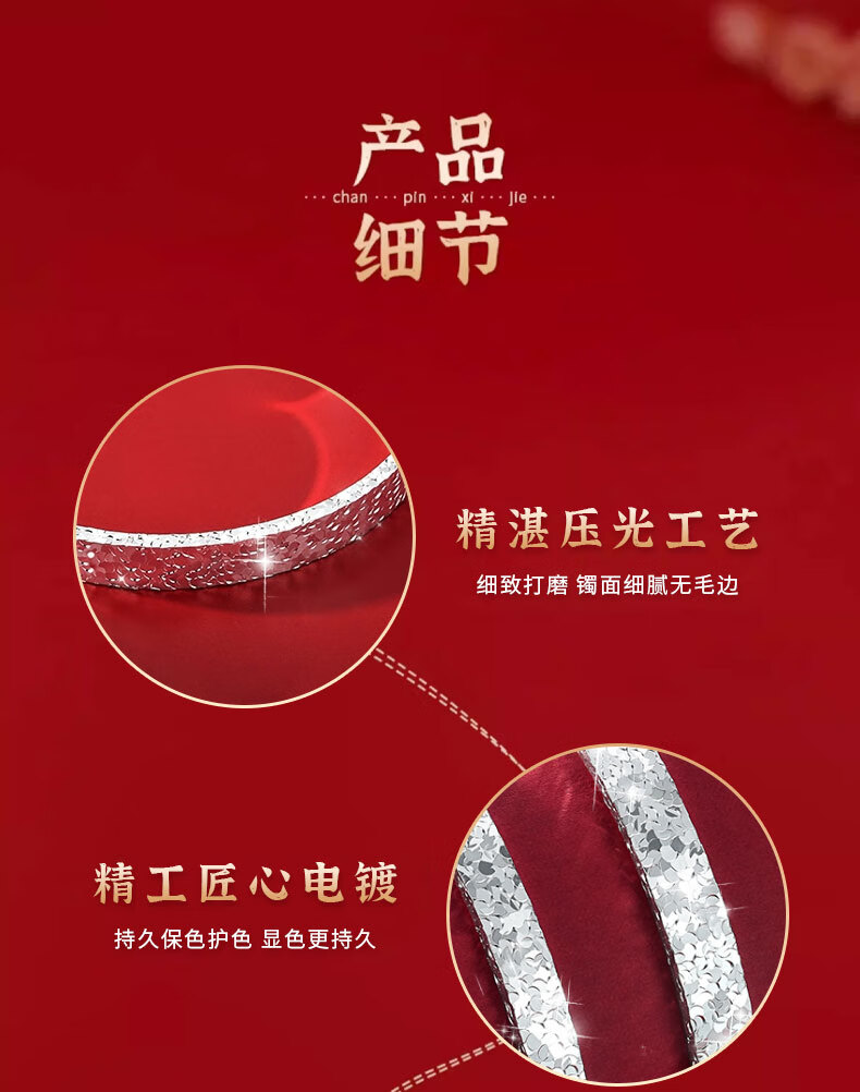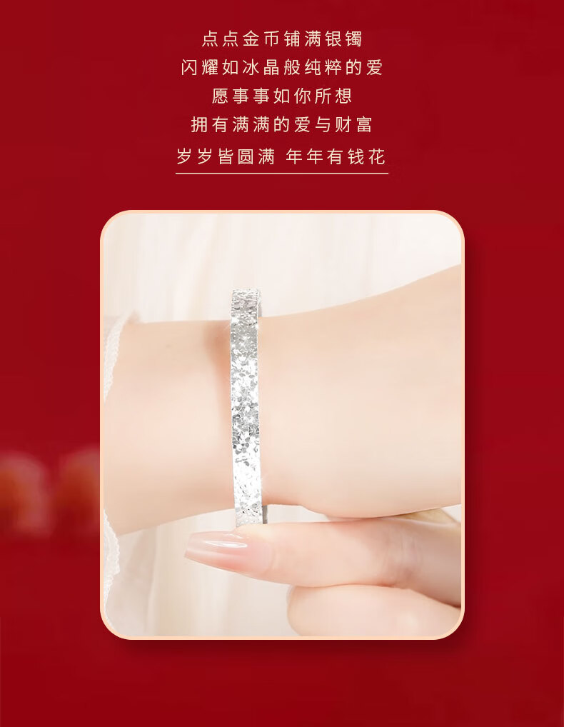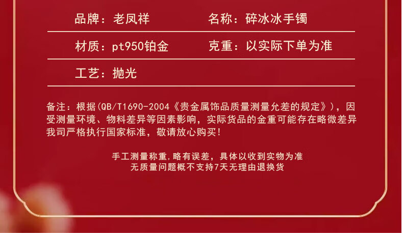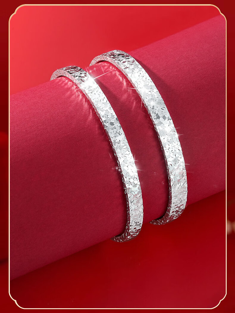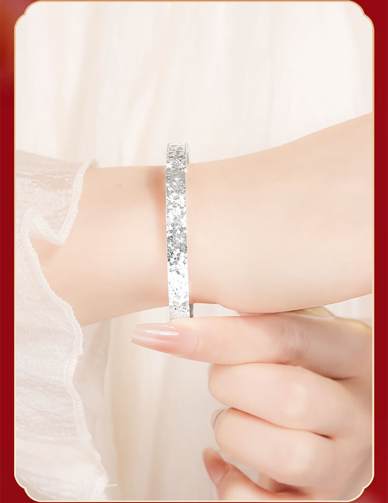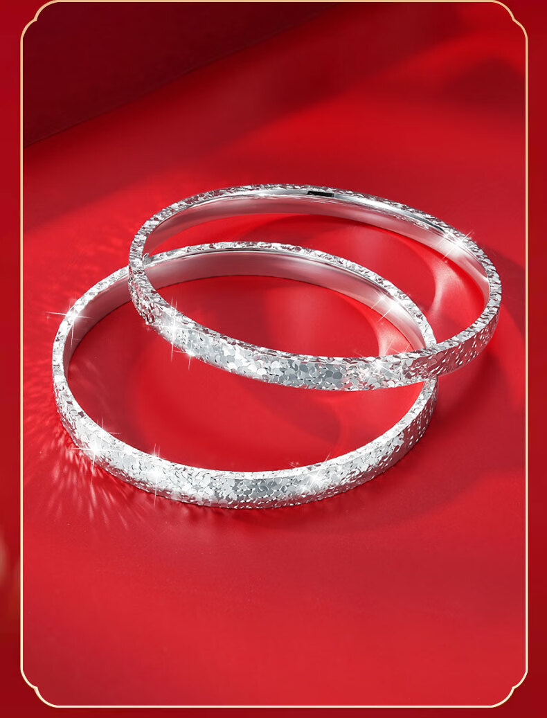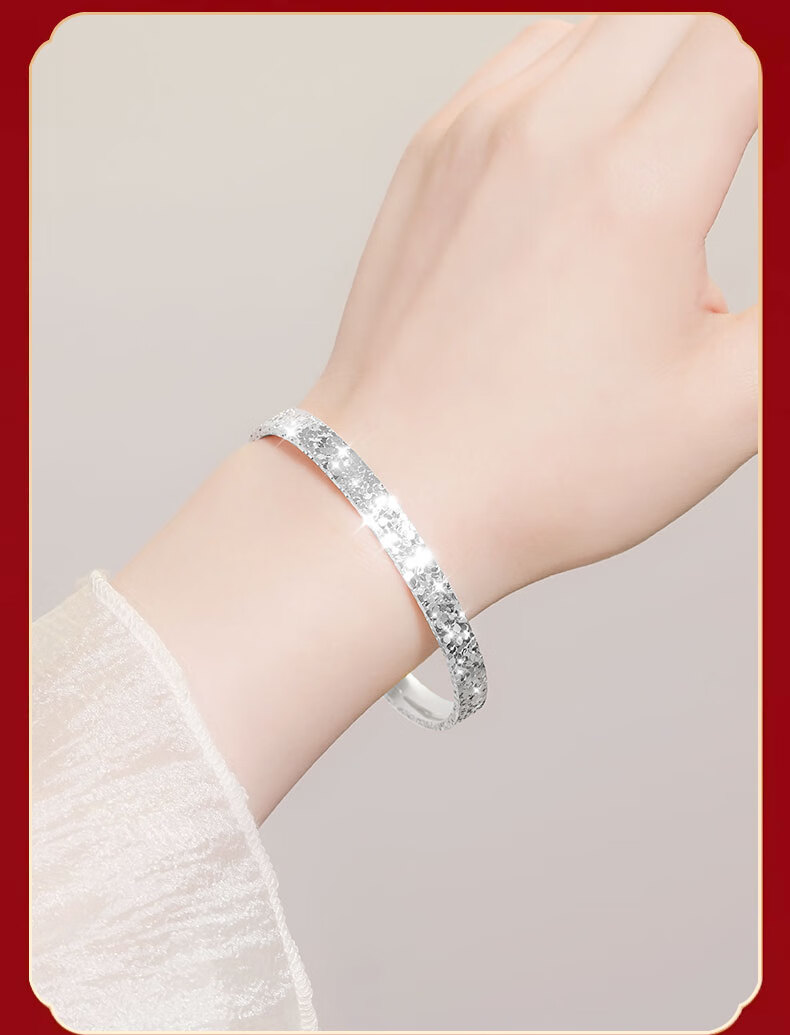 Lao Fengxiang pt950 platinum three-sided crushed ice platinum bracelet for women, Valentine's Day birthday gift for girlfriend and wife, three-sided crushed ice platinum bracelet, 54 rings, about 12-13.5g