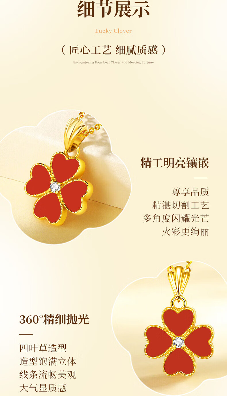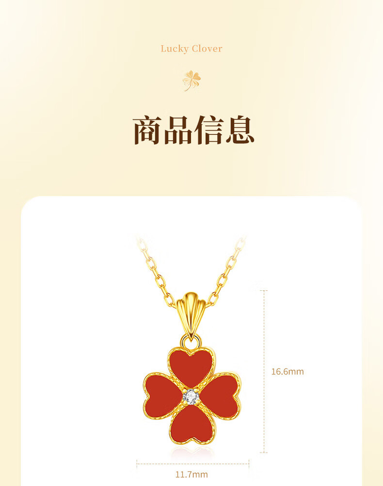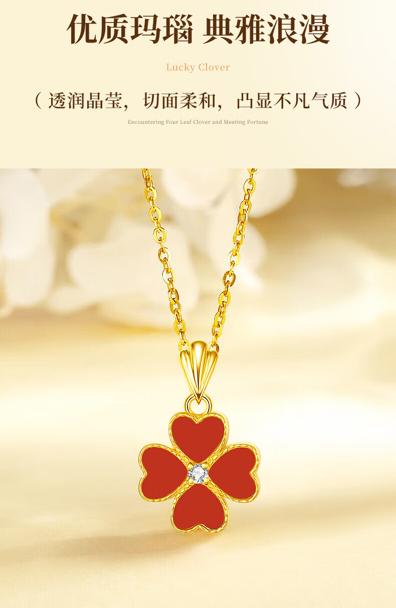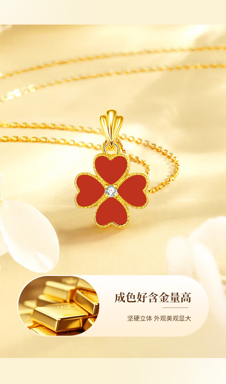 CHINA GOLD Four-leaf clover gold necklace women's pure gold pendant birthday gift for girlfriend and wife wedding anniversary heart-warming and practical pure gold four-leaf clover red agate pendant + K gold chain