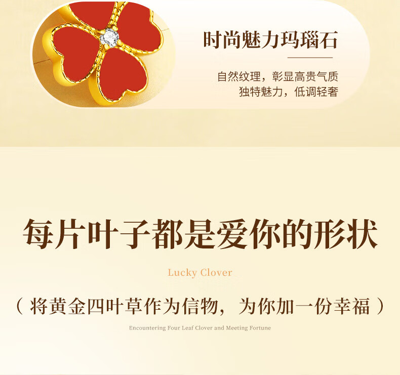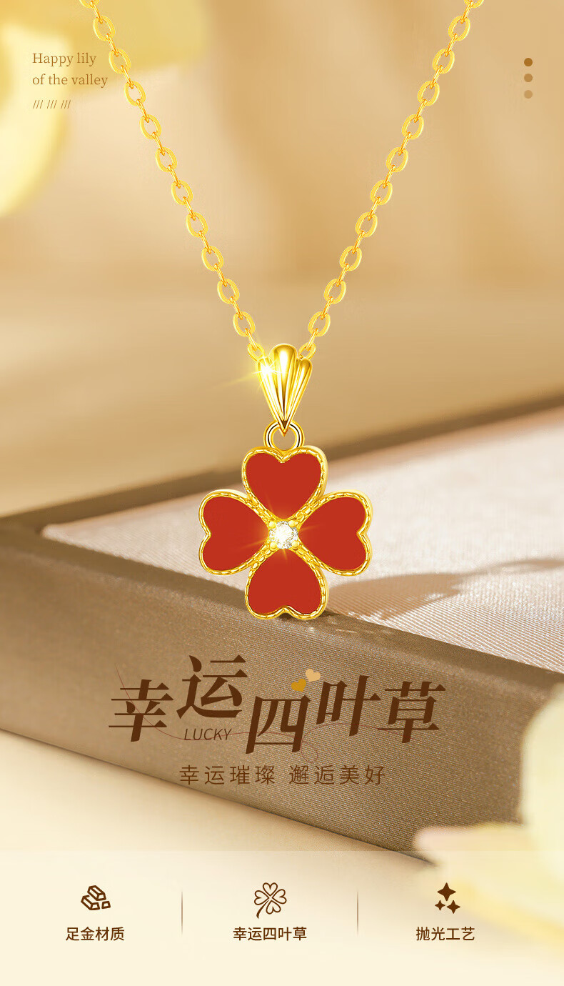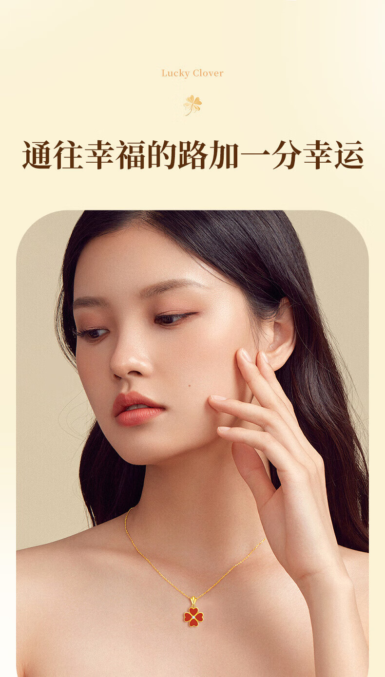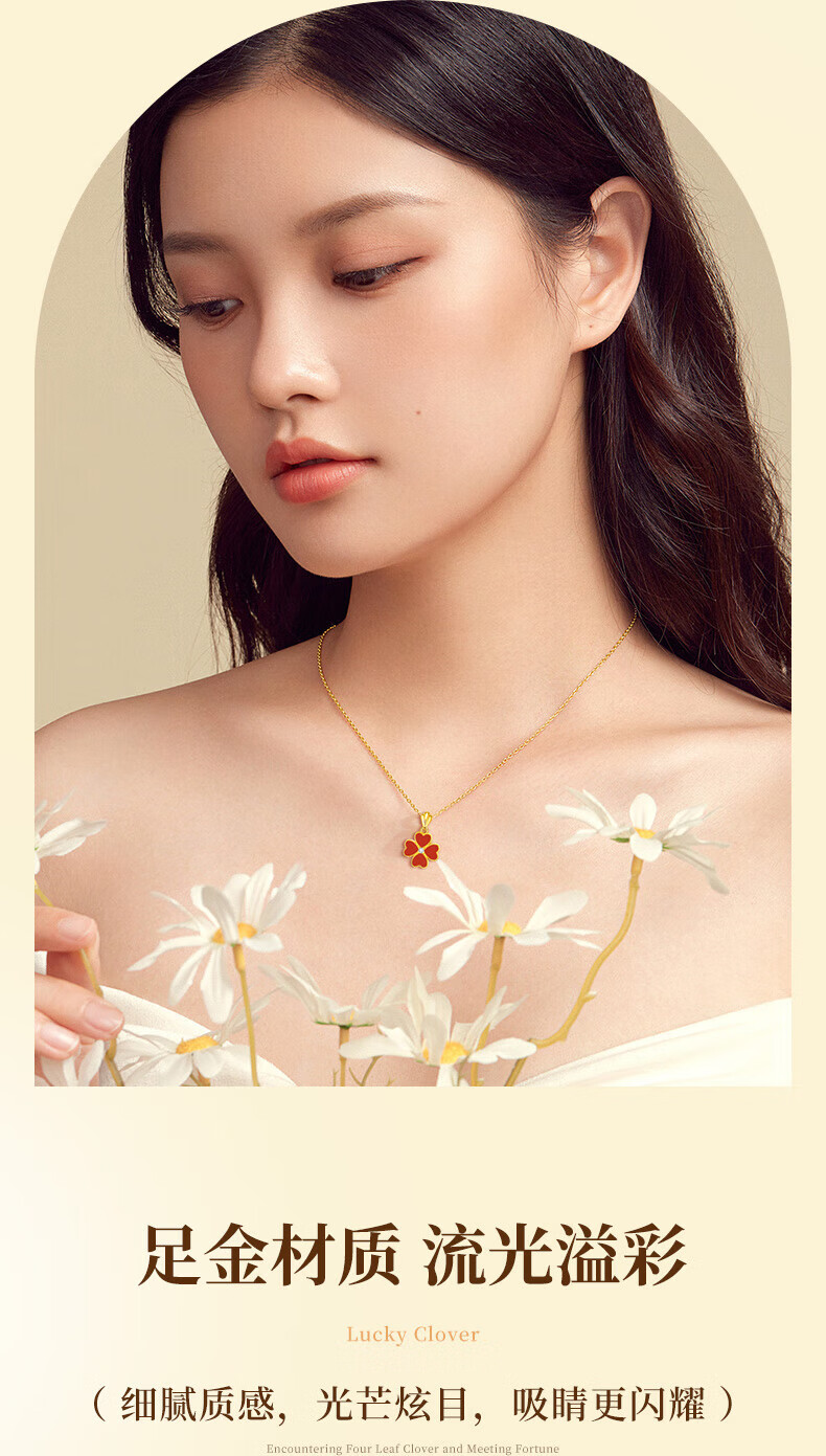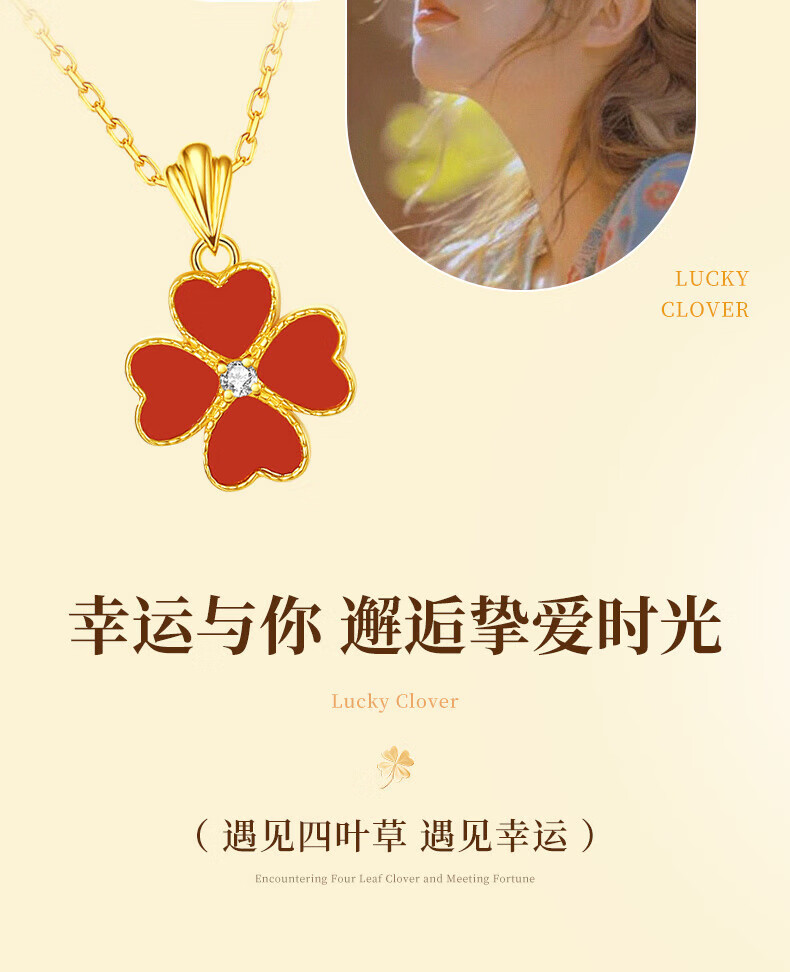 CHINA GOLD Four-leaf clover gold necklace women's pure gold pendant birthday gift for girlfriend and wife wedding anniversary heart-warming and practical pure gold four-leaf clover red agate pendant + K gold chain
