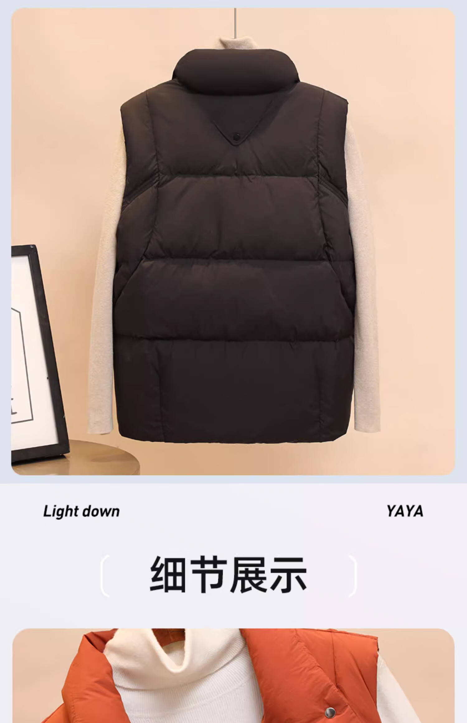 Ducky Short Down Vest Women's 2025 Autumn and Winter New Warm Winter Fashionable Waistcoat Outer Vest Women's Jacket Black M