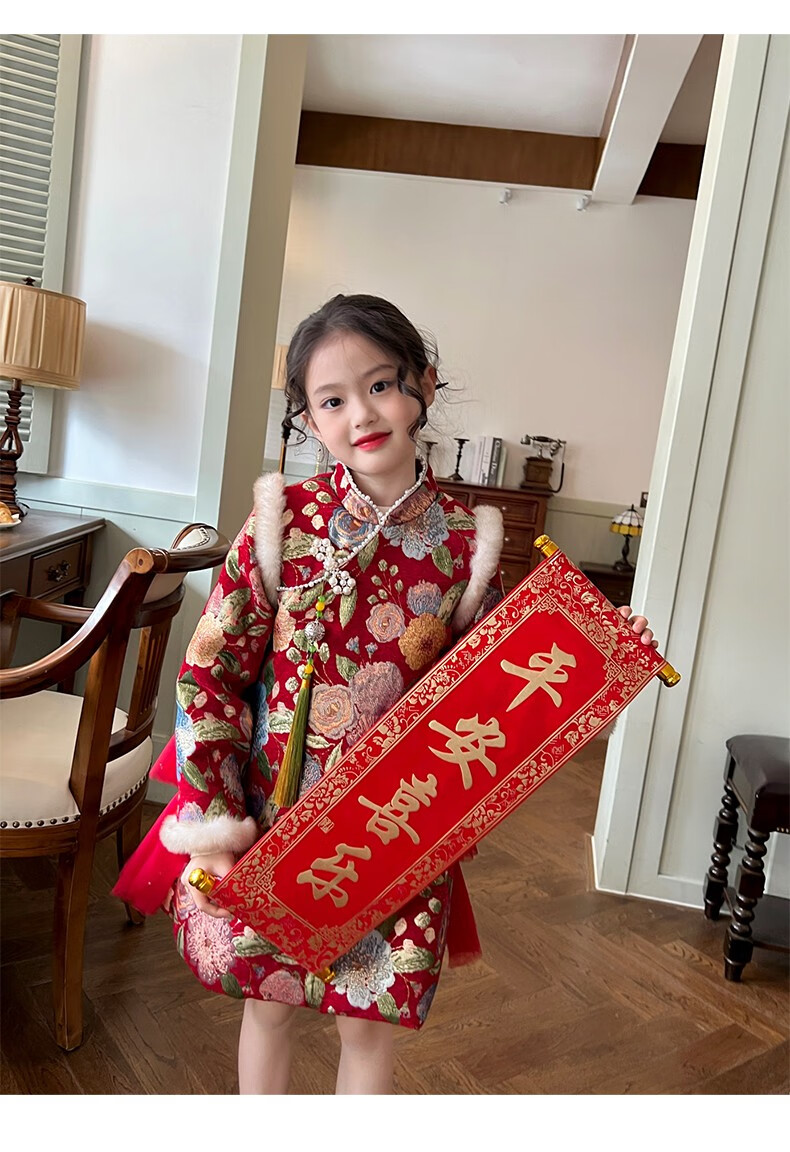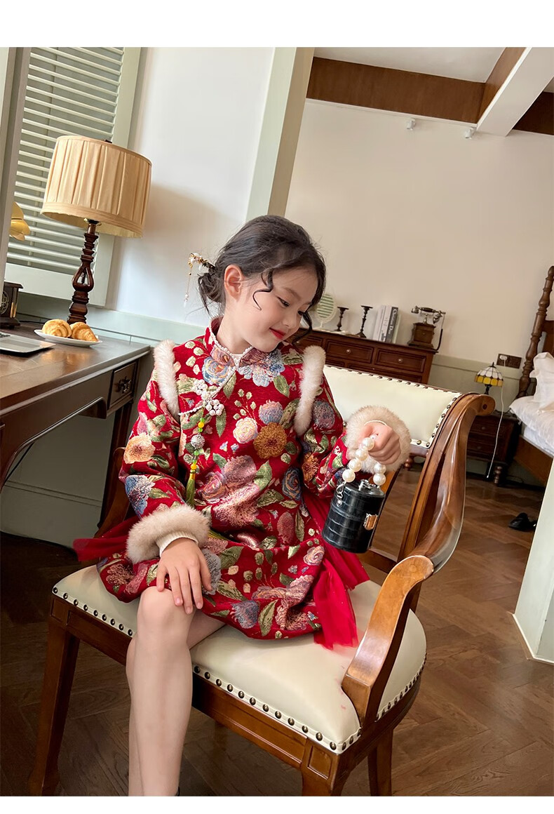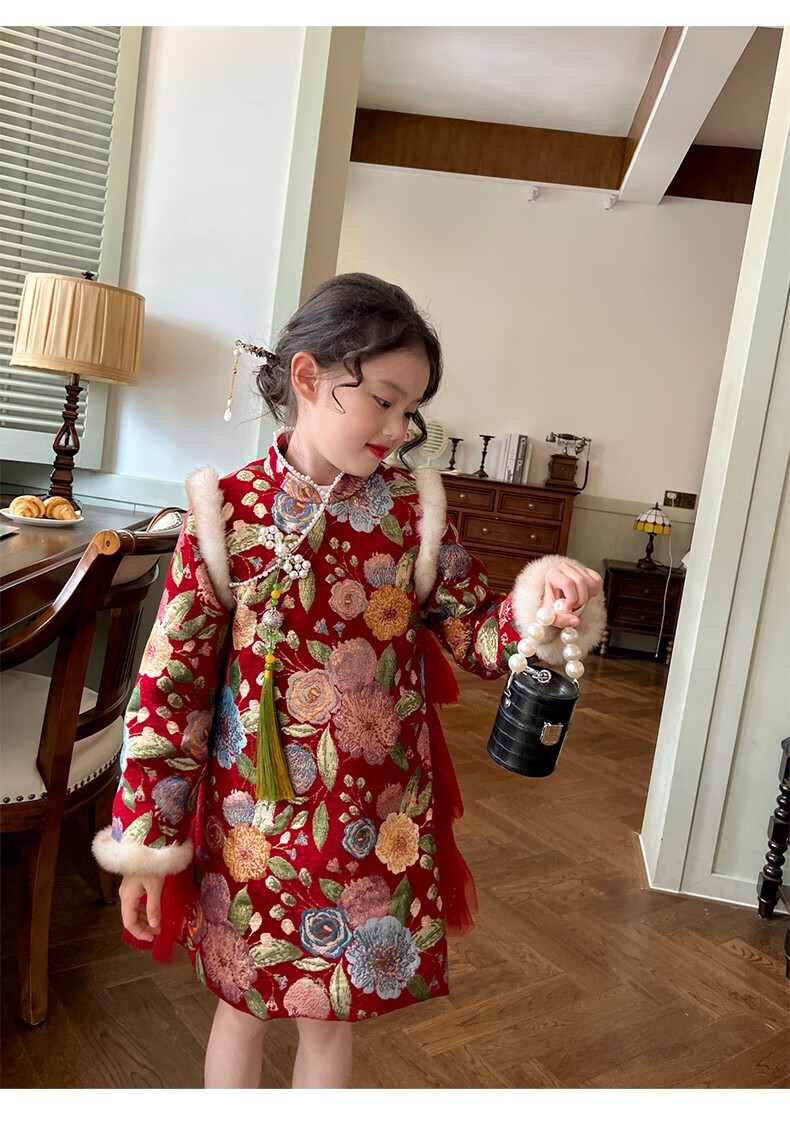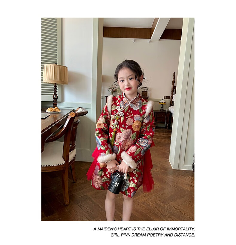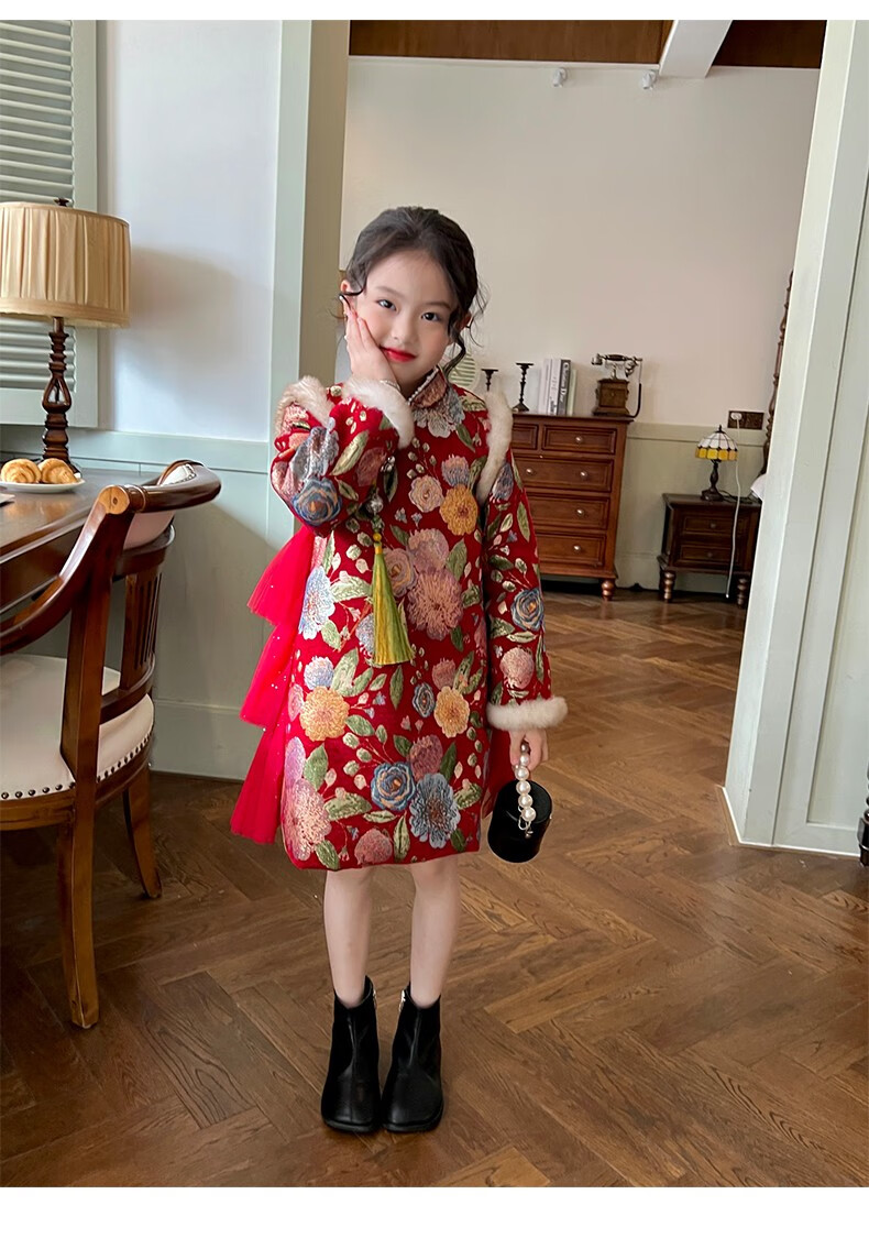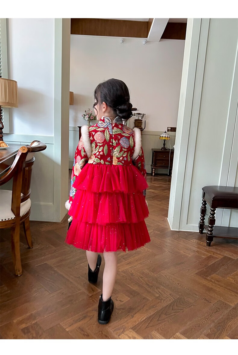 Gardenia's Growth Notes Children's Clothes Girls' Red New Year's Clothes Children's Baby New Year's Dress Velvet New Year's Eve Clothes Red Velvet Dress 130