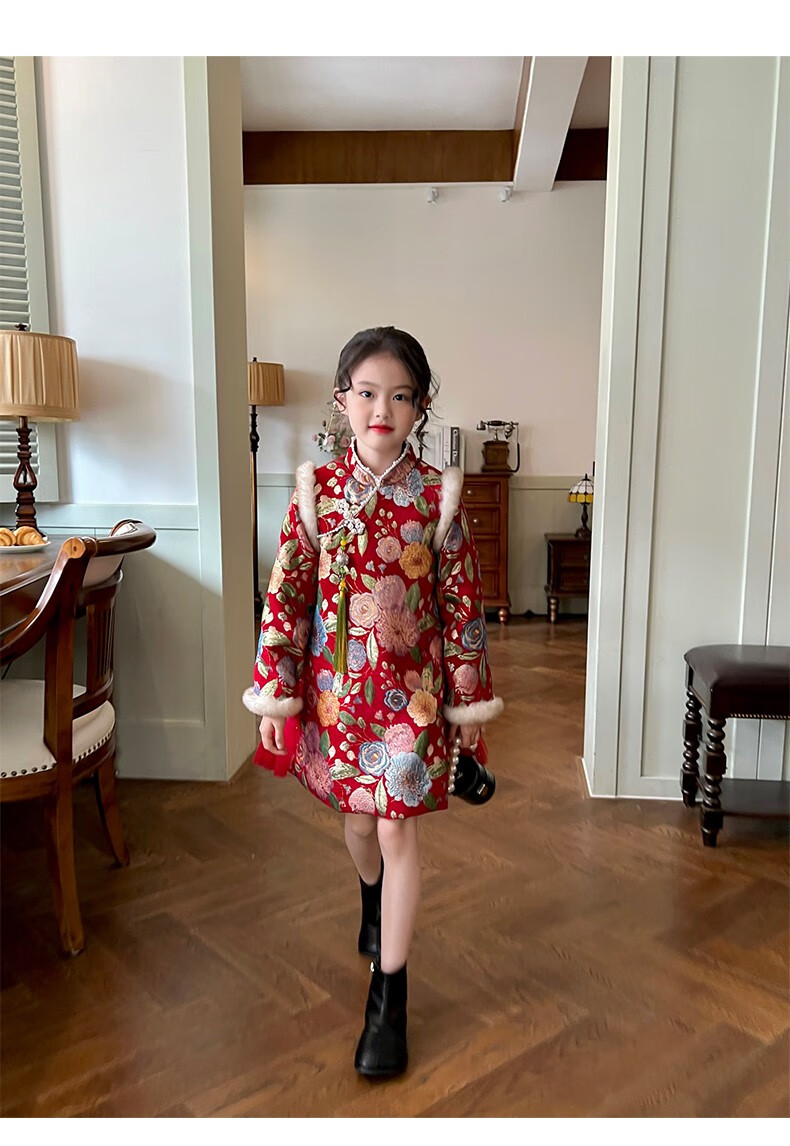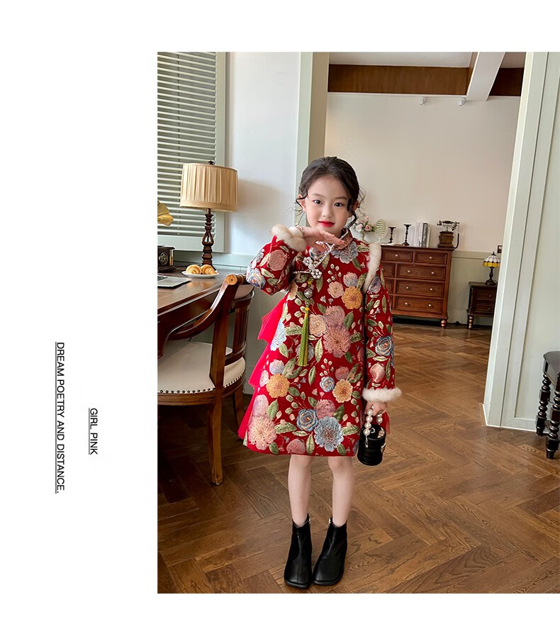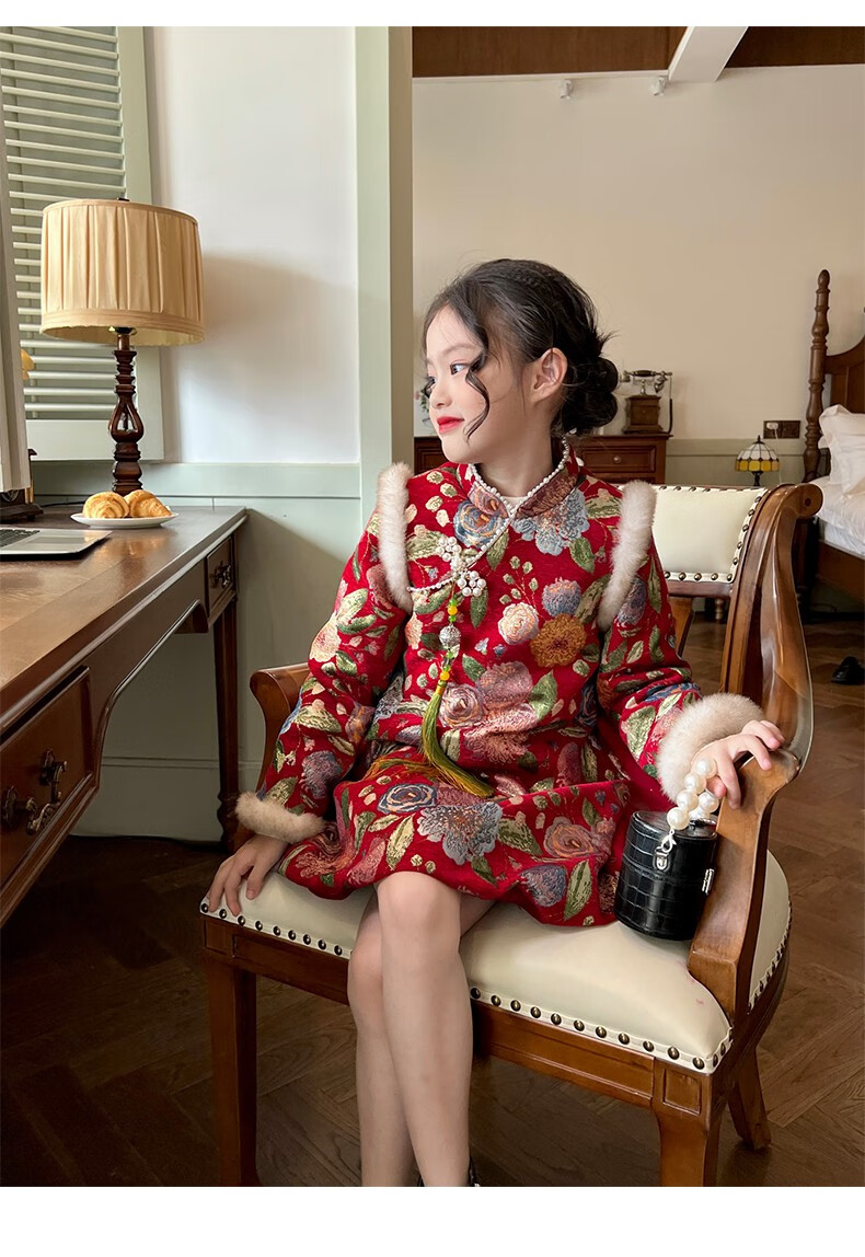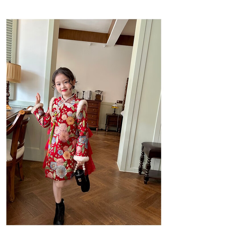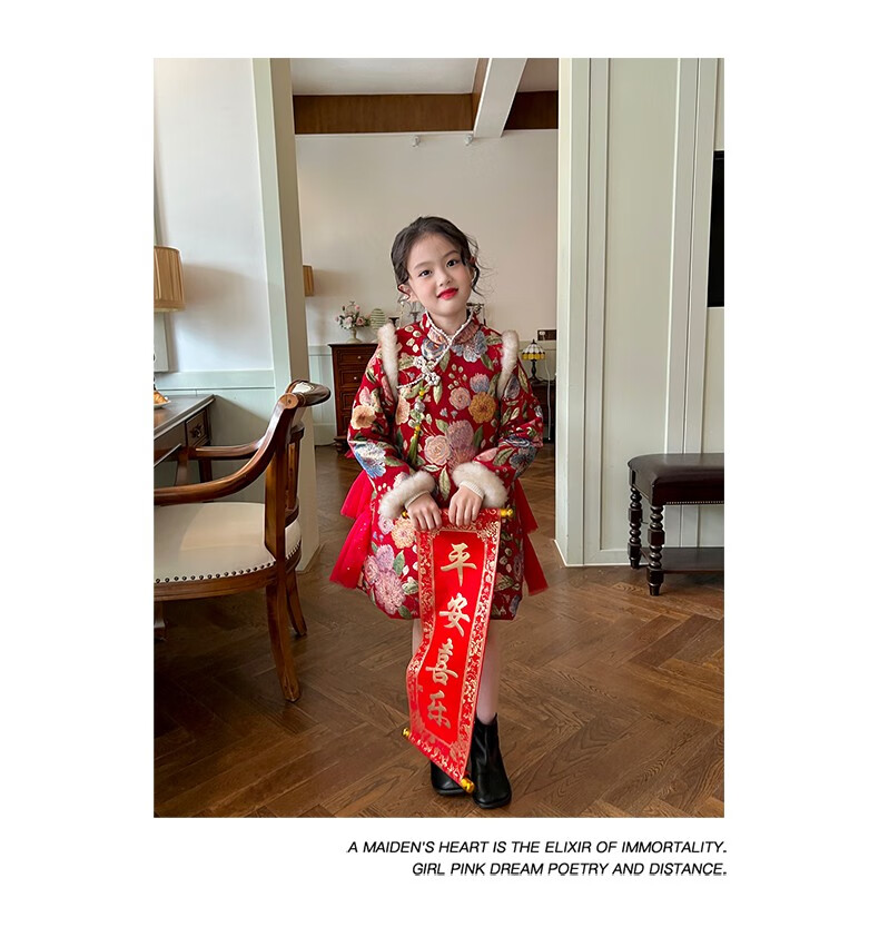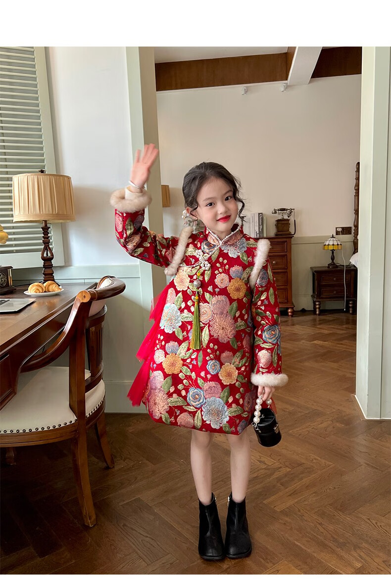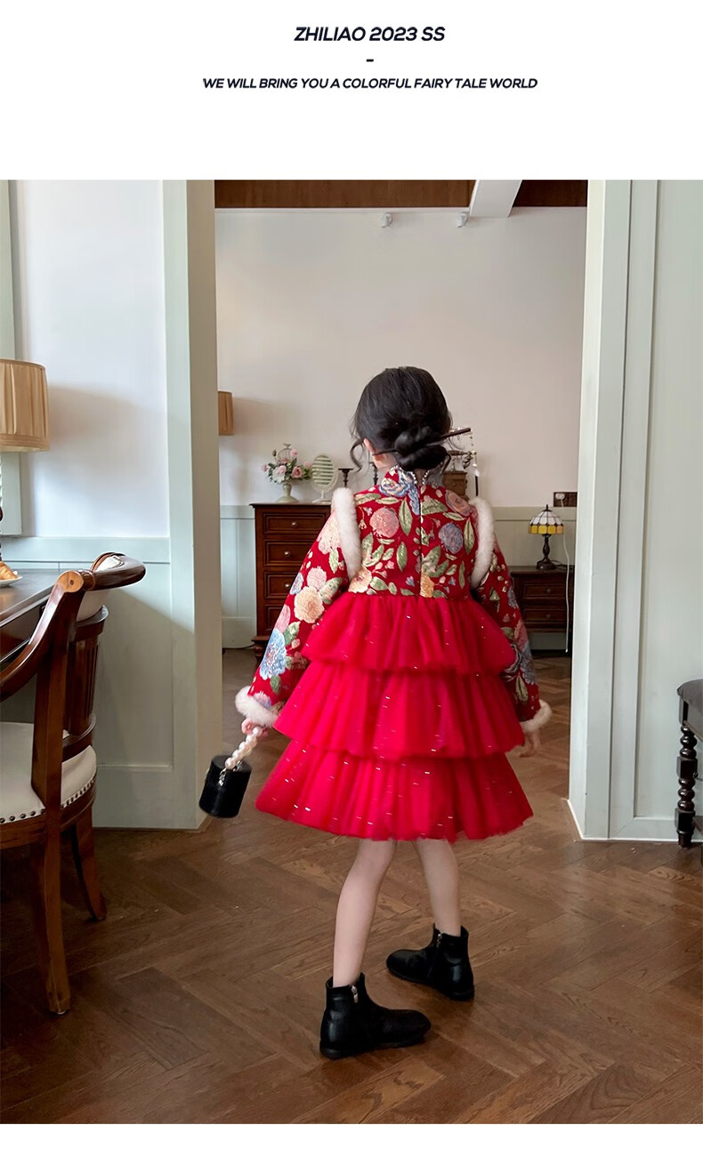 Gardenia's Growth Notes Children's Clothes Girls' Red New Year's Clothes Children's Baby New Year's Dress Velvet New Year's Eve Clothes Red Velvet Dress 130