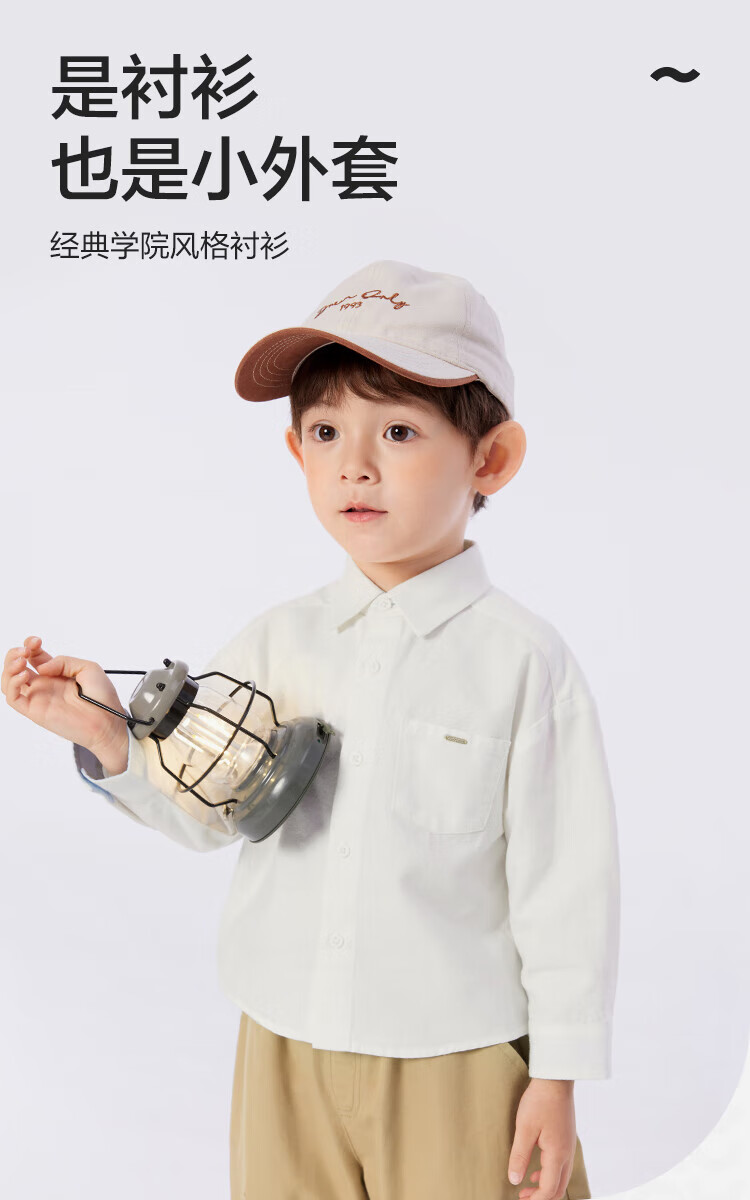 Balabala children's clothing children's boys long-sleeved shirt pure cotton children's top spring college fashion versatile shirt blue tone 00488 100