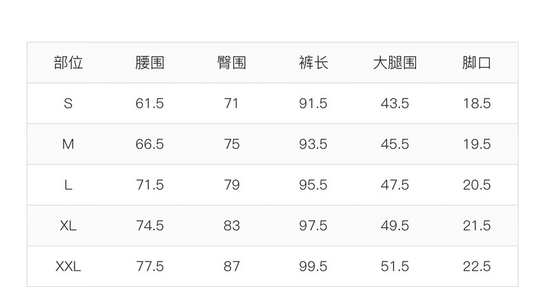 Outseam (cm) 99 cm 101.5 cm 104 cm 106.5 cm 109 cm