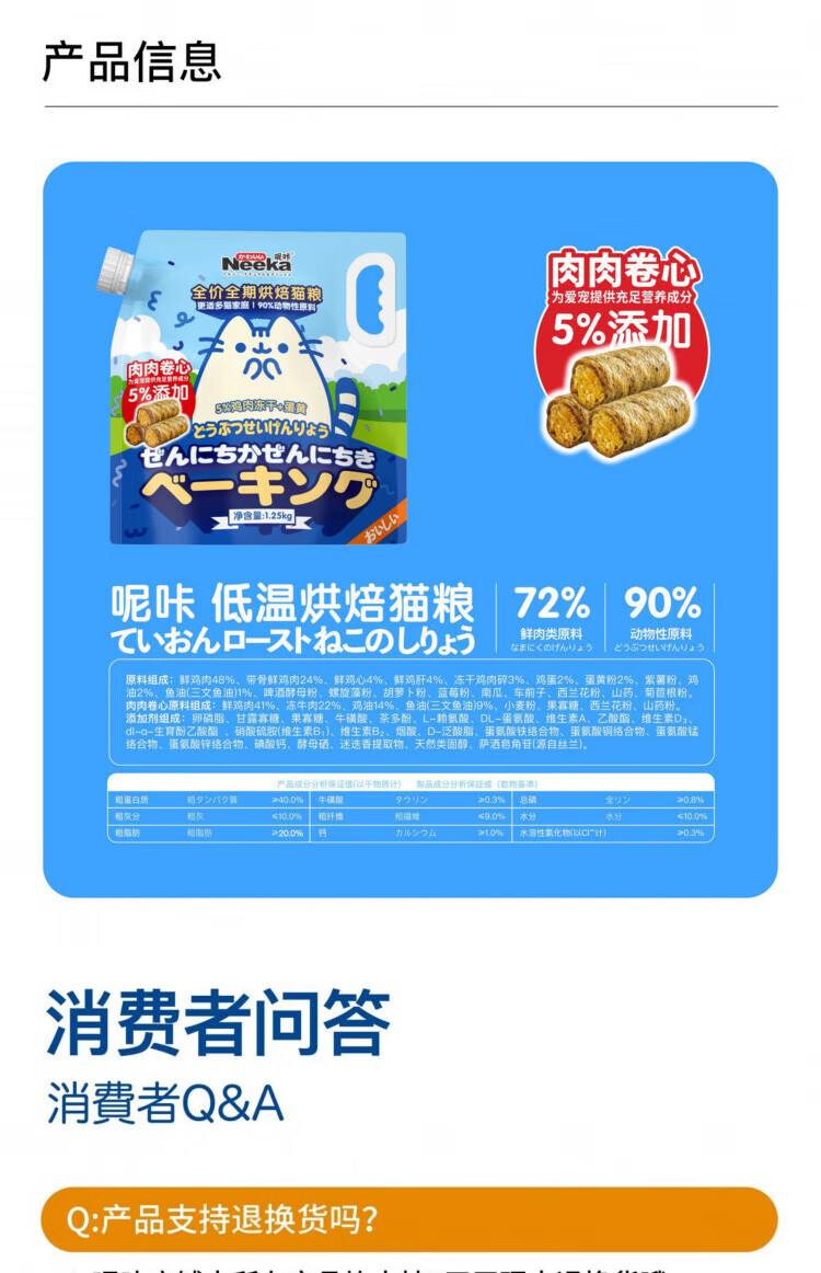 Nika Baked Cat Food Full Price All Stages Adult Cats and Kittens Full Stage Universal Fresh Meat Nutritional High Protein Cat Main Food Meat Roll Baked Food 1.25kg
