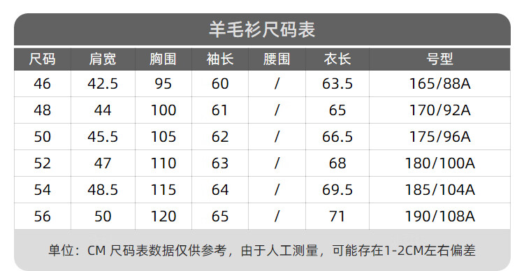 Size (cm) 42 44 46 48 50