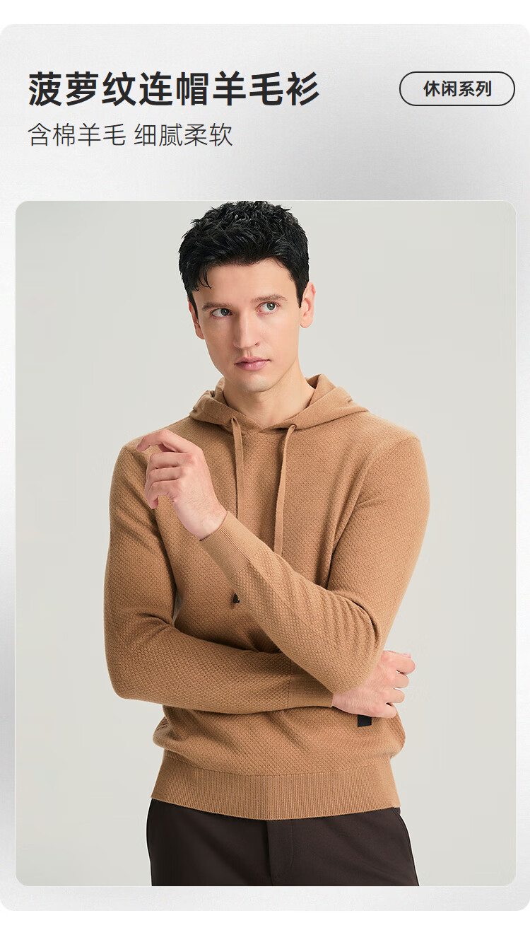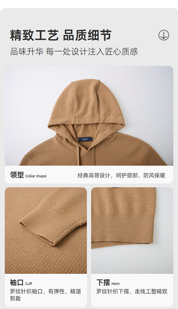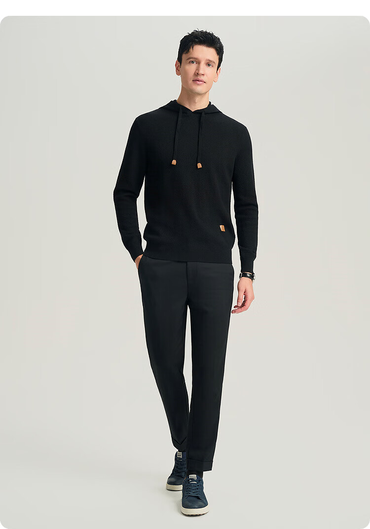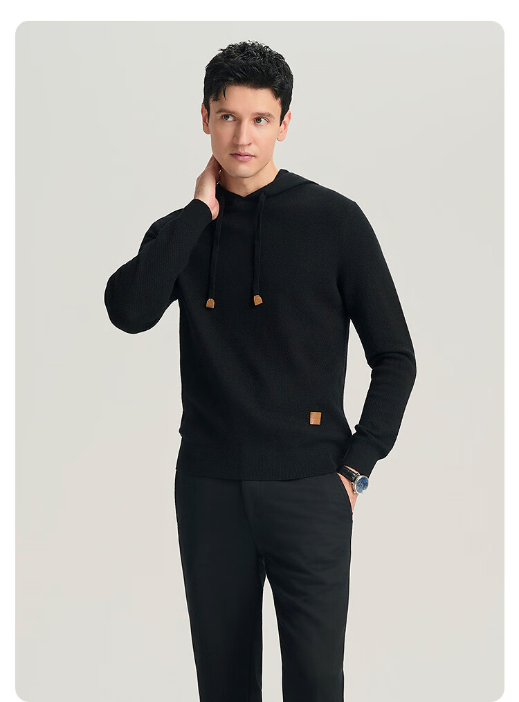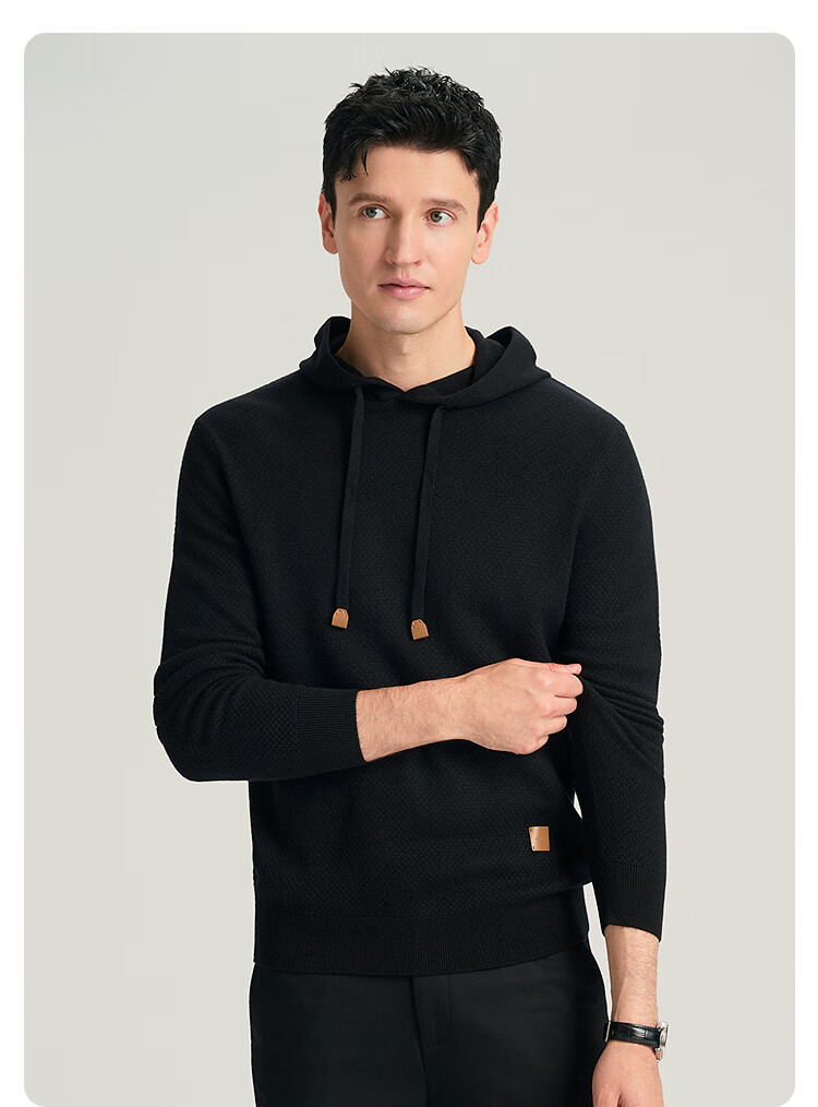 JODOLL Pineapple Pattern Hooded Sweatshirt Men's Daily Stretch Warm Sweater Casual Soft Knitted Wool Sweater Black L 50