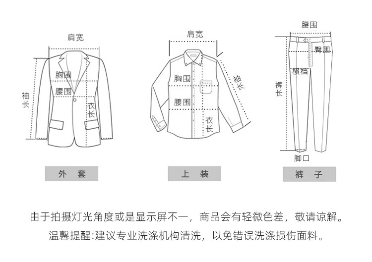 China (cm) 165 / 88-90 170 / 96-98 175 / 108-110 180 / 118-122 185 / 126-130