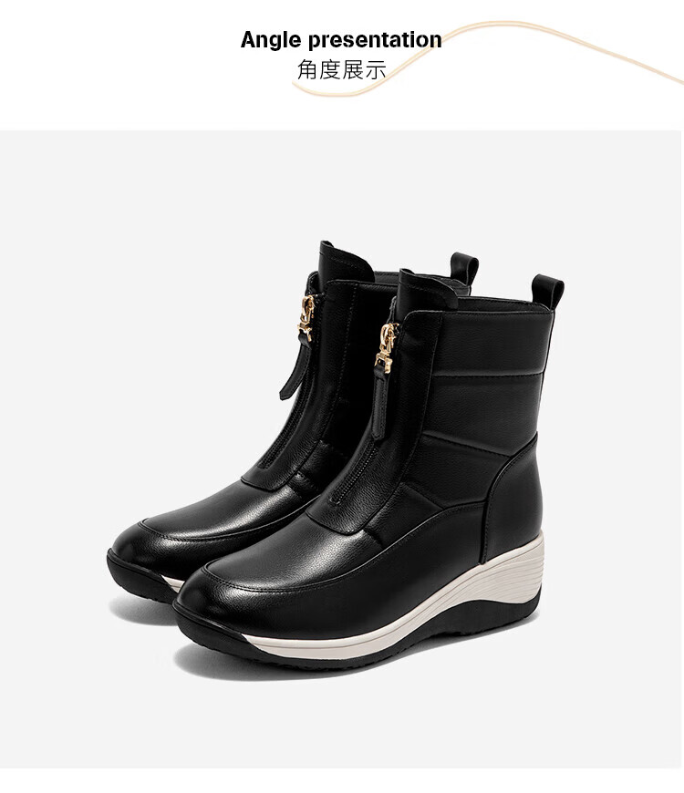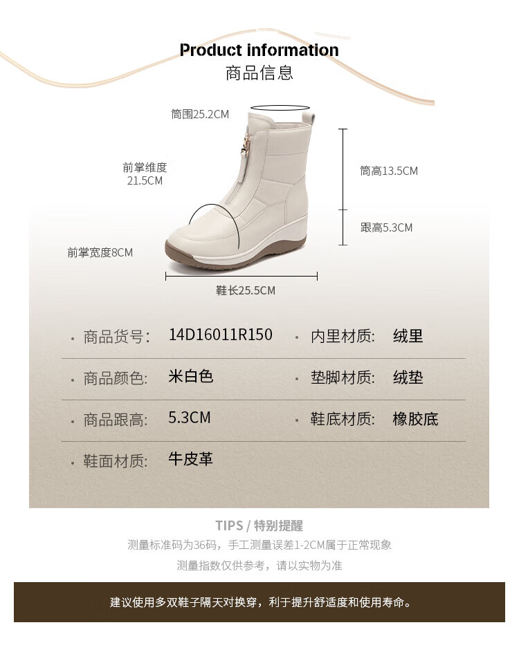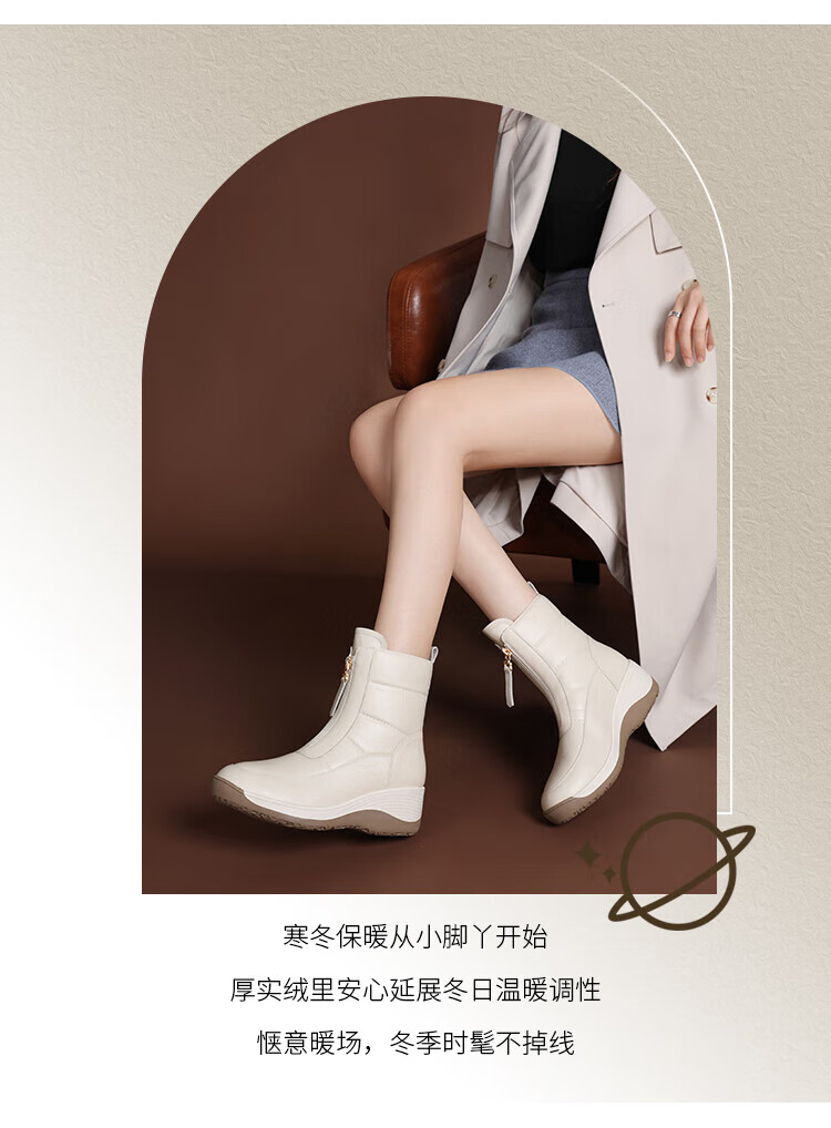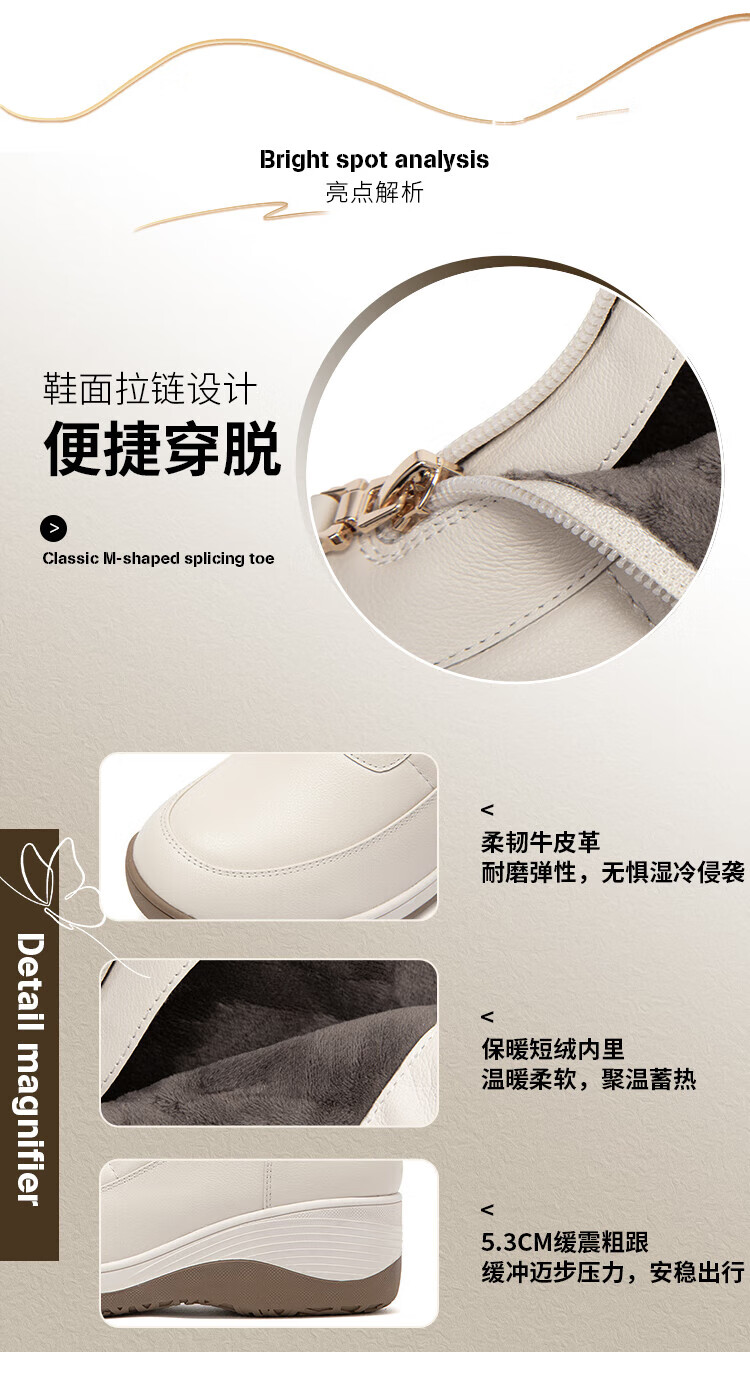 SATCHI plush optional cowhide winter snow boots warm outdoor boots cotton boots wedge heel short boots women's shoes white thick velvet (14D16011RH150) plus velvet 36