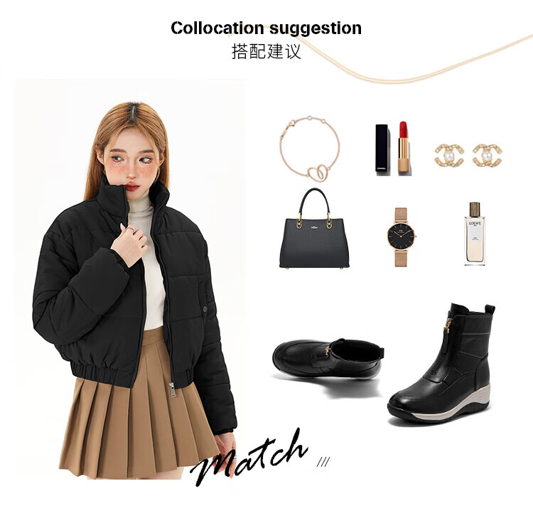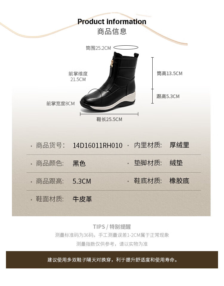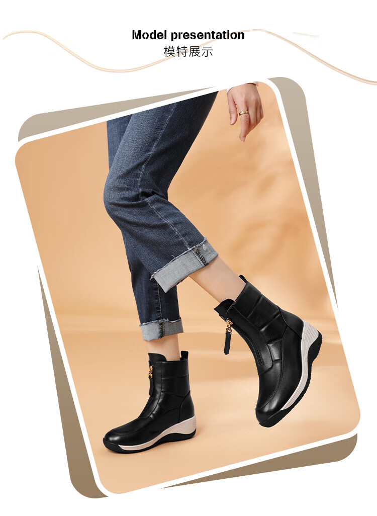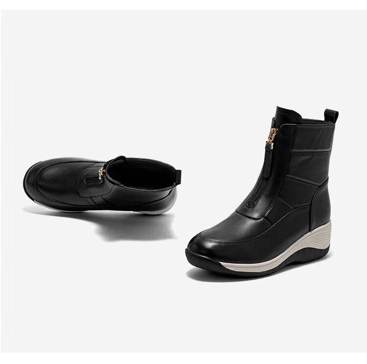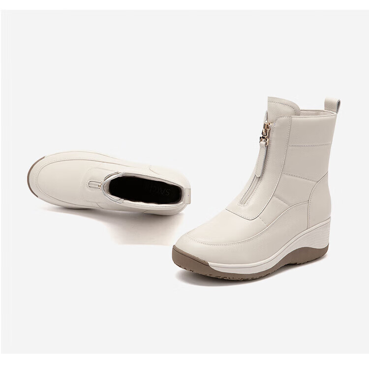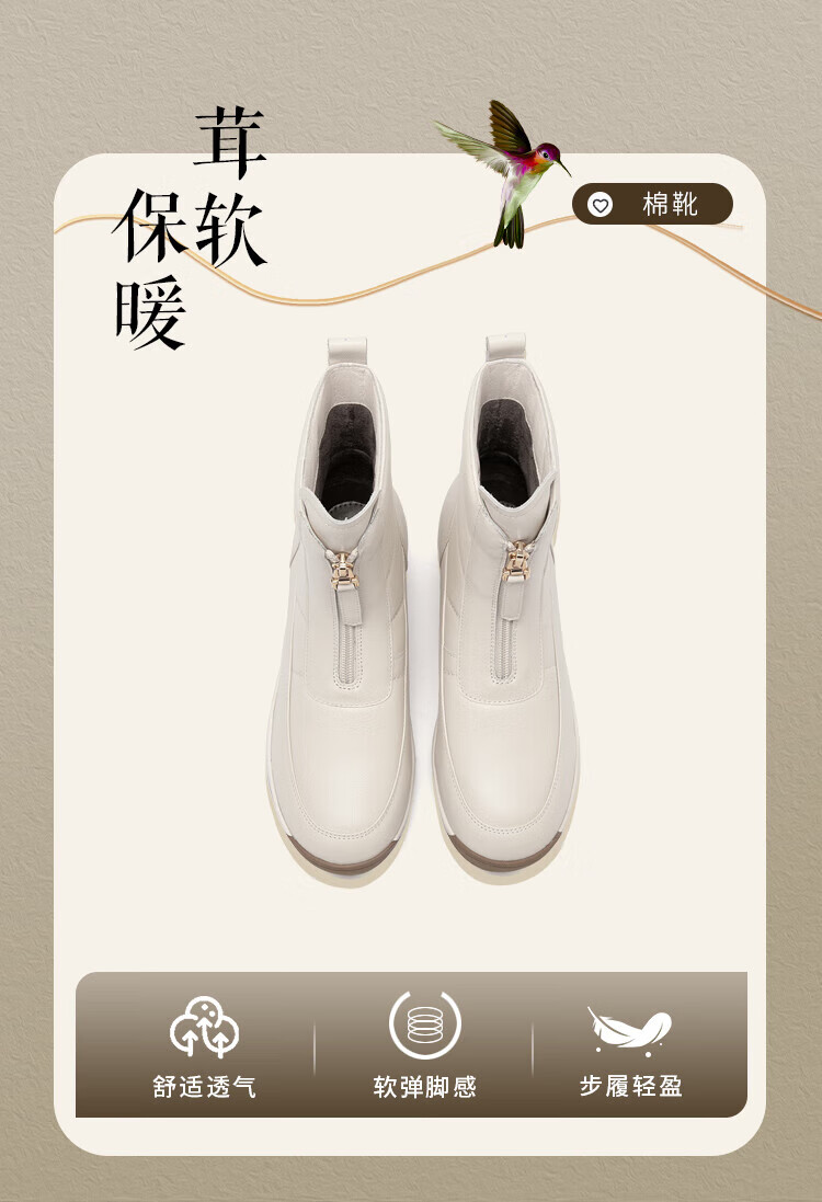 SATCHI plush optional cowhide winter snow boots warm outdoor boots cotton boots wedge heel short boots women's shoes white thick velvet (14D16011RH150) plus velvet 36
