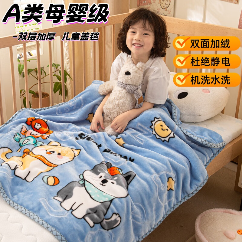 Double-layer thickened Raschel blanket, children's blanket, kindergarten lunch nap blanket, small blanket, office leggings and shawl blanket, Shiba Inu Paradise-Blue Gray Category A Maternal and Infant Grade 100*120cm Category A Children's Blanket