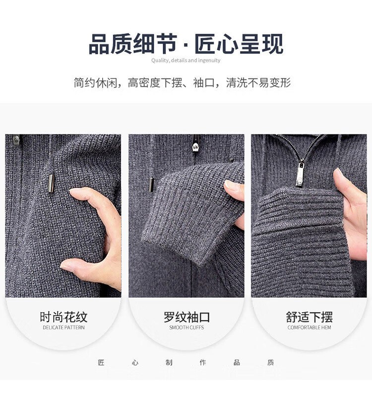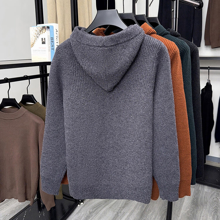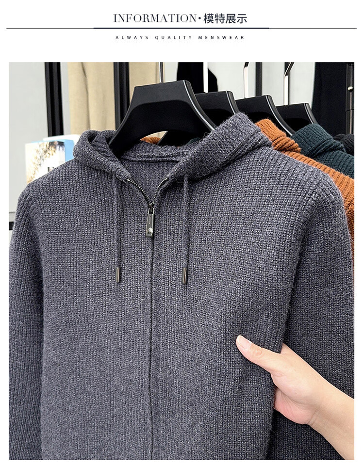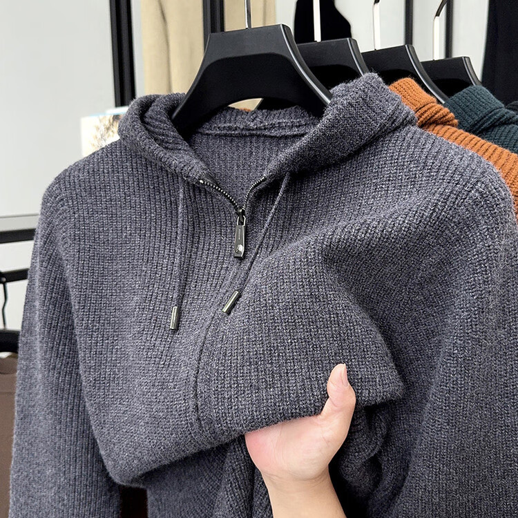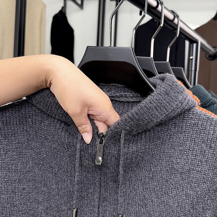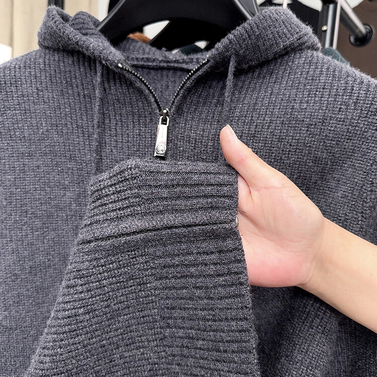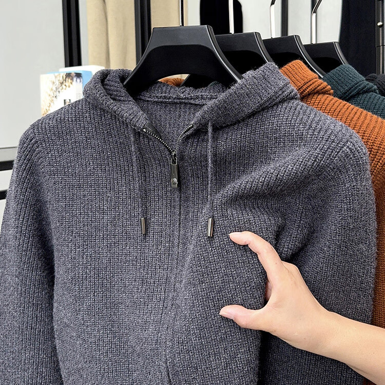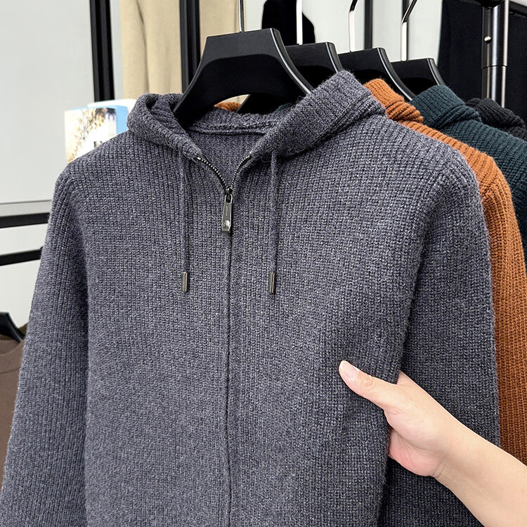 Pierre Cardin hooded wool cardigan jacket men's autumn and winter new thick needle thick zipper sweater for young and middle-aged men's sweater 2591 gray M 105 recommended 90-120Jin Jin equals 0.5 kg to wear