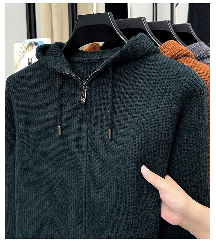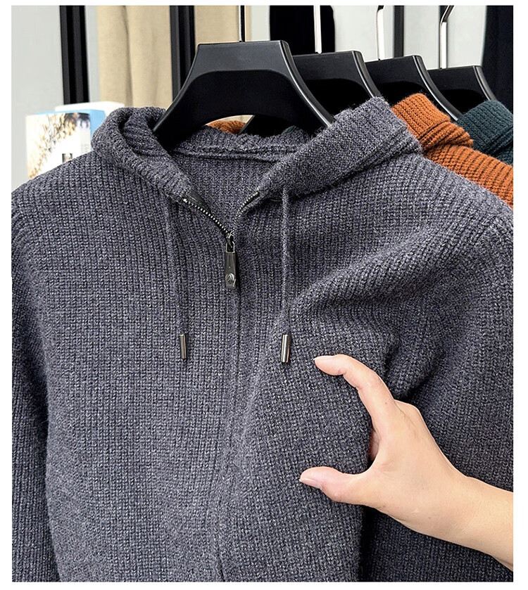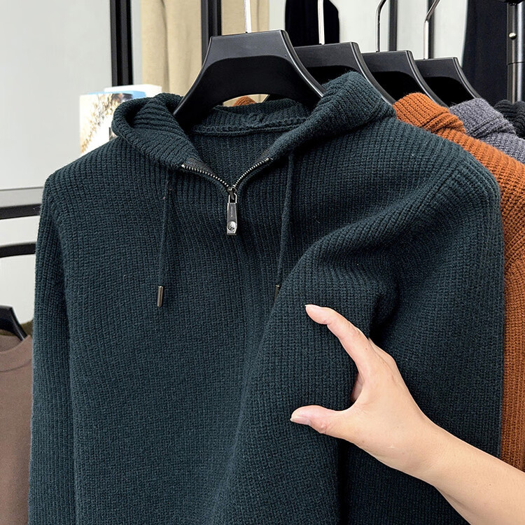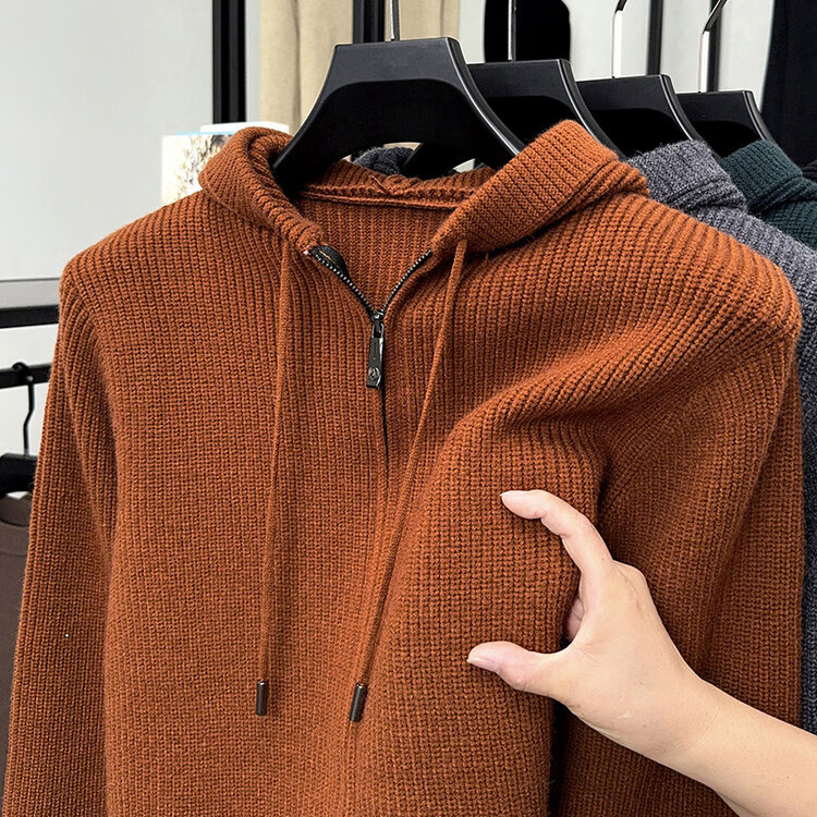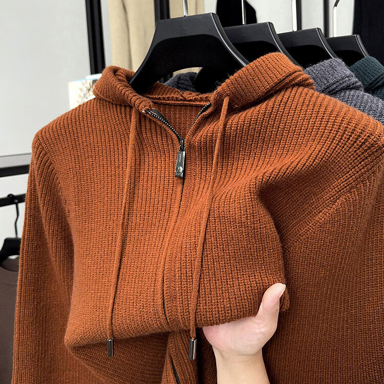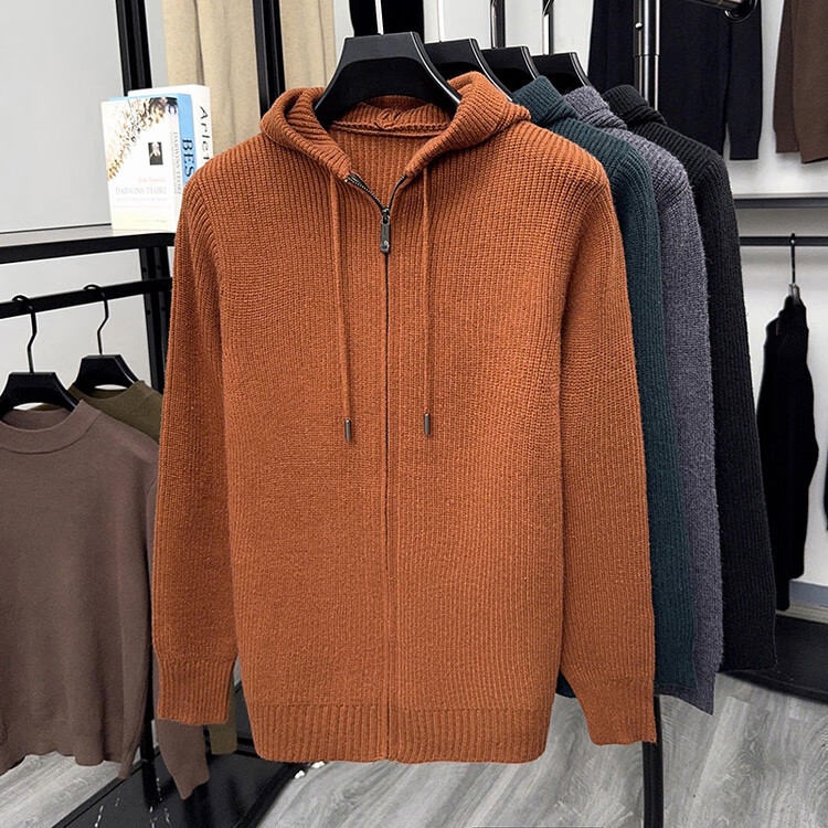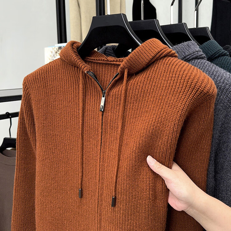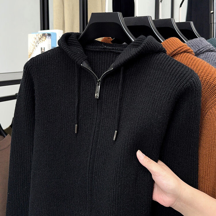 Pierre Cardin hooded wool cardigan jacket men's autumn and winter new thick needle thick zipper sweater for young and middle-aged men's sweater 2591 gray M 105 recommended 90-120Jin Jin equals 0.5 kg to wear