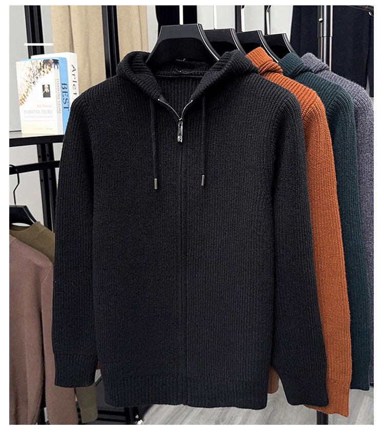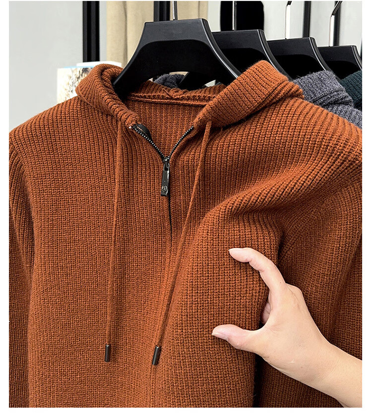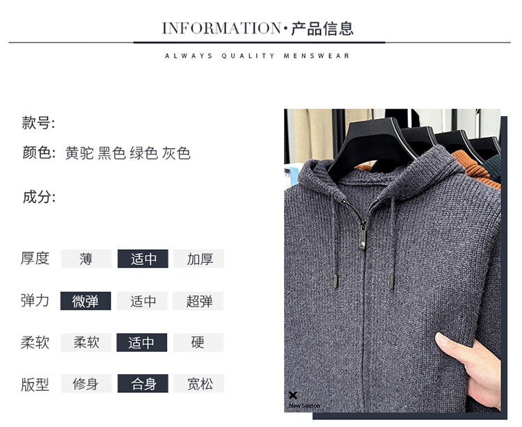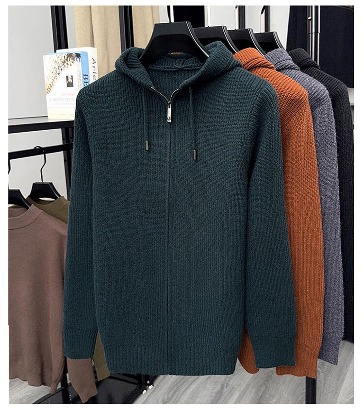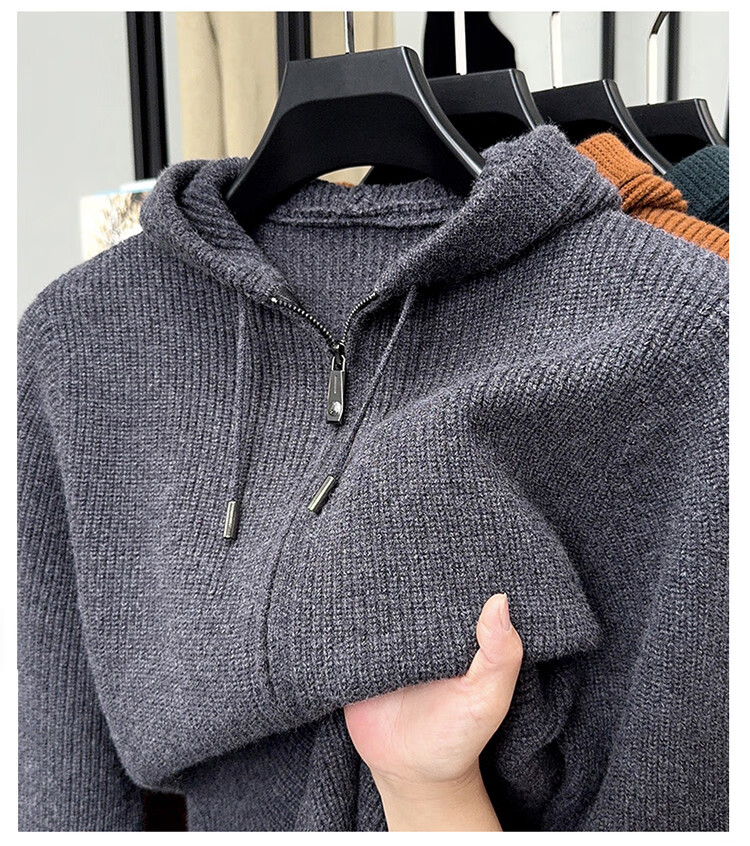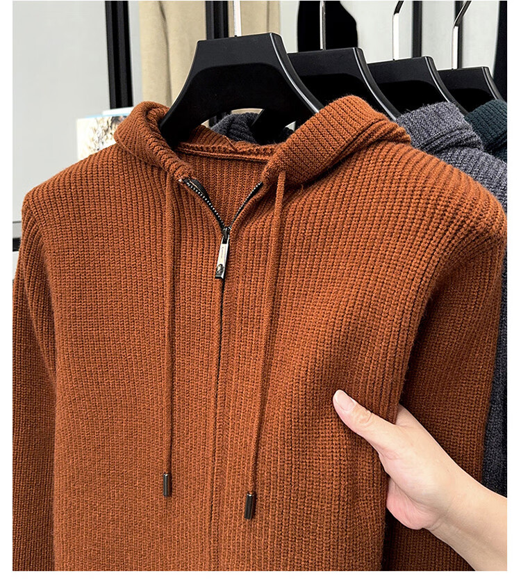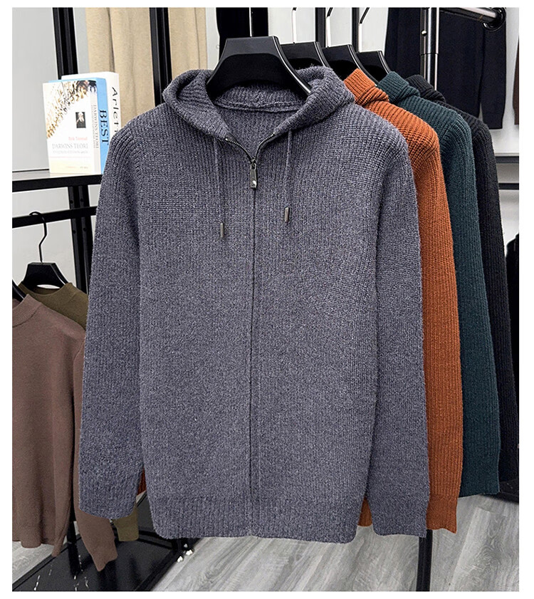 Pierre Cardin hooded wool cardigan jacket men's autumn and winter new thick needle thick zipper sweater for young and middle-aged men's sweater 2591 gray M 105 recommended 90-120Jin Jin equals 0.5 kg to wear