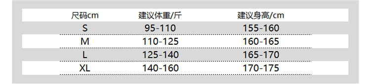 China (cm) 165 / 88-90 170 / 96-98 175 / 108-110 180 / 118-122 185 / 126-130