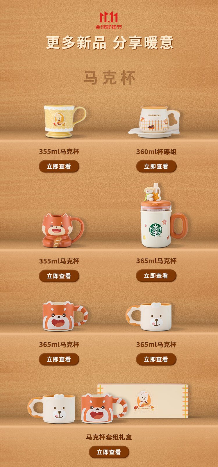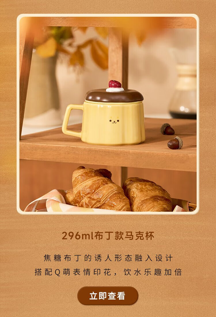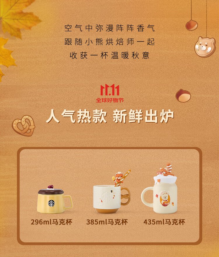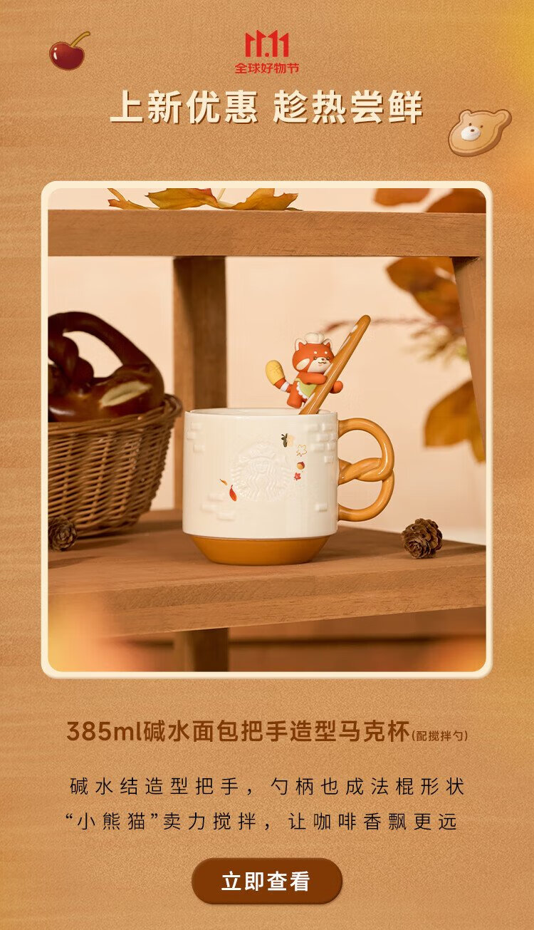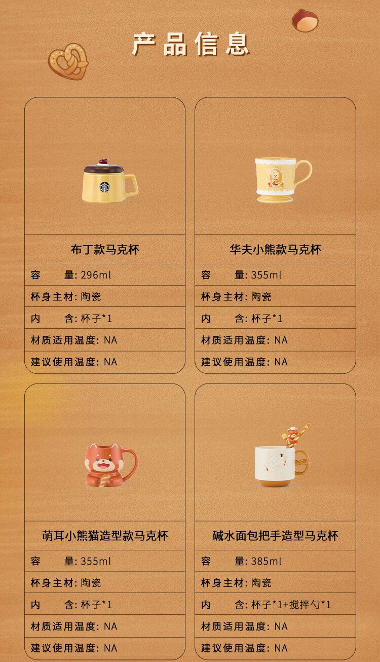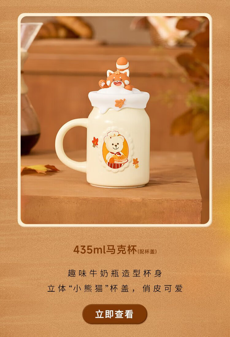 Starbucks Cup Bear Dessert House Series Ceramic Mug Desktop Water Cup Coffee Cup Gift for Men and Women Alkaline Bread Handle Mug (with Stirring Spoon) 385ml