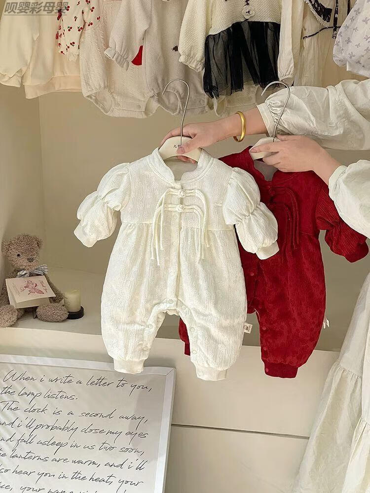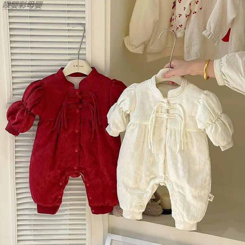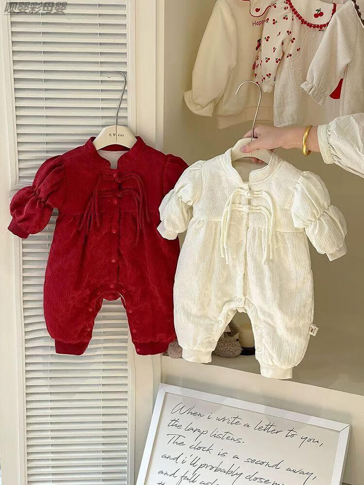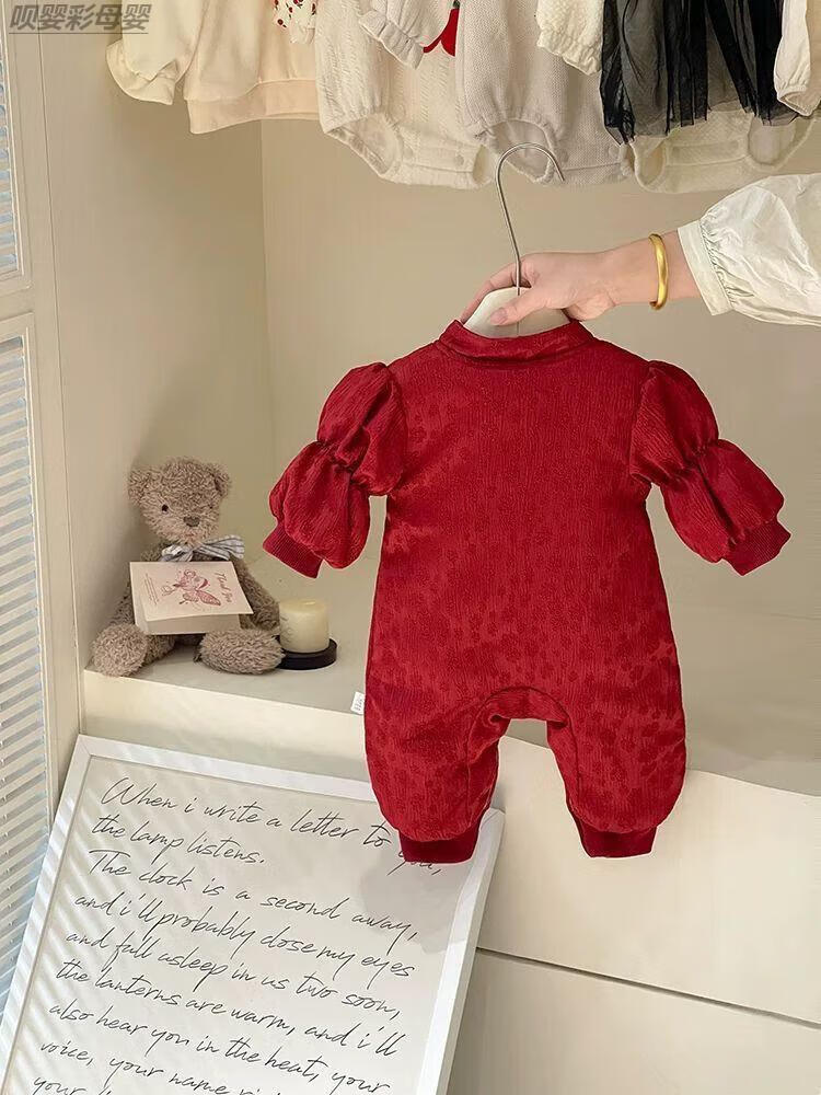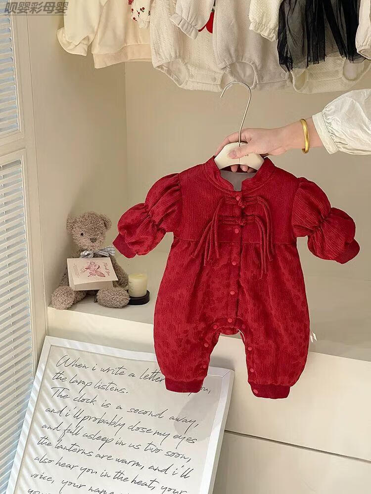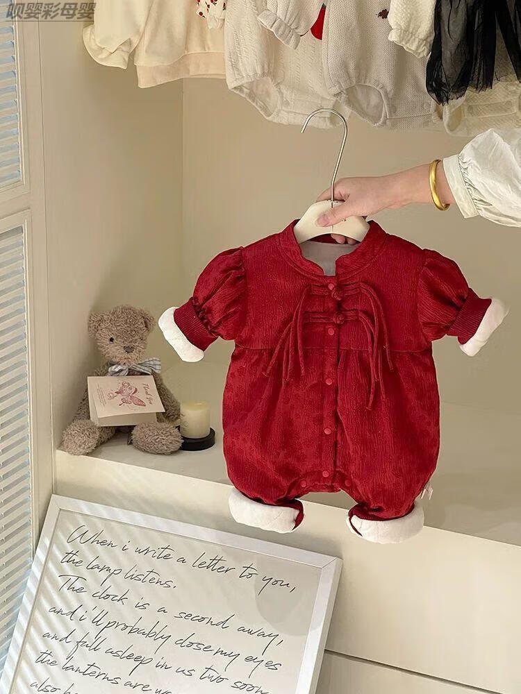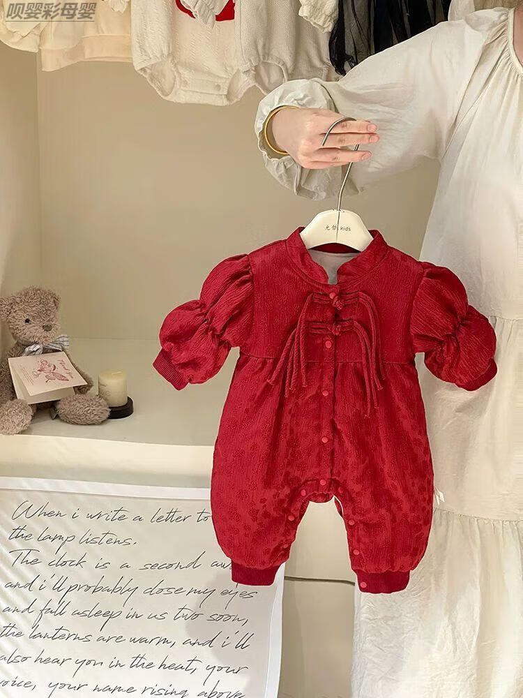 Full-month baby clothes, female princess baby clothes, velvet jumpsuit, female baby, Chinese style quilted robe, newborn red (dark colors have floating hair and floating colors, please be careful when shooting) 59cm 59