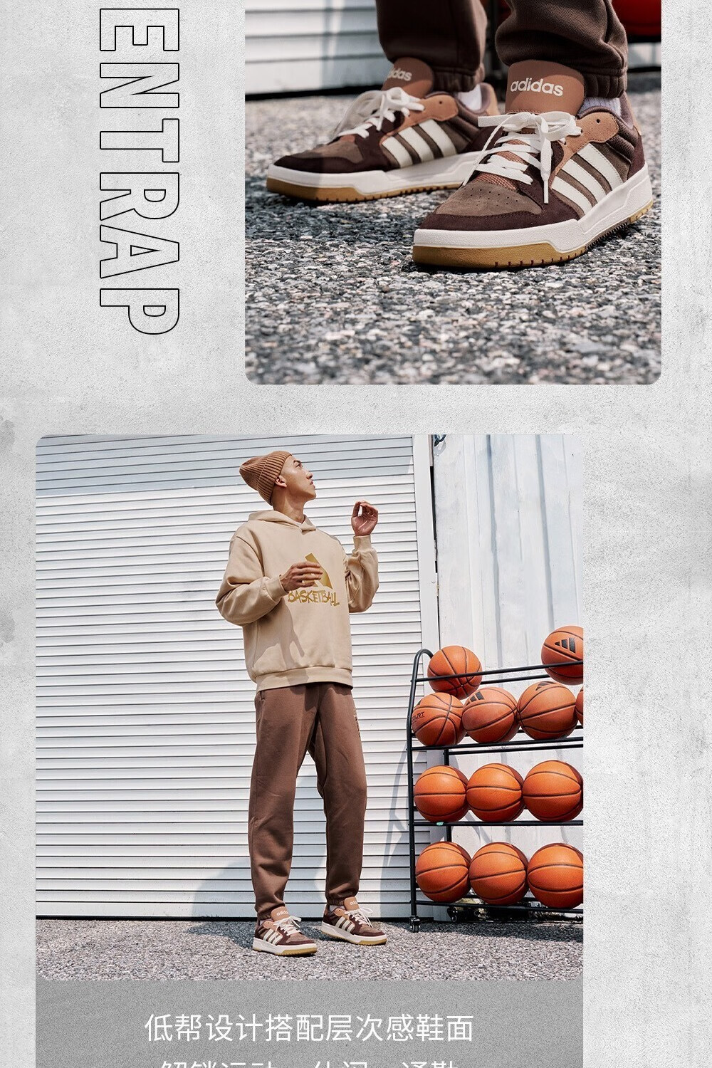 Adidas ENTRAP American campus style sports sneakers, boyish retro basketball shoes for men and women, Adidas deep earth brown/white/dark gray brown 42