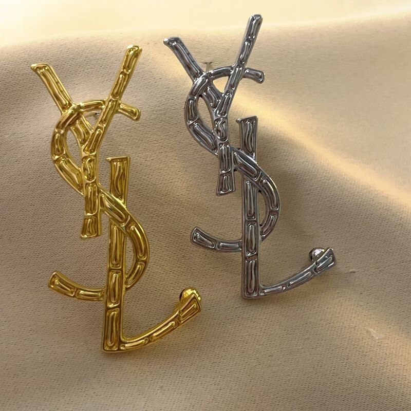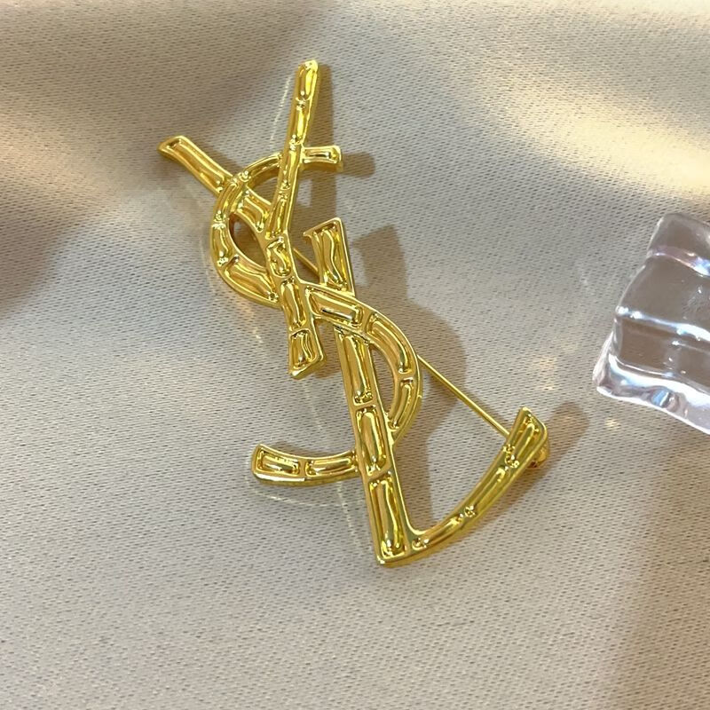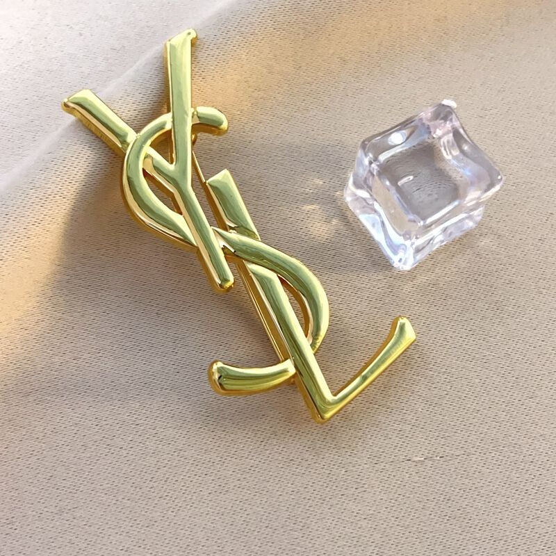 PROLIANCE letter brooch women's design niche brooch Yang Shulin suit jacket accessories brooch crystal silver high version copper alloy mirror effect (olive gold)