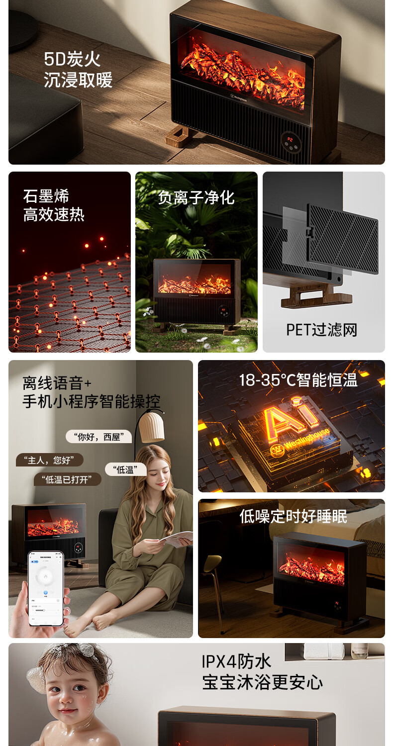 Westinghouse heater bathroom waterproof graphene heater home electric heater electric heater simulated flame fireplace yellow