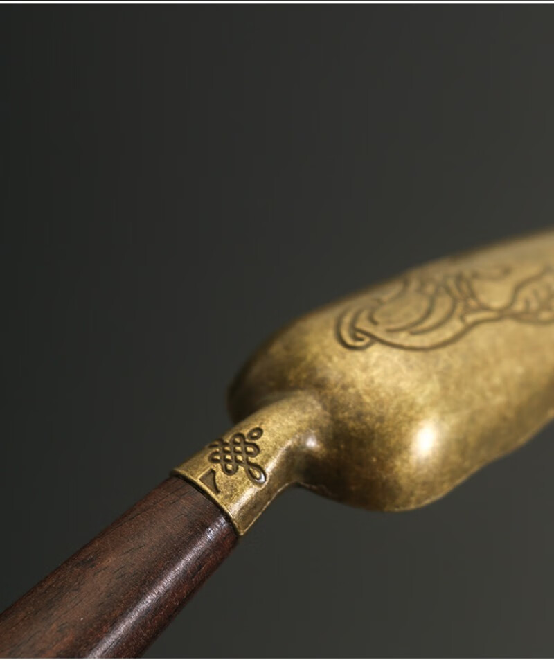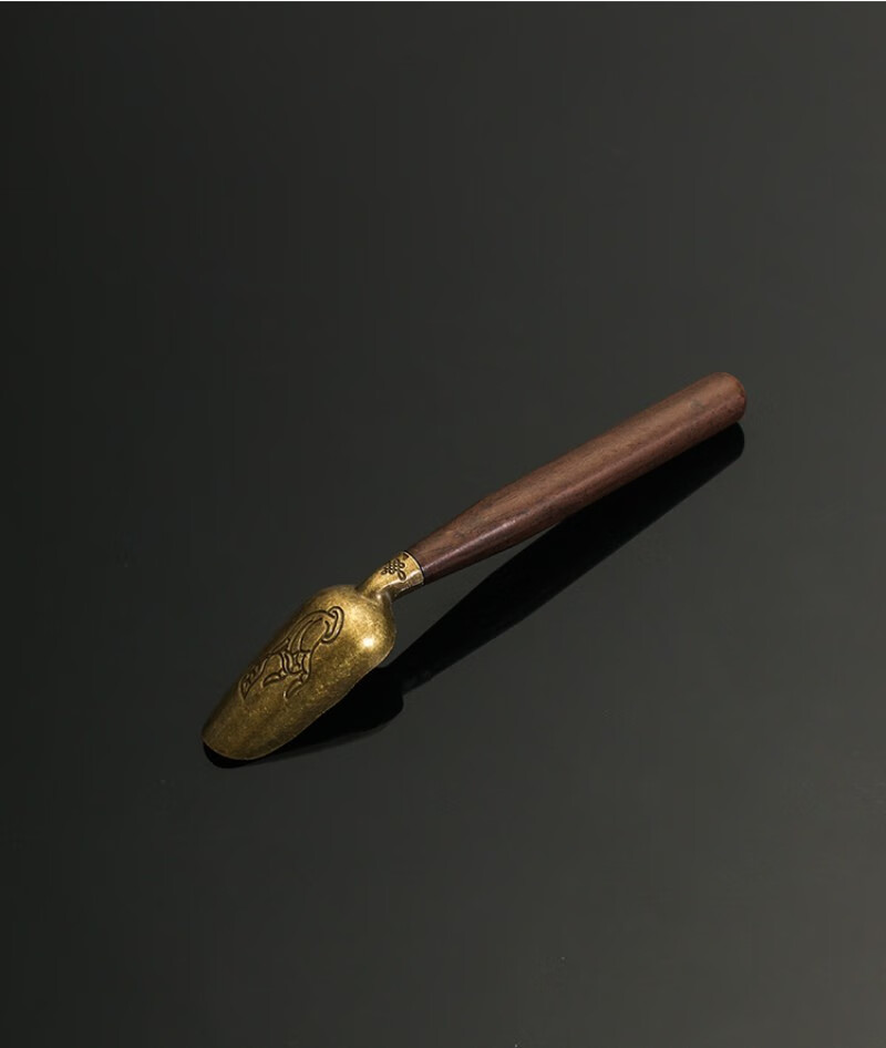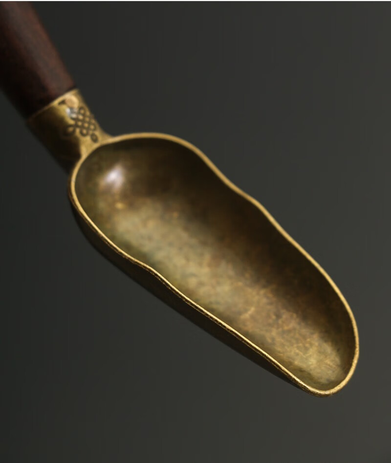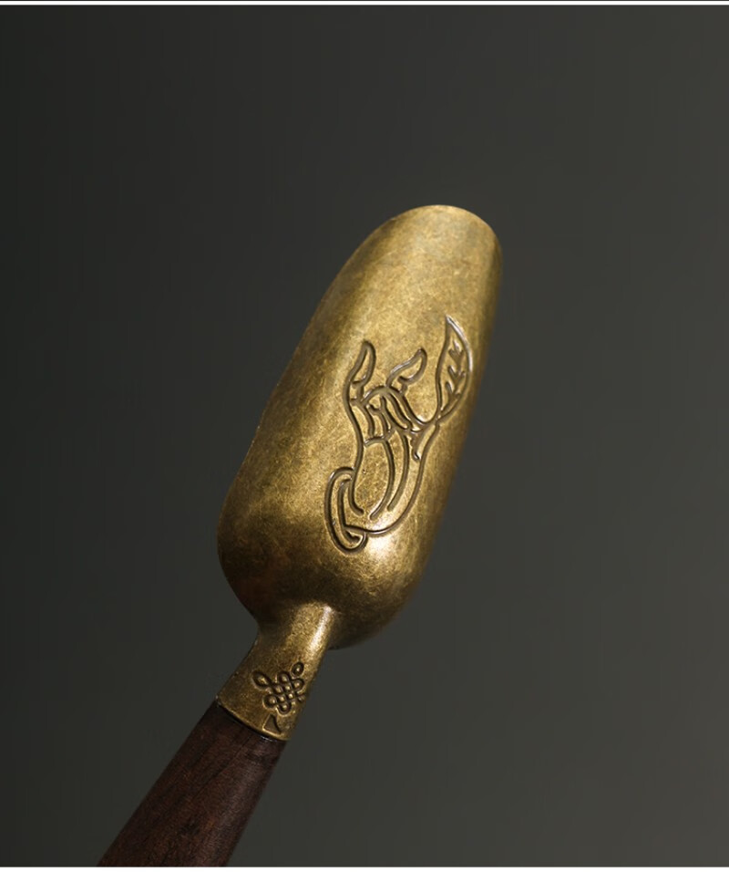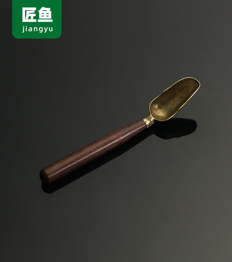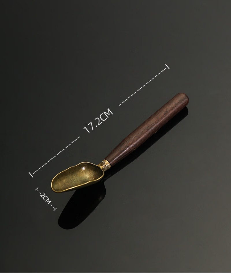 Stainless steel tea spoon brass tea shovel tea spoon long handle high-end solid wood ebony tea spoon tea set accessories tea ceremony copper-rosewood tea spoon brass