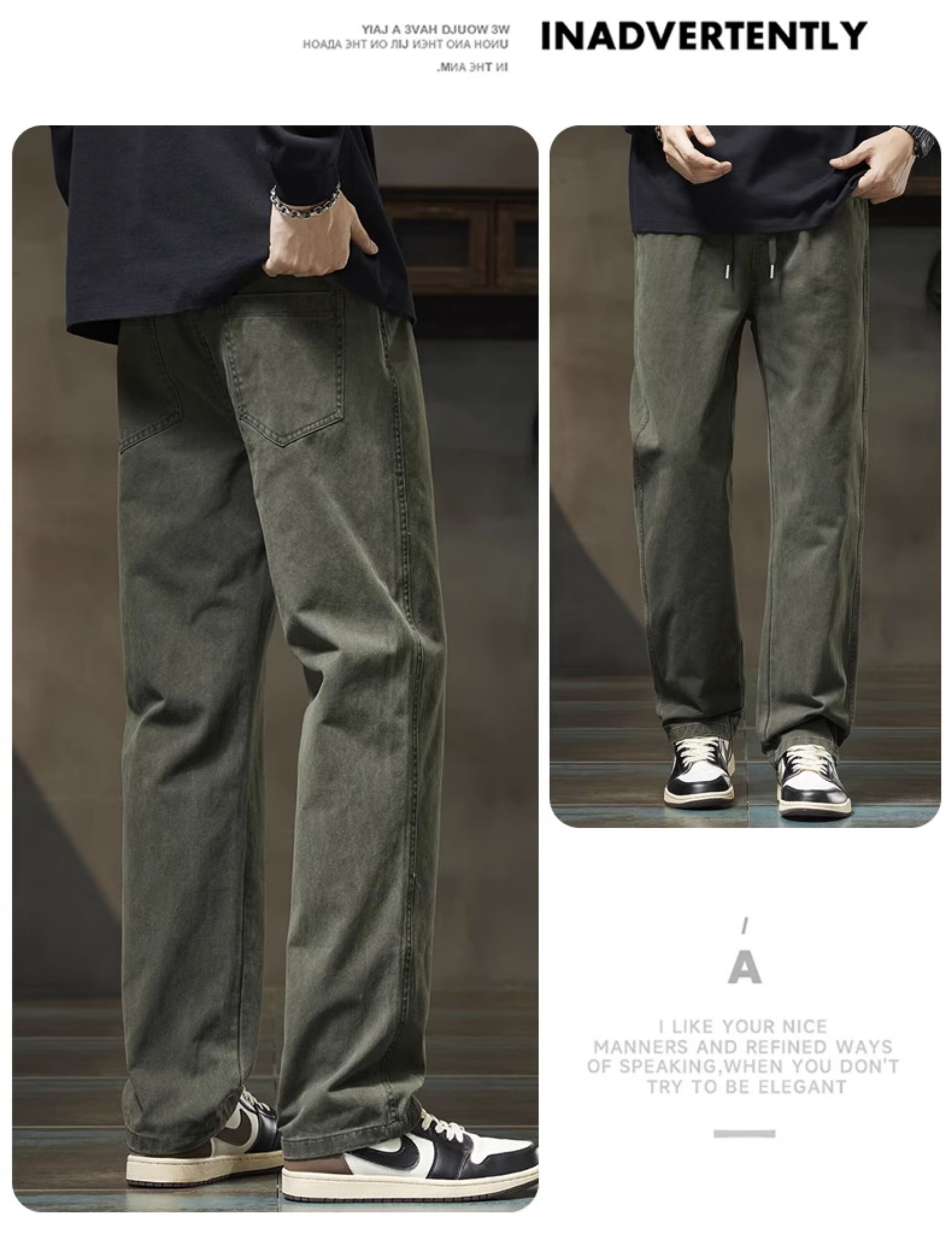 Baleno S&K casual pants for men 2025 new autumn trendy brand loose straight trousers for men pure cotton sports pants for men military green XL 125-145Jin Jin is equal to 0.5 kg