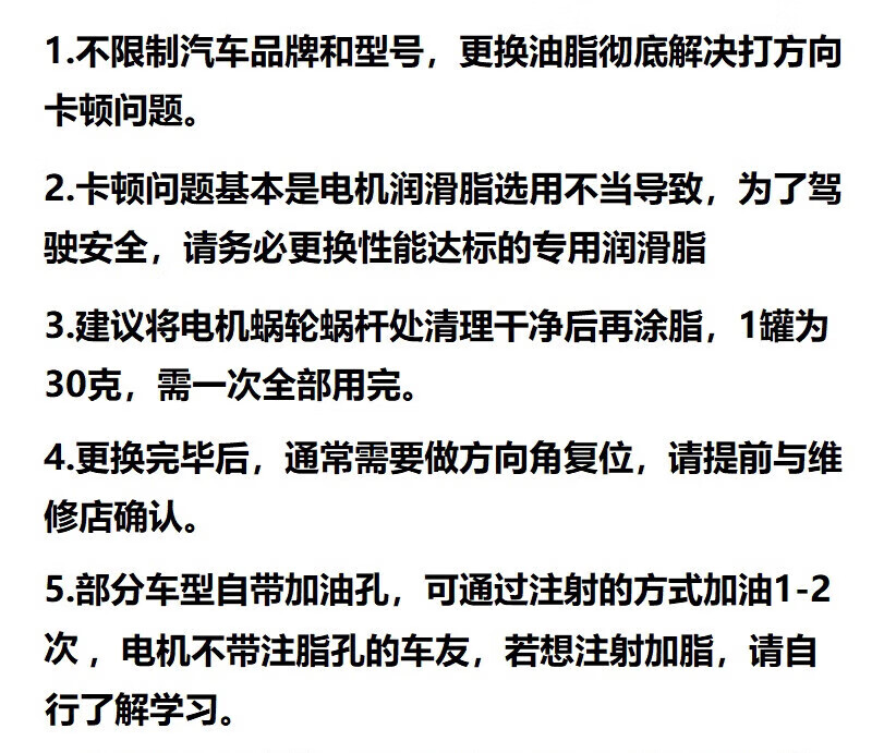 Electronic direction machine grease, electric power steering column motor worm gear, special solution for direction stuck, direction stuck, EPS motor grease 30g