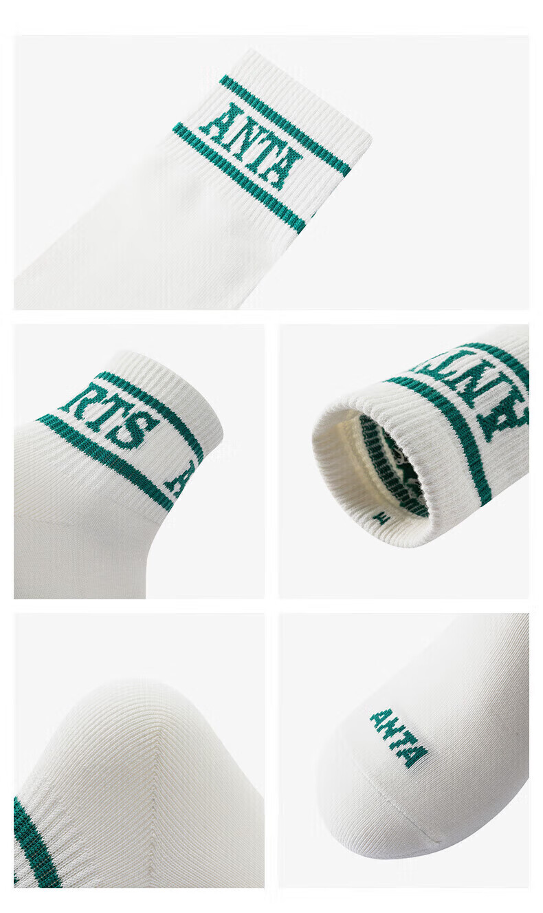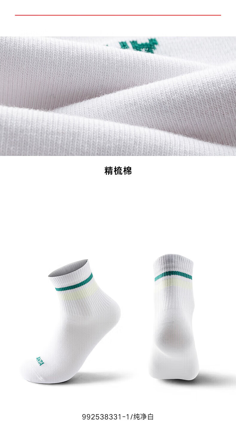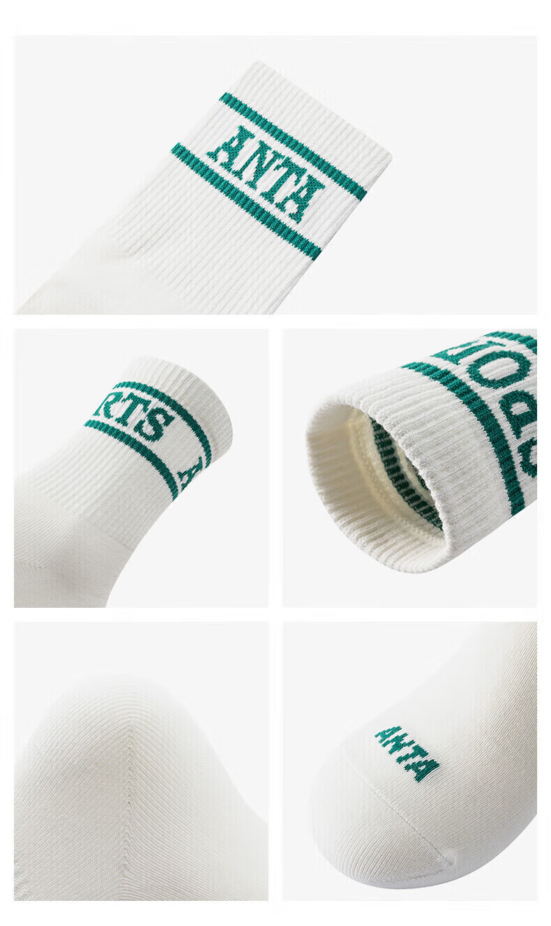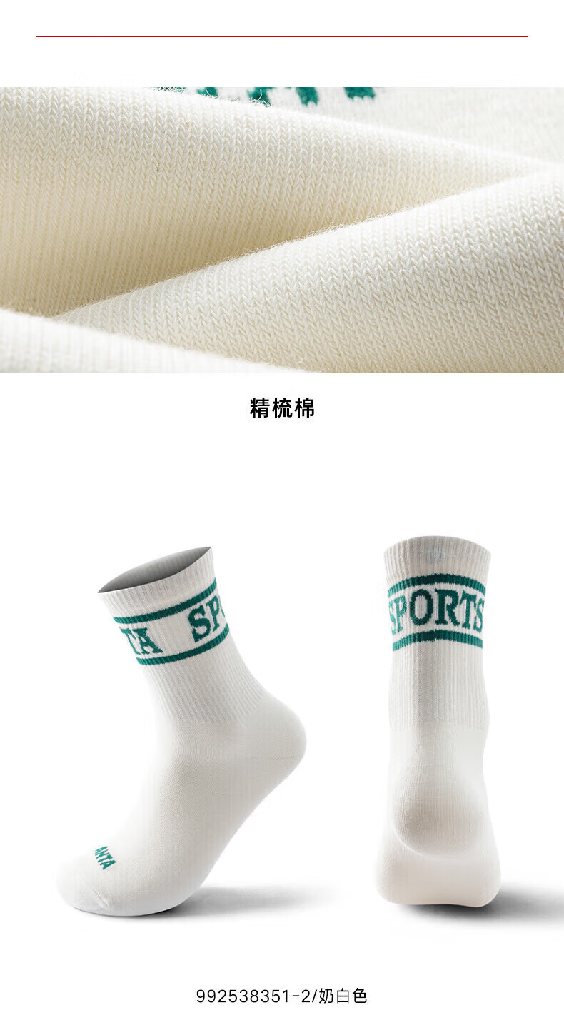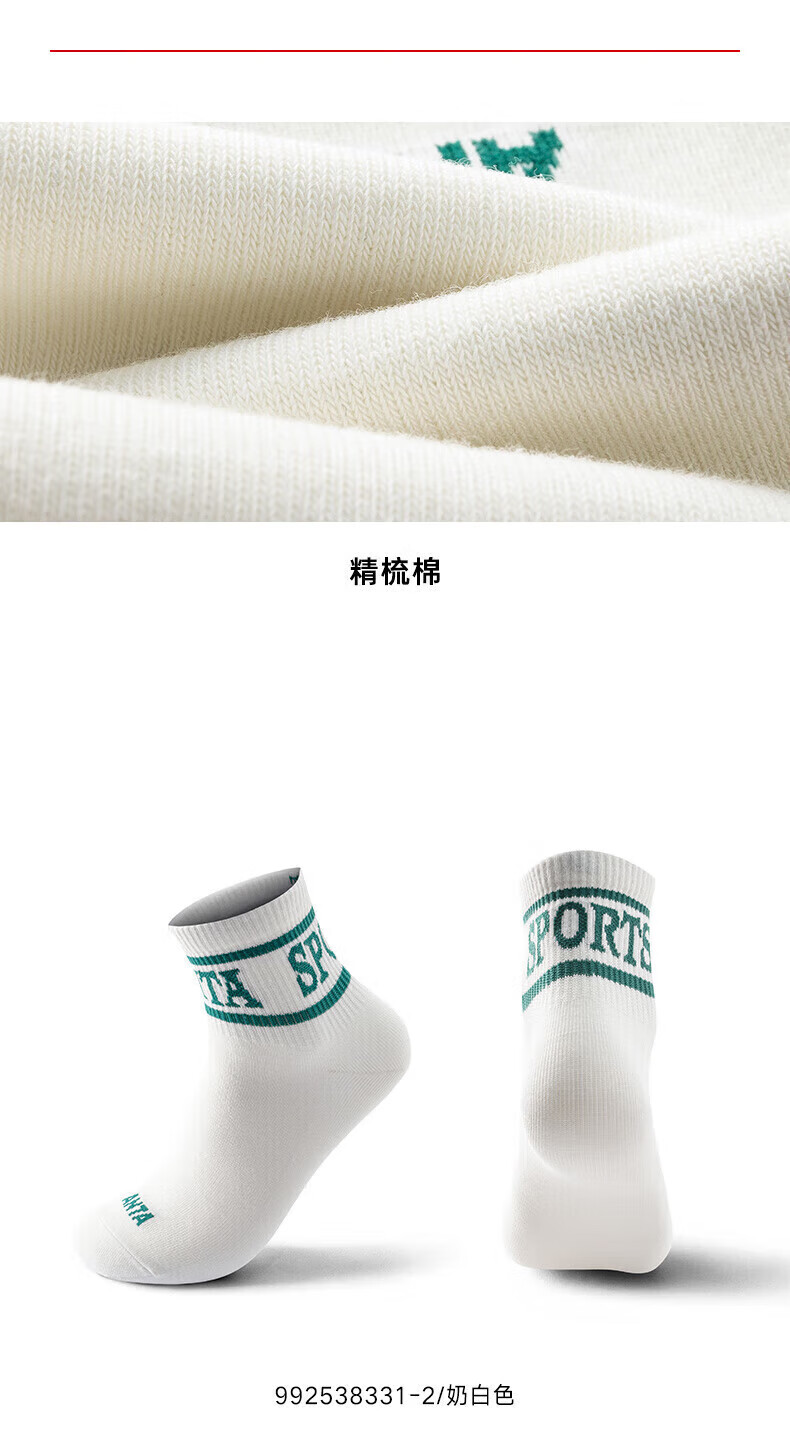 ANTA sports socks, casual combed cotton socks, sweat-absorbent, deodorant, breathable, retro trendy fitness running mid-length socks, mid-length milky white 8331-2 M