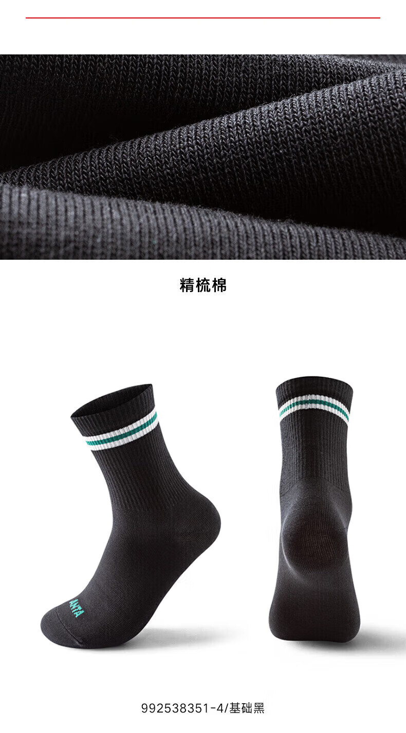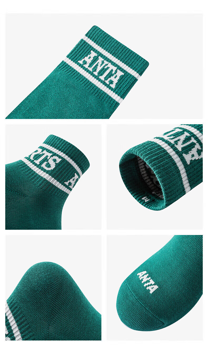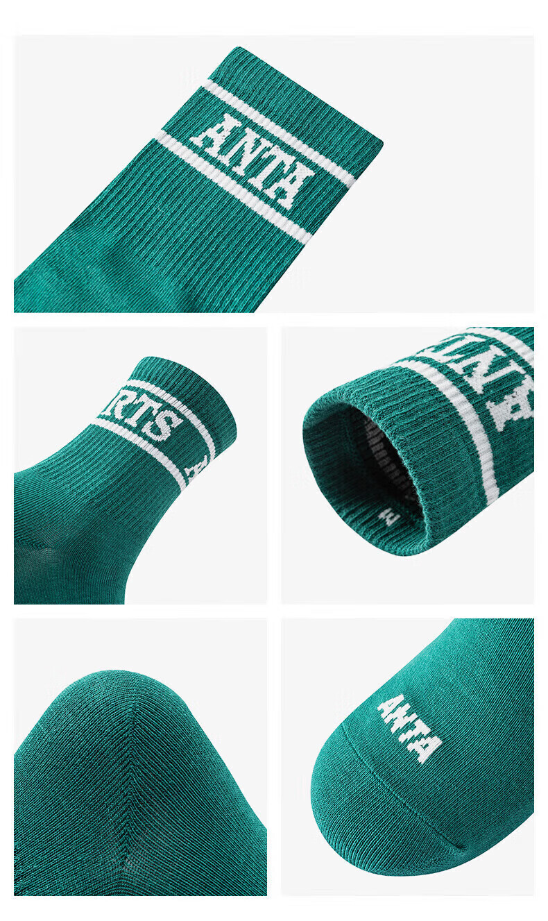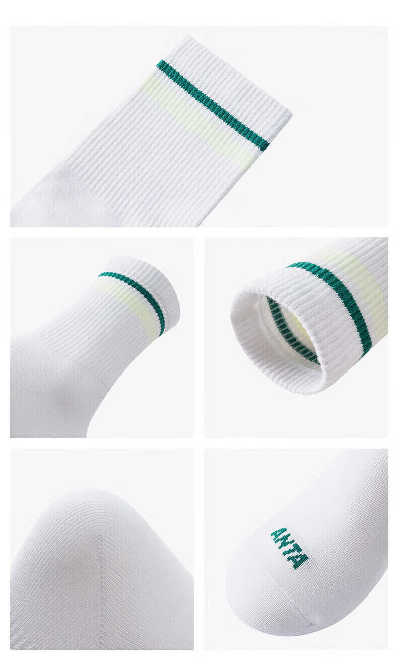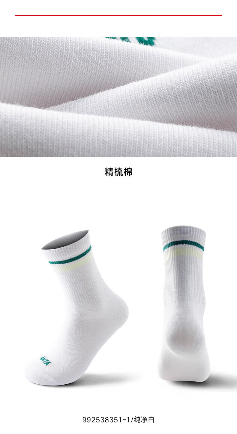 ANTA sports socks, casual combed cotton socks, sweat-absorbent, deodorant, breathable, retro trendy fitness running mid-length socks, mid-length milky white 8331-2 M