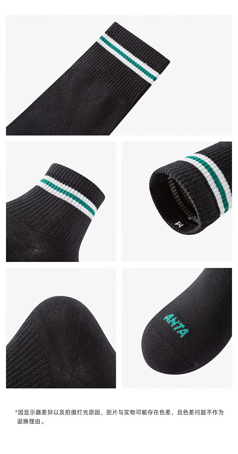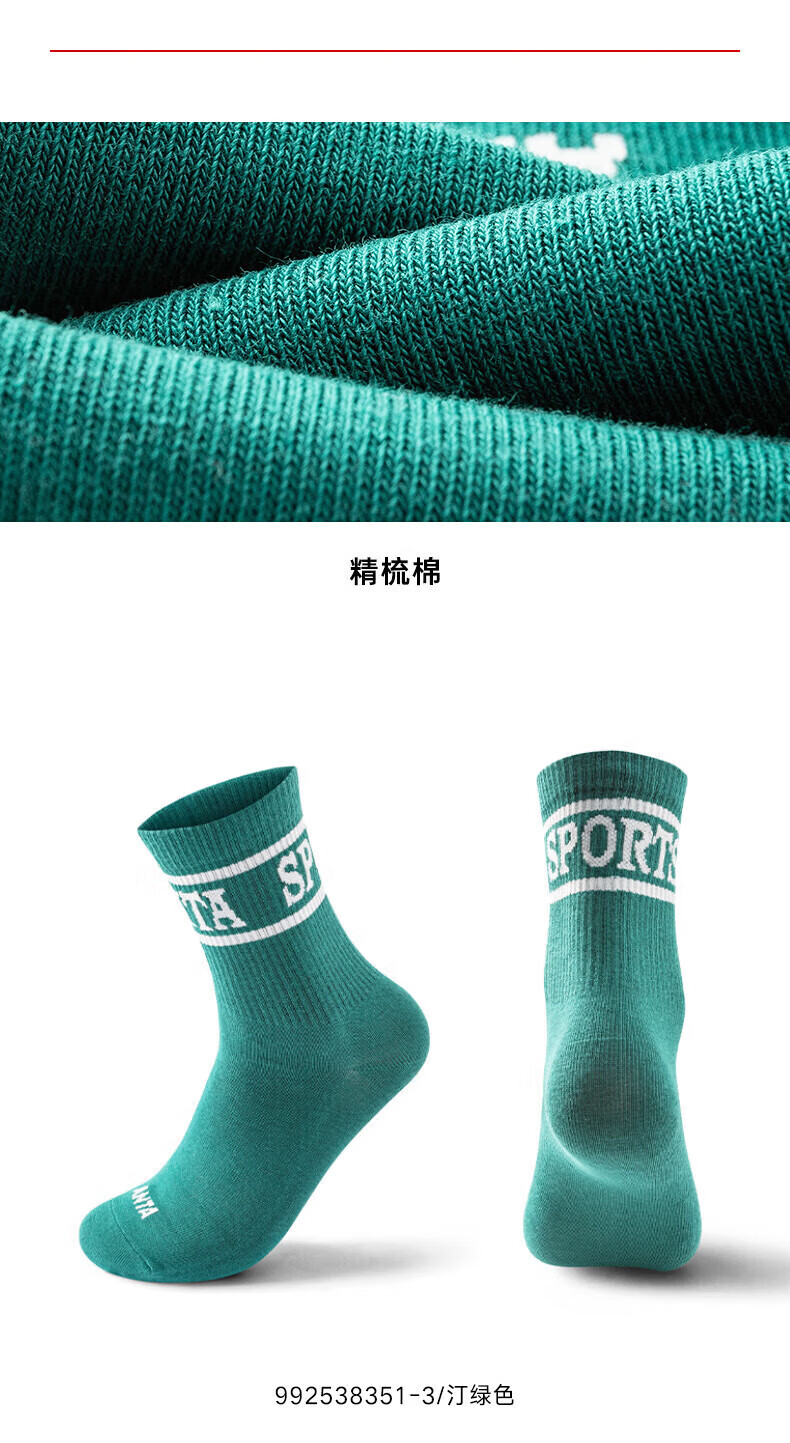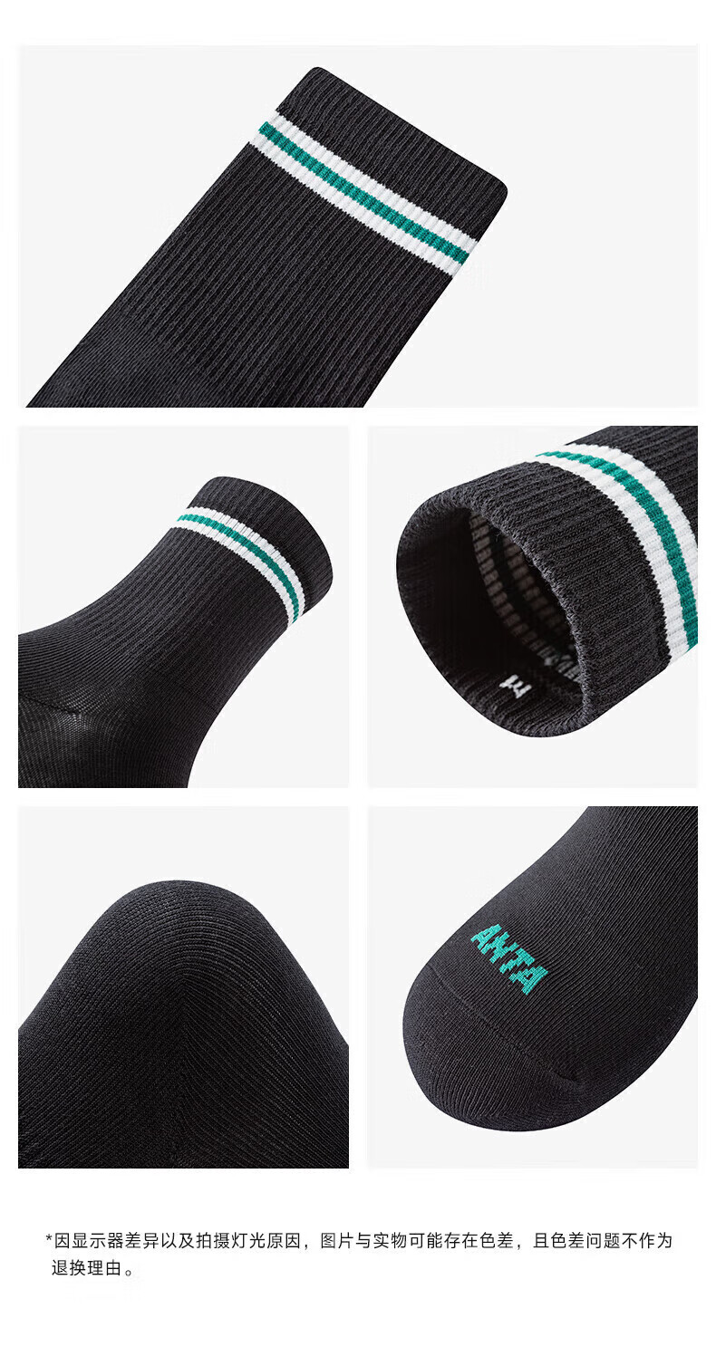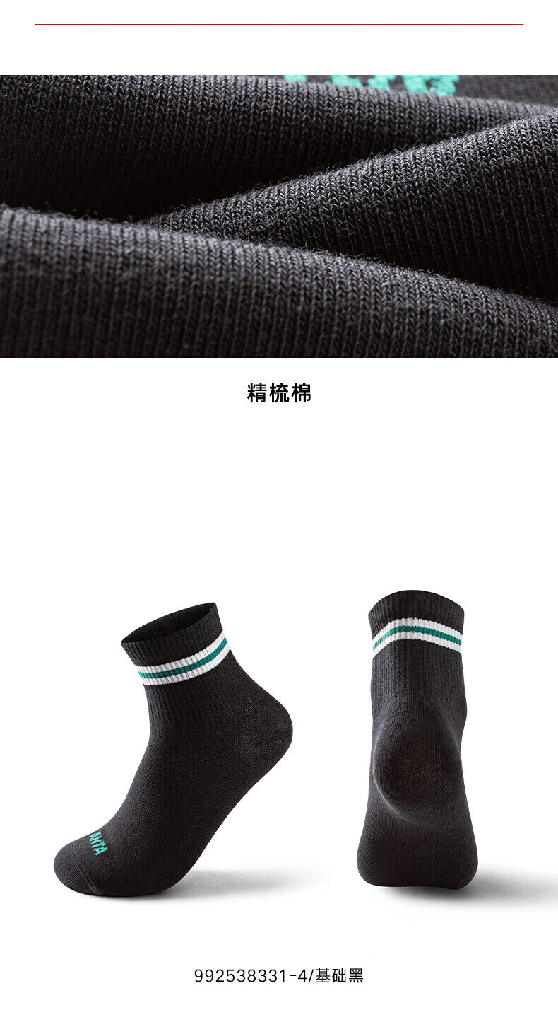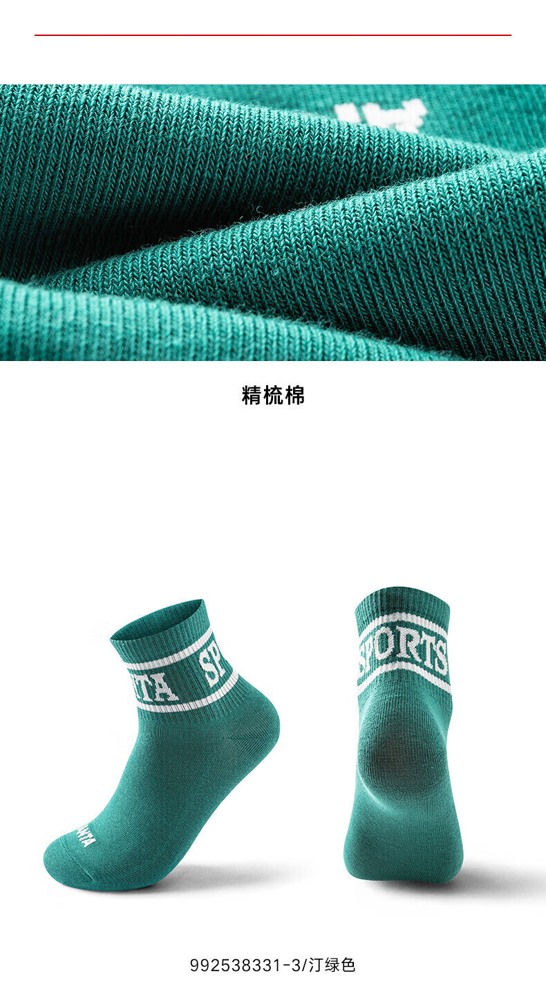 ANTA sports socks, casual combed cotton socks, sweat-absorbent, deodorant, breathable, retro trendy fitness running mid-length socks, mid-length milky white 8331-2 M