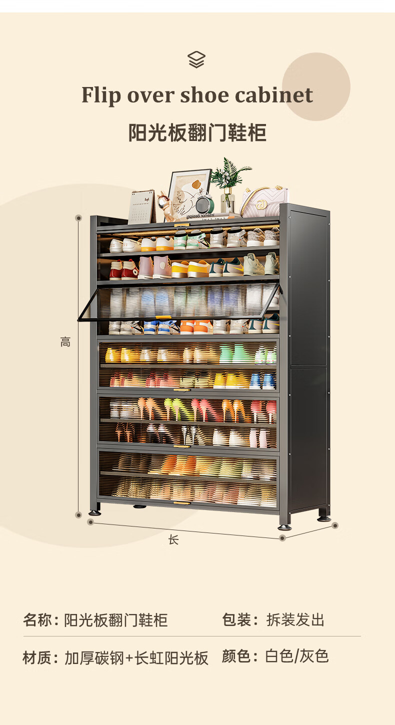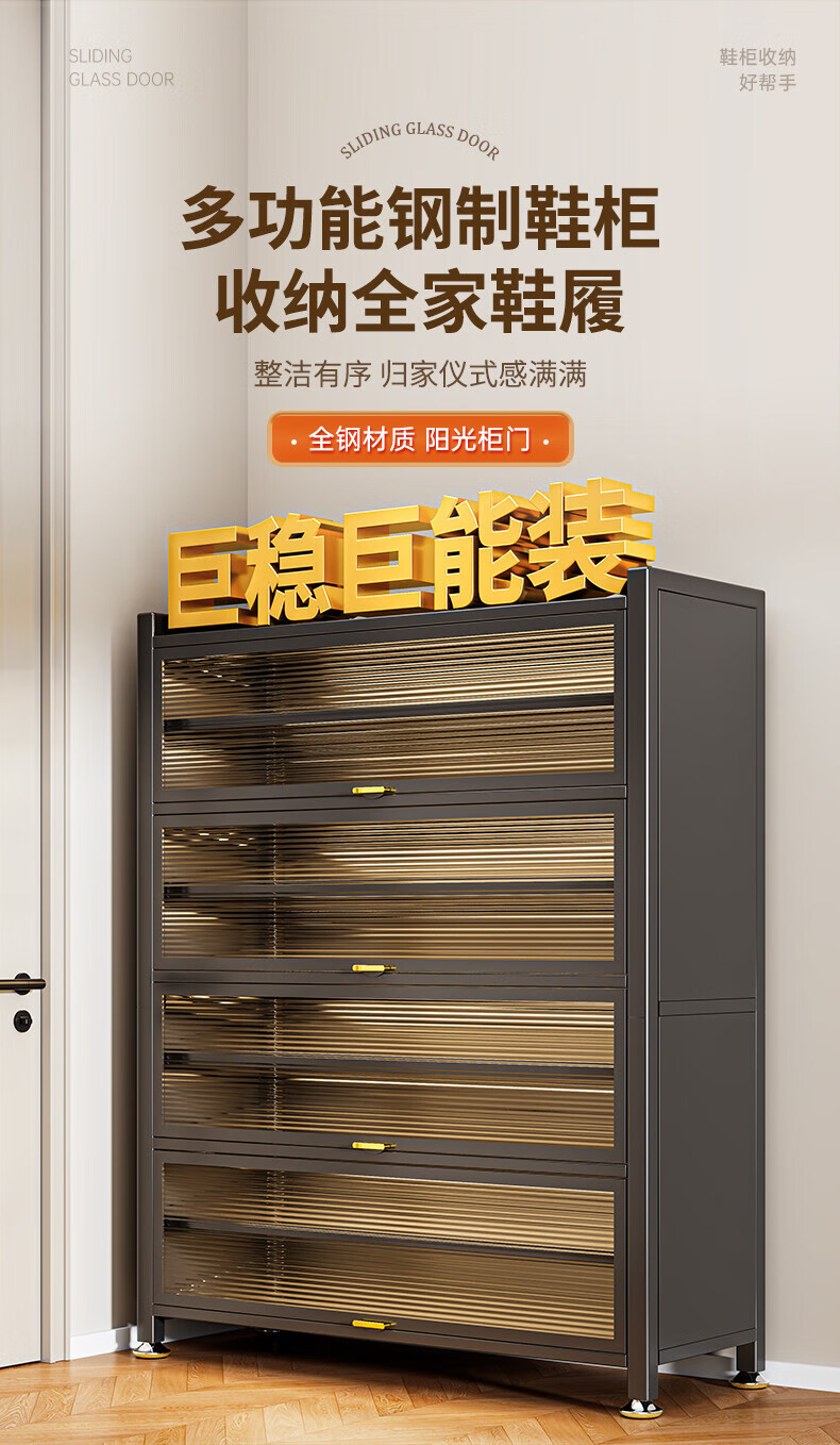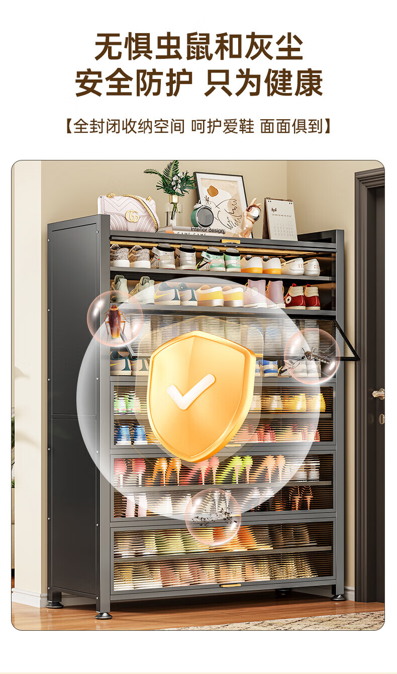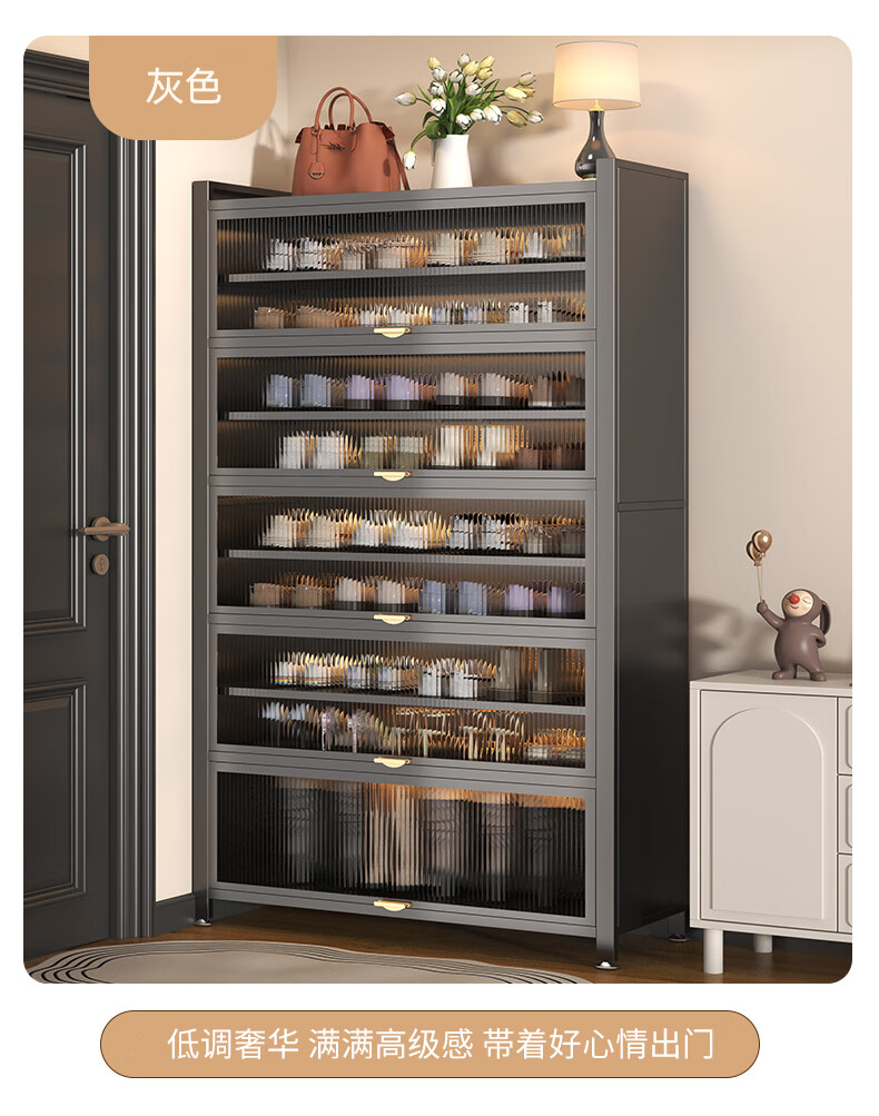 Yaoyaoji household steel shoe cabinet entry entrance large capacity storage locker dust-proof and moisture-proof floor-standing multi-layer metal shoe rack gray/five layers 60*35*80cm self-installation