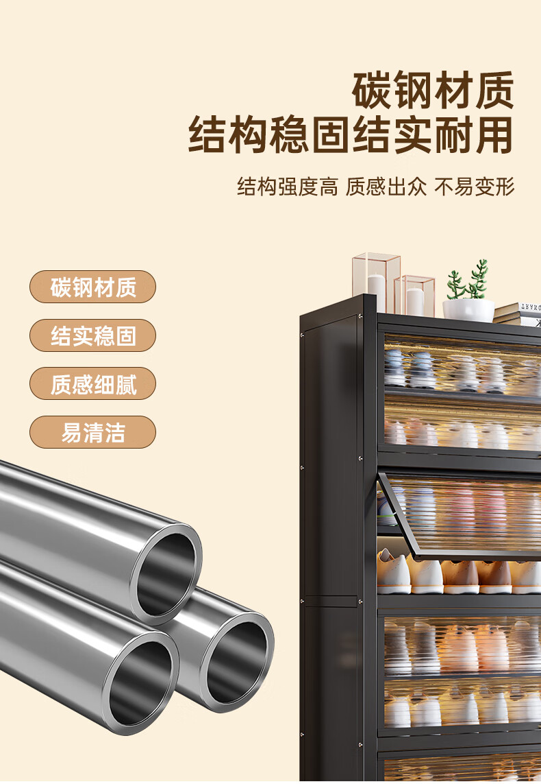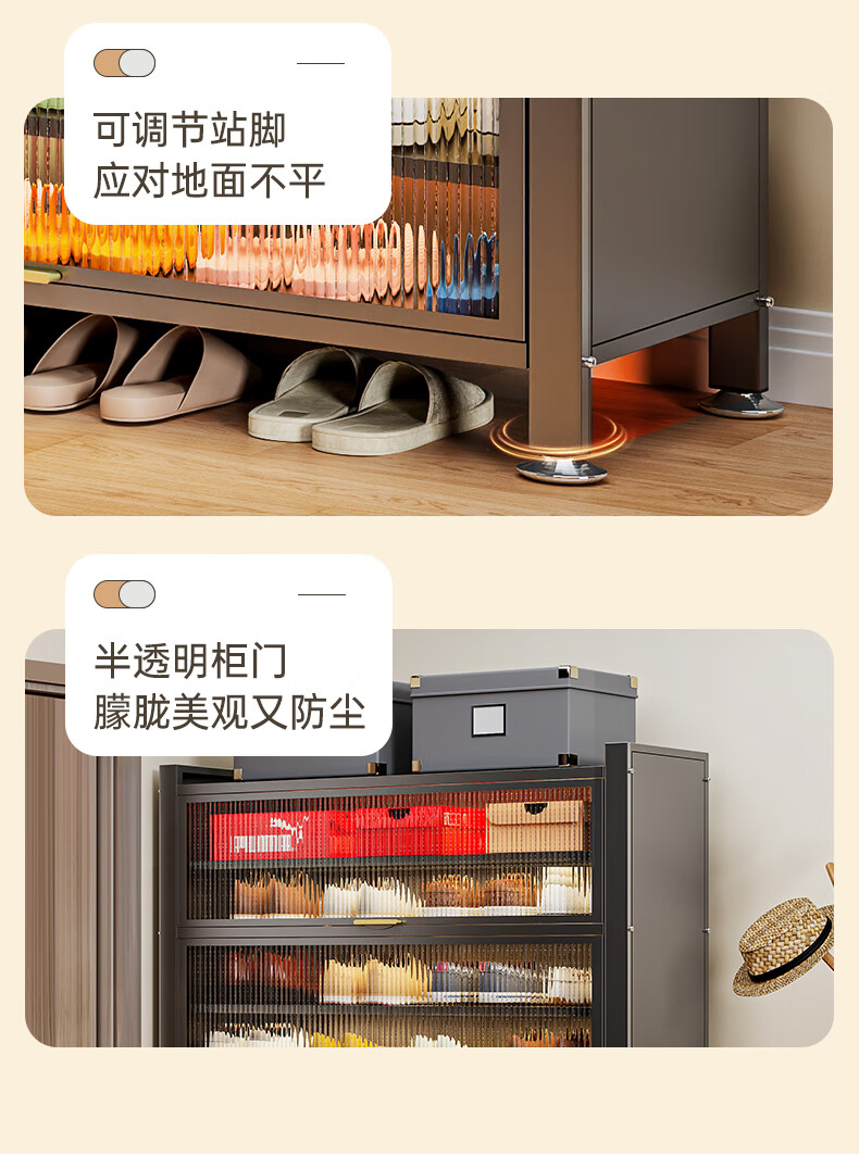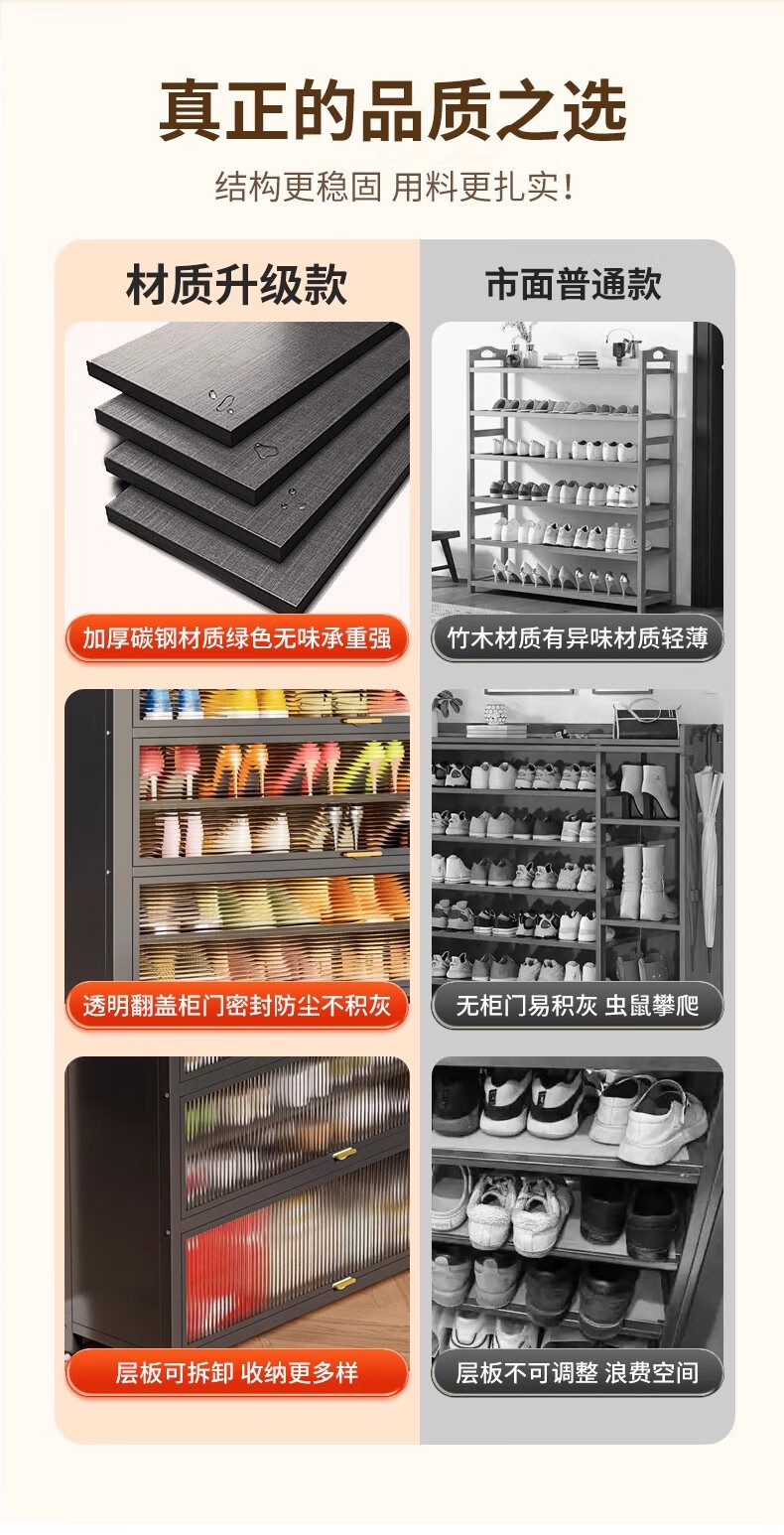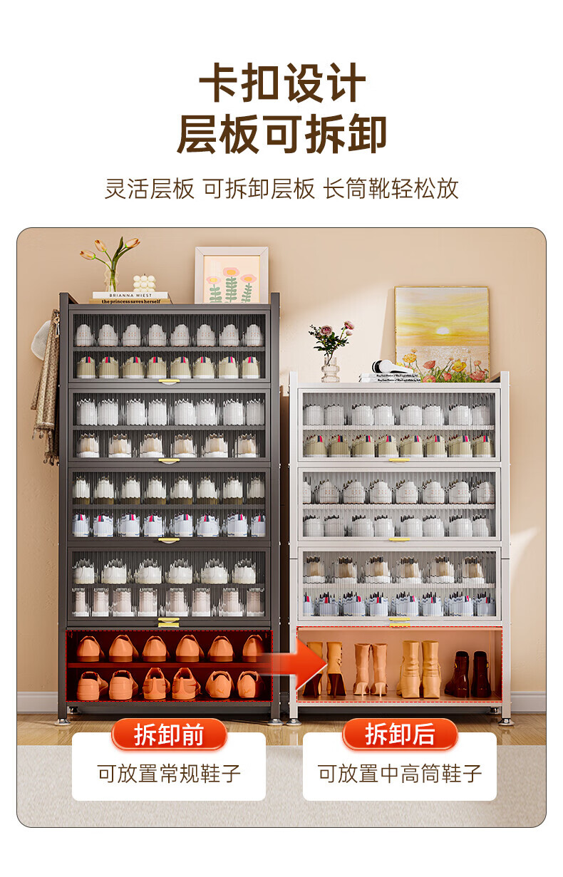 Yaoyaoji household steel shoe cabinet entry entrance large capacity storage locker dust-proof and moisture-proof floor-standing multi-layer metal shoe rack gray/five layers 60*35*80cm self-installation