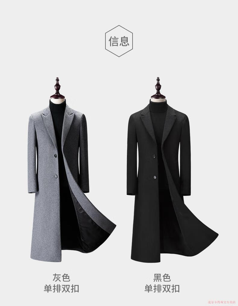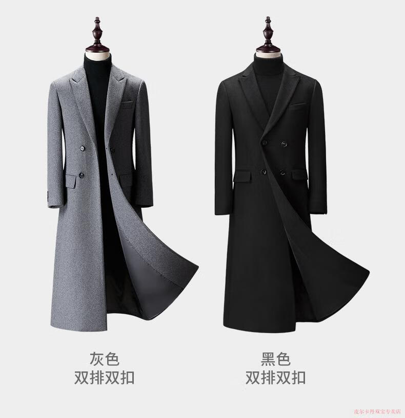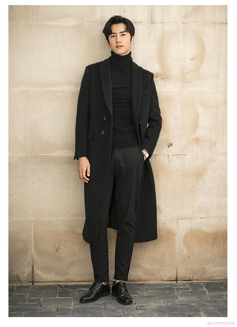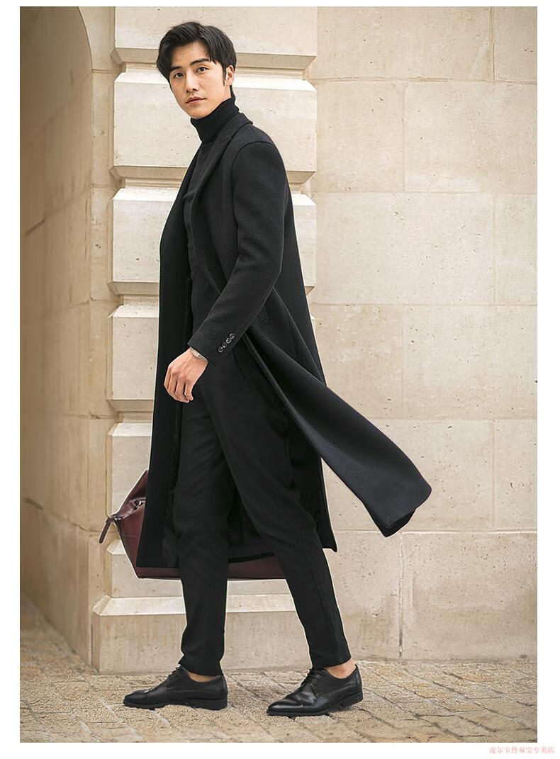 Пьер Карден (Pierre Cardin) трикотажное длинное тонкое шерстяное пальто мужское удлиненное молодежное красивое ветровка черное повседневное плотное пальто расширенное черное диагональный карман M