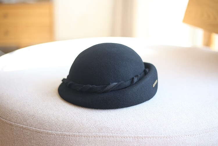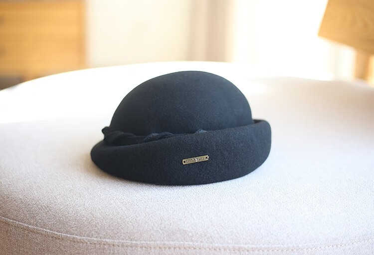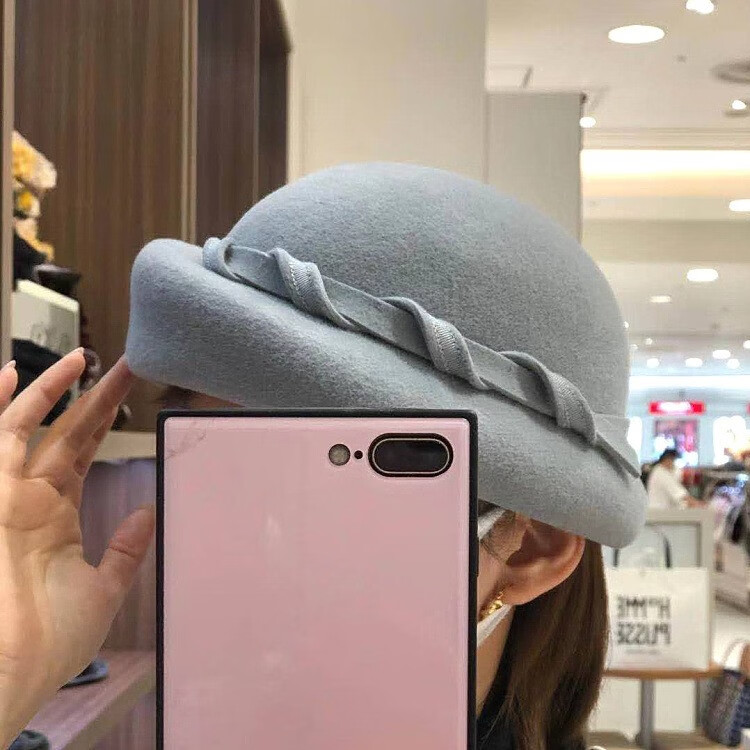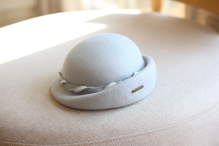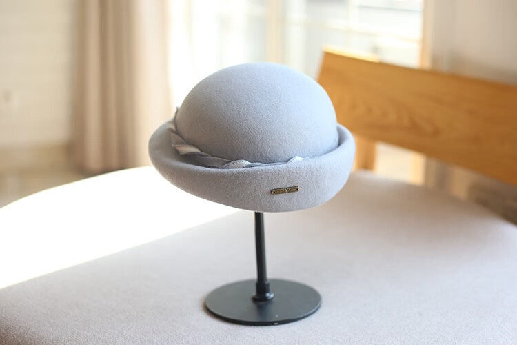 Hanqing mid-summer, autumn and winter retro casual woolen beret painter hat fashion felt hat versatile British short-brimmed hat blue gray rope small basin beret 54-58cm adjustable
